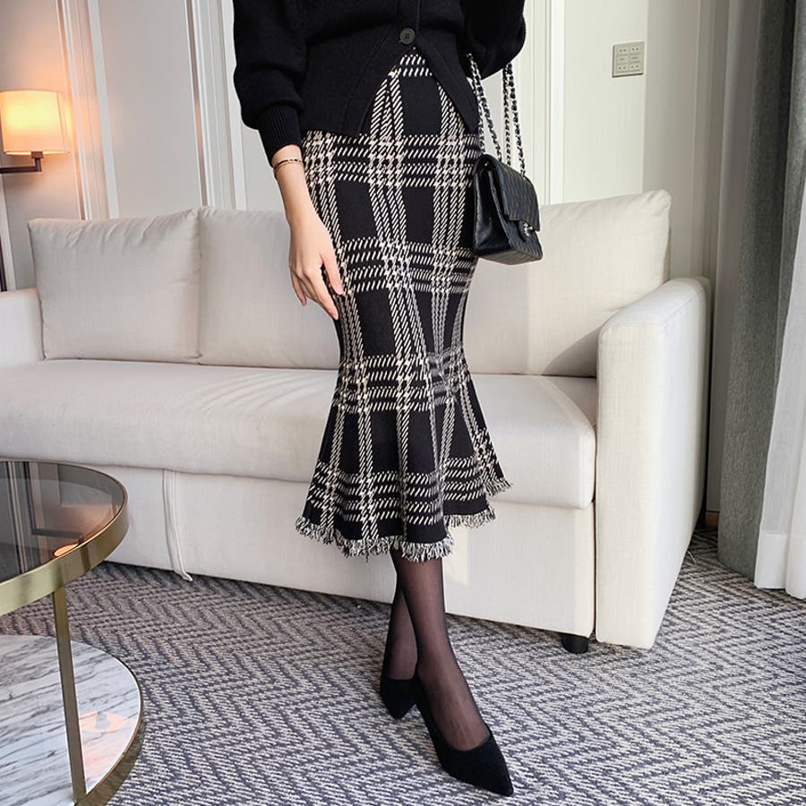 女性らしさを引き立てる、チェックマーメイドスカート チェックスカート