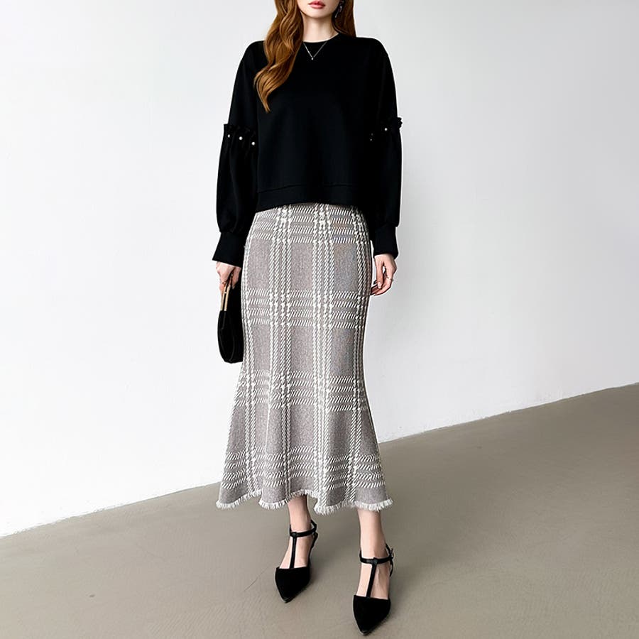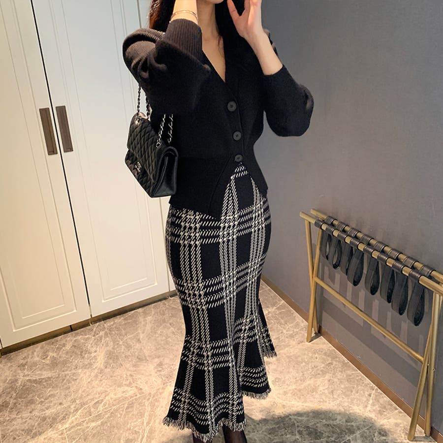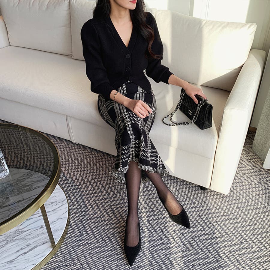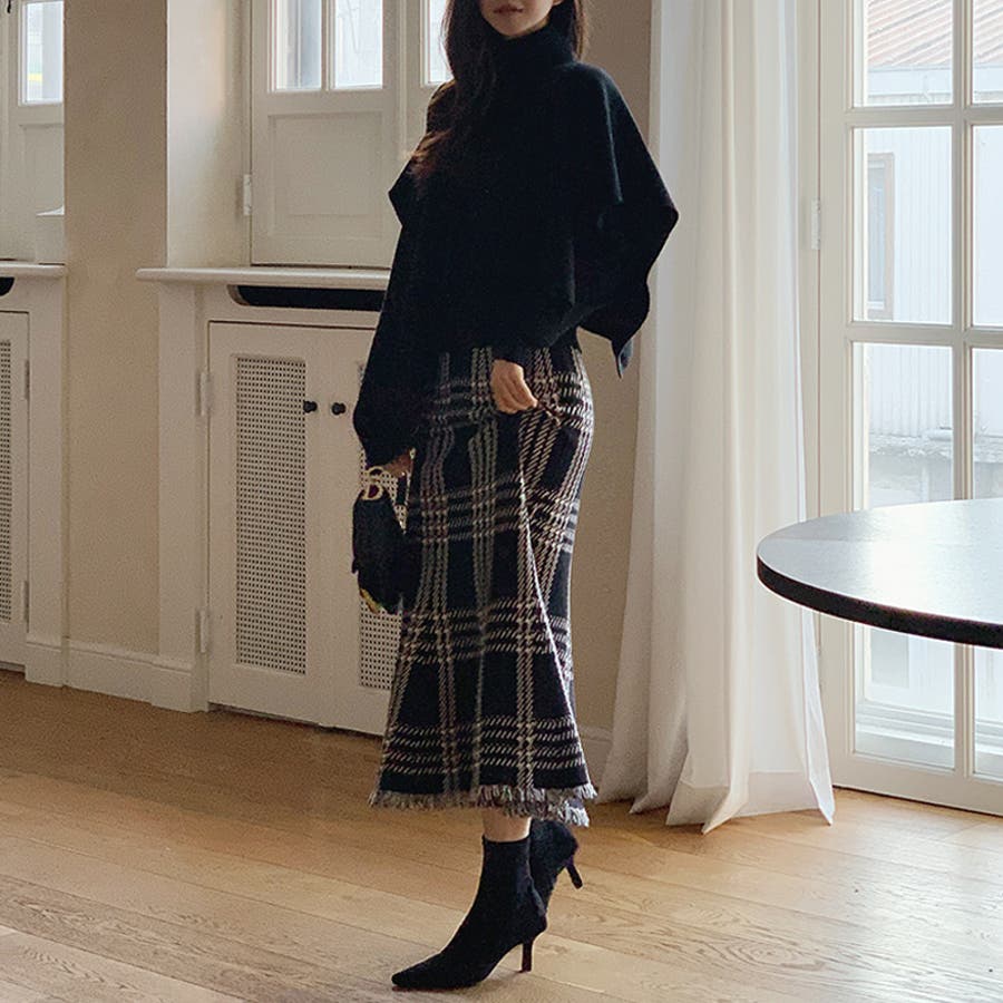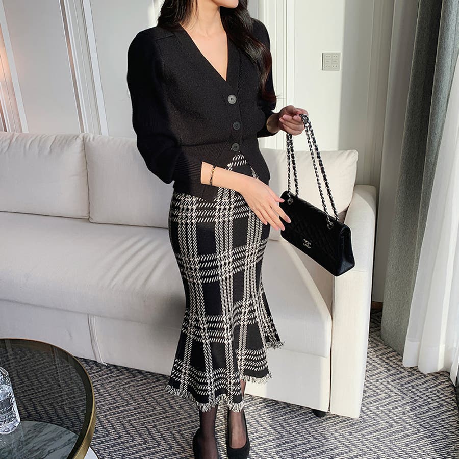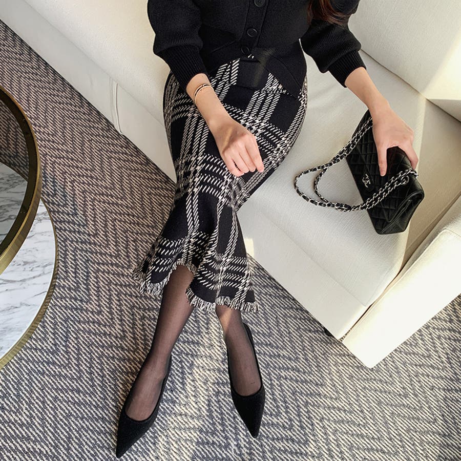 クラシカルなチェック柄が目を惹く 大人上品なマーメイドスカート。 程よく広がるマーメイドラインに 裾にはフリンジデザインを施し、 女性らしいニュアンスをプラス。 落ち着いた配色のチェック柄で 派手すぎず洗練された印象で 通勤やお出かけなど様々な シーンで活躍してくれます。
