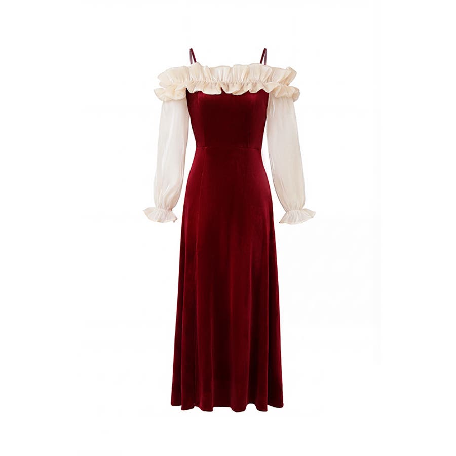 しなやかに艶めく、オフショルベロアドレス パーティードレス ベロアドレス