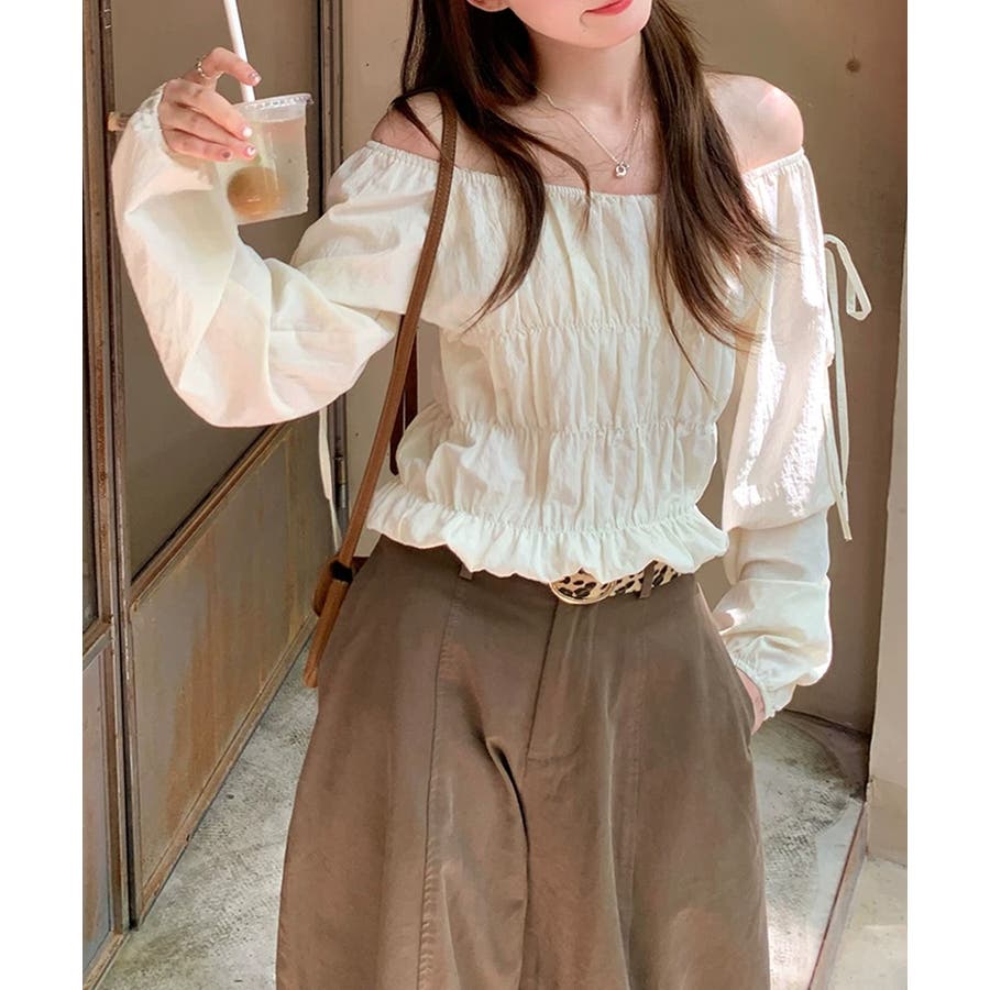 ブラウス 2way オフショルダートップス パフスリーブ オフショルダー トップス レディース おしゃれ 長袖 リボン オフショル ショート丈 パフスリーブブラウス 袖リボン バルーン袖 オフショルトップス クロップド丈 クロップド 丈 ショート 袖 袖リボンブラウス リボン付きブラウス バルーンスリーブ ギャザー シャーリング 肩出し 肩見せ 肩見せトップス 鎖骨がきれいに見える プルオーバー シボ ギャザーブラウス シャツブラウス ラウンドネック tops 二の腕カバー 二の腕 ぽわん ぽわん袖 ポワン袖 体型カバー 体型 カバー 隠し 着痩せ 着やせ 細見え 華奢見え 服装 韓国服 韓国風 フェミニン ガーリー カジュアル セクシー きれいめ きれい め 綺麗め 大人 オトナ かわいい 可愛い 大人可愛い 大人かわいい オシャレ 女性 母 母親 女 ママ プチプラ 高見え 高級感 トレンド ヒット 商品 おすすめ 服 ファッション コーデ コーディネート フリー サイズ フリーサイズ ホワイト 白 ベージュ カラー 春トップス 秋トップス 春トップスレディース 秋トップスレディース レディース春夏 レディース春物 レディース夏物 レディース春 レディース夏 夏トップス レディース韓国 長袖トップスレディース 長袖トップスおしゃれ トップスレディース トップスレディース長袖 レディーストップス 長袖レディース 長袖ブラウスレディース シャツブラウスレディース 新作 春夏 春 夏 秋 春服 夏服 秋服 春物 夏物 秋物 春用 夏用 韓国 韓国ファッション 10代 20代 30代 40代 50代 60代 70代 cocomomo ココモモ