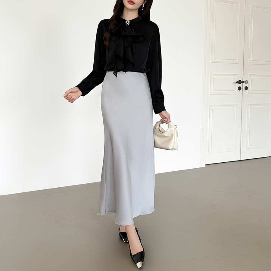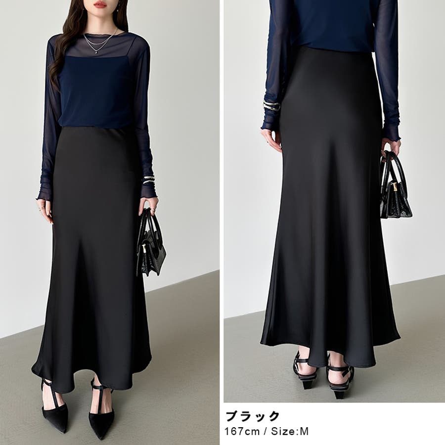 艶と落ち感でオンオフ映える。サテンマーメイドスカート サテンスカート マーメイド…