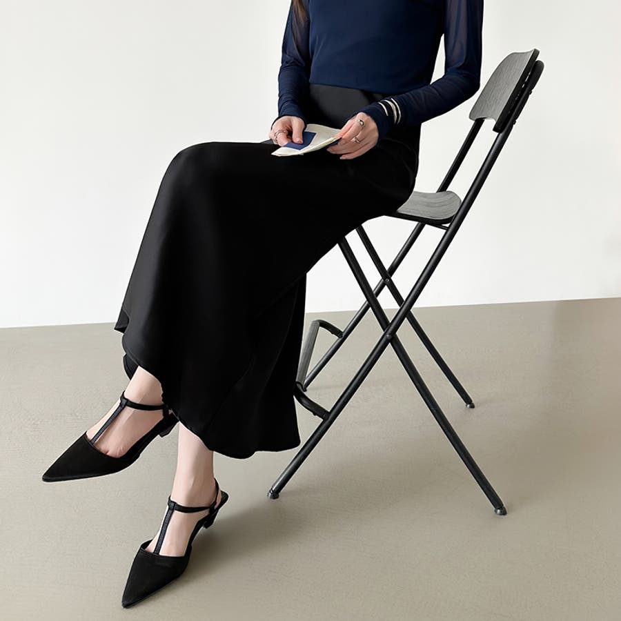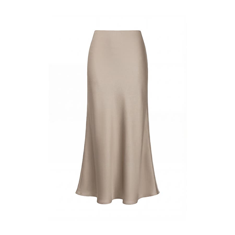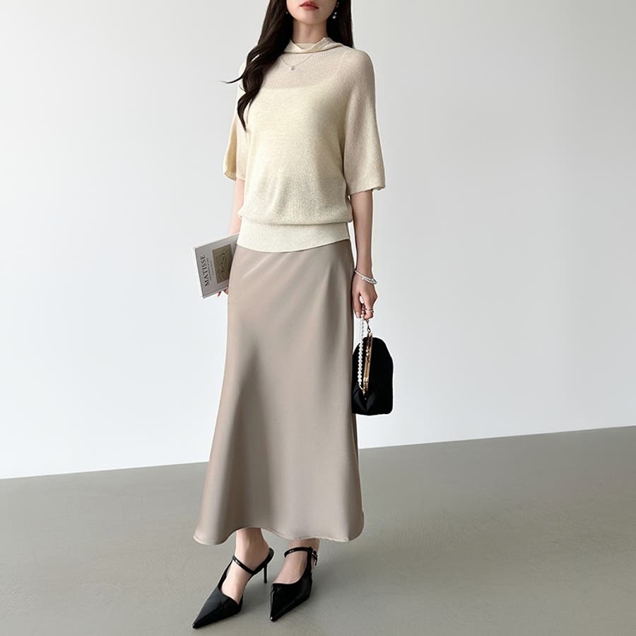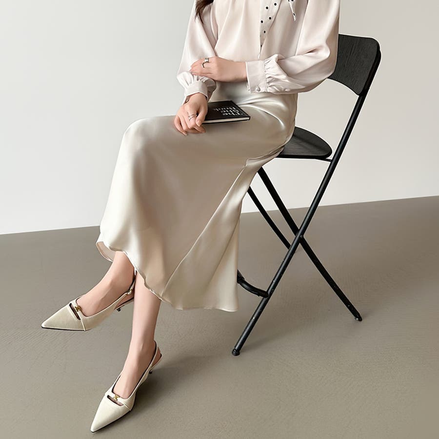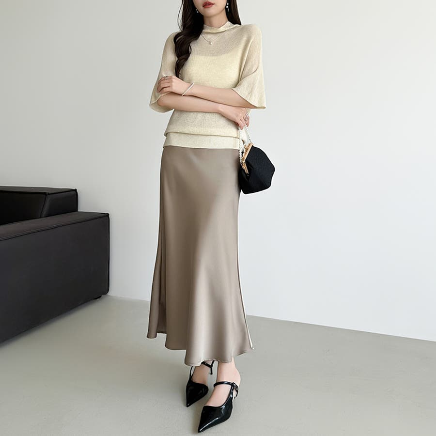 落ち感のある、なめらかな サテン生地が上品さを際立てる サテンマーメイドスカート。 腰まわりはすっきり、裾にかけて 自然なフレアを描き軽やかで 華やかな印象を演出します。 きちんと見えしつつウエスト裏側は ゴム仕様でさらにファスナー付きで 着脱もスムーズ。 きれいめなお出かけやオケージョン ブラウス合わせでオフィスカジュアル にも活躍するスカートです。