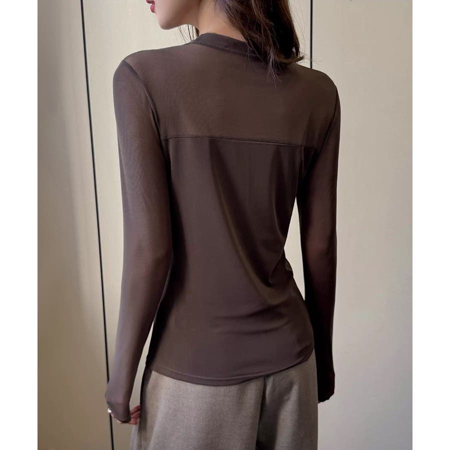 透けすぎない大人シアー。胸元切替シアートップス シアー トップス