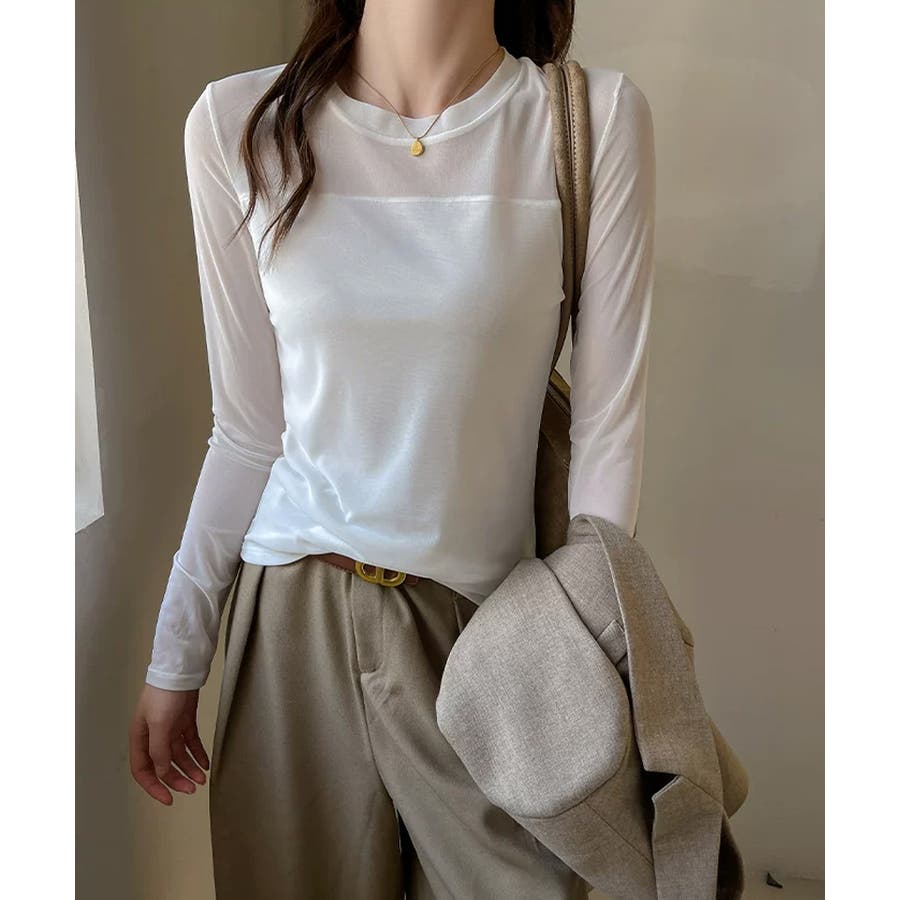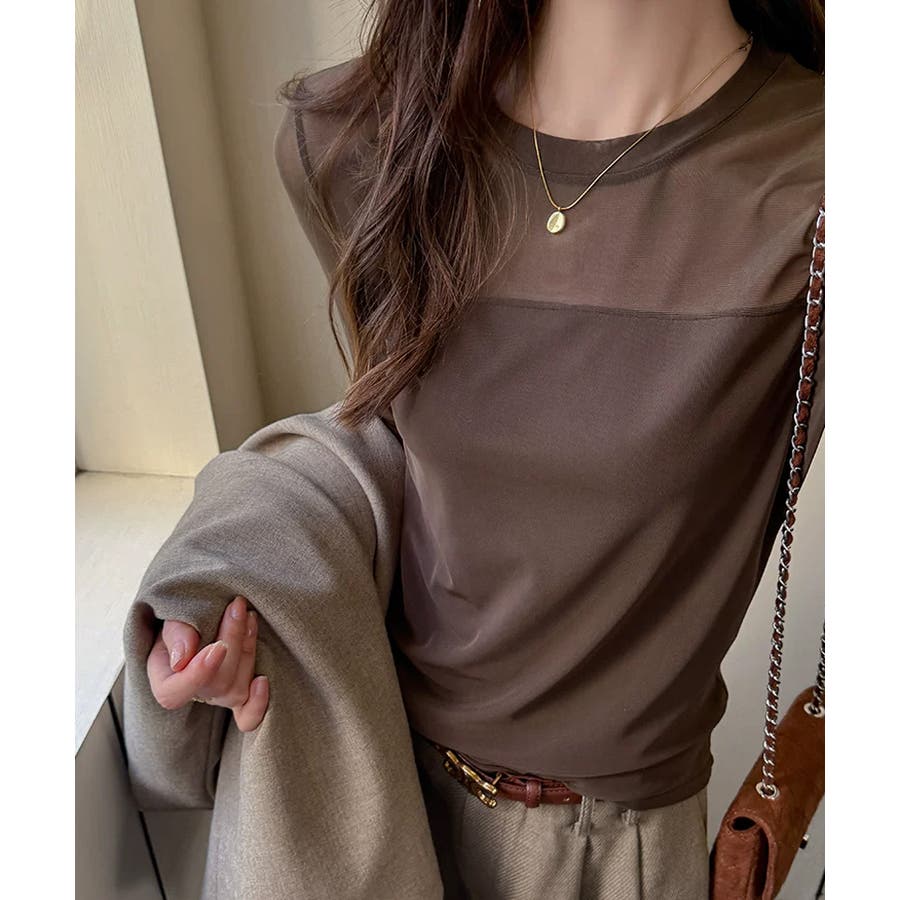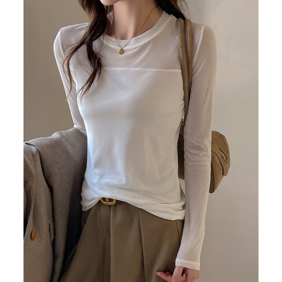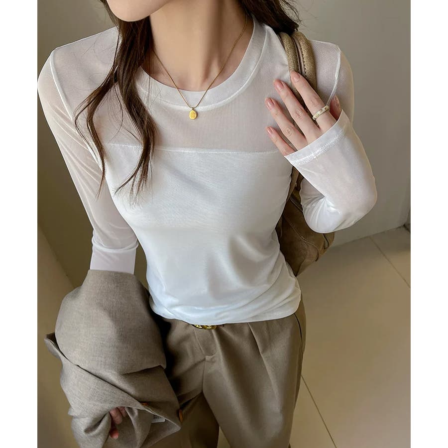 シアー トップス 長袖 切り替え カットソー レディース シアートップス インナー 透け感 クルーネック レイヤード 重ね着 きれいめ シースルー シアークルーネック ロンt シアーロンt シアーインナー シアーカットソー シースルートップス レイヤードインナー レイヤードトップス シアーロングTシャツ シアーロングT シアーロングスリーブTシャツ 透け 薄手 薄い 綺麗め tシャツ Tシャツ おしゃれ 長袖tシャツ 涼しい プルオーバー シンプル キレイめトップス キレイめカジュアル きれいめカットソー キレイめカットソー 長袖t 長袖T 長袖Tシャツ 長袖カットソー 丸首 無地 異素材 切替 tops 着回し 着まわし 伸縮性 伸びる ストレッチ 洗える 手洗い 手洗い可能 洗濯できる 洗濯 洗濯可能 洗濯可 オフィス オフィスカジュアル オフィスカジュアル春夏 オフィカジ オケージョン セレモニー フォーマル 式典 入園式 卒園式 入学式 卒業式 謝恩会 同窓会 パーティー パーティ 食事会 女子会 デート おでかけ お出かけ 旅行 カジュアル フェミニン セクシー エレガント 上品 オトナ かわいい 可愛い 大人 大人可愛い 大人っぽい きれい め キレイめ 綺麗め オシャレ 女性 母 ママ ママコーデ プチプラ 高見え トレンド ヒット 商品 おすすめ 服 服装 洋服 ファッション コーデ コーディネート フリーサイズ フリー サイズ ホワイト 白 ダークブラウン ブラウン 茶色 ブラック 黒 カラー レディース春夏 レディース春物 レディース夏物 レディース秋物 レディース春 春トップス レディース夏 夏トップス 秋トップス レディース秋 レディース韓国 きれいめカジュアルレディース Tシャツレディース シアートップスレディース レディース春カットソー 長袖カットソーレディース 新作 春秋 春夏 秋冬 春 夏 秋 冬 春服 夏服 秋服 冬服 春物 夏物 秋物 春用 夏用 秋用 韓国 韓国ファッション 10代 20代 30代 40代 50代 60代 70代 cocomomo ココモモ