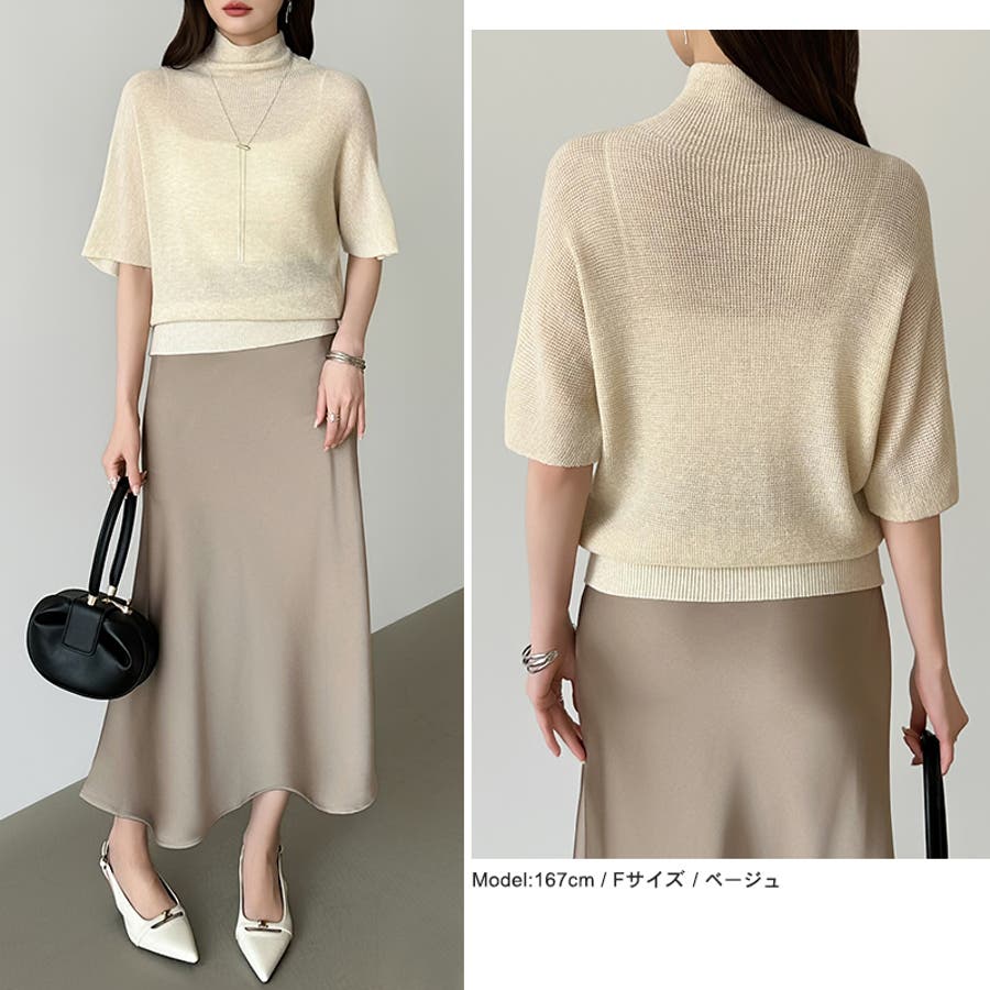 ハイネックニット サマーニット シアーニット 半袖 ニット きれいめ レディース 半袖ニット ハイネック シアー トップス きれいめニット サマー オフィス オフィスカジュアル 大人 おしゃれ プルオーバー キレイめトップス ウエスト リブ 無地 tops 着回し 着まわし 伸縮性 伸びる ストレッチ 薄い 薄手 透け感 透け 感 透け感半袖 袖 袖長め 長い 長め 細見え 華奢見え 着痩せ 洗える 手洗い 手洗い可能 洗濯できる 洗濯 洗濯可能 洗濯可 オフィスカジュアル春夏 オフィカジ 会社 通勤 通学 おでかけ お出かけ 旅行 大人カジュアル カジュアル ナチュラル 上品 エレガント 大人 大人可愛い 大人かわいい オトナ かわいい 可愛い きれい め キレイめ 綺麗め オシャレ 女性 母 ママ ママコーデ プチプラ 高見え トレンド ヒット 商品 おすすめ 服 服装 洋服 ファッション コーデ コーディネート フリーサイズ フリー サイズ ベージュ ブラウン ダークグレー グレー 灰色 ブラック 黒カラー レディース春 レディース夏 レディース秋 レディース春夏 レディース春物 レディース夏物 レディース春 春トップス 夏トップス レディース春 レディース夏 春トップスレディース 夏トップスレディース 春ニット 夏ニット ニットレディース トップスレディース きれいめカジュアル きれいめカジュアルレディース ハイネックニットレディース 新作 春夏 春 夏 秋 春服 夏服 春物 夏物 春用 夏用 韓国 韓国ファッション 10代 20代 30代 40代 50代 60代 70代 cocomomo ココモモ