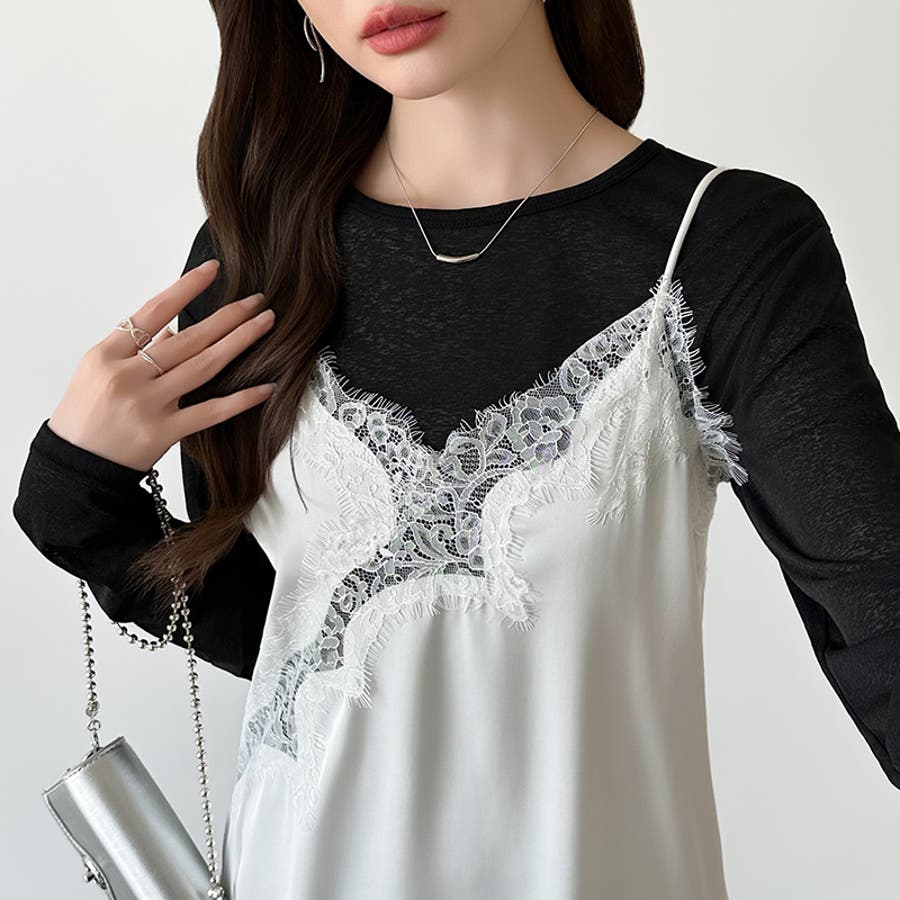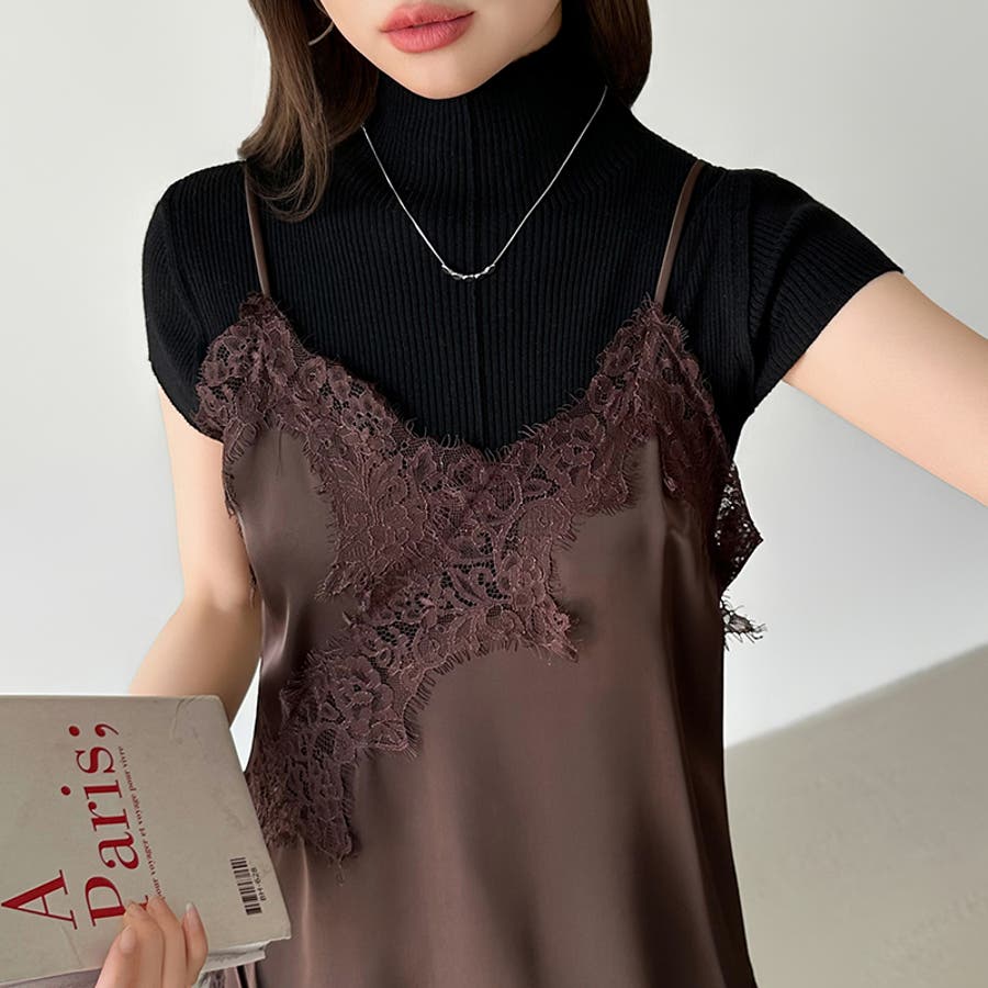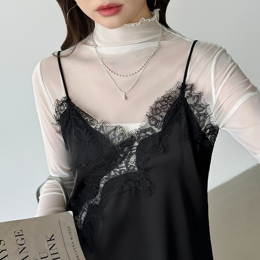 レイヤード映えサテンレースキャミソール レース キャミソール