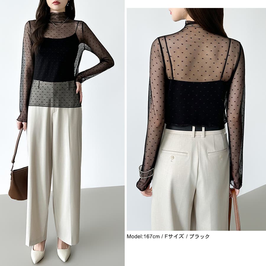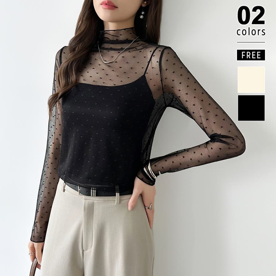 シアー トップス ハート柄 ハイネック 長袖 シアートップス レディース インナー 透け感 ハート 柄 ドット トップスハイネック レイヤード 重ね着 シースルー シースルートップス ハートドット ストレッチ きれいめ 上品 シアーハイネック カットソー シアーインナー シアーカットソー レイヤードインナー レイヤードトップス シアーハイネックトップス トップスハイネック レースインナーハイネック レースインナー長袖 シアーレースインナー インナートップス レースブラウス レースブラウスフォーマル タートルネック シアータートルネック メッシュ チュール 総レース 肌見せ 露出控えめ 露出少なめ シアー素材 シワ隠し 首隠し 首 首元 カバー 隠し 透け 薄手 薄い 綺麗め おしゃれ 長袖tシャツ 涼しい プルオーバー シンプル キレイめトップス キレイめカジュアル きれいめカットソー キレイめカットソー 長袖カットソー ロンt シアーロンt シアーロングTシャツ tops 着回し 着まわし 伸縮性 伸びる 洗える 手洗い 手洗い可能 洗濯できる 洗濯 洗濯可能 洗濯可 紫外線対策 日焼け対策 日焼け防止 UV uv対策 uvカット対策 冷房対策 水着の上 水着の上に着る さらさら オフィス オフィスカジュアル オフィスカジュアル春夏 オフィカジ オケージョン セレモニー フォーマル 式典 入園式 卒園式 入学式 卒業式 謝恩会 同窓会 パーティー パーティ 食事会 女子会 デート おでかけ お出かけ 旅行 カジュアル フェミニン ガーリー セクシー 華やか オトナ かわいい 可愛い 大人 大人可愛い 大人っぽい きれい め キレイめ 綺麗め オシャレ 女性 母 ママ ママコーデ プチプラ 高見え トレンド ヒット 商品 おすすめ 服 服装 洋服 ファッション コーデ コーディネート フリーサイズ フリー サイズ アイボリー ホワイト 白 ブラック 黒 カラー レディース春夏 レディース春物 レディース夏物 レディース秋物 レディース春 春トップス レディース夏 夏トップス 秋トップス レディース秋 レディース韓国 きれいめカジュアルレディース シアートップスレディース レディース春カットソー 長袖カットソーレディース 新作 春秋 春夏 秋冬 春 夏 秋 冬 春服 夏服 秋服 冬服 春物 夏物 秋物 春用 夏用 秋用 韓国 韓国ファッション 10代 20代 30代 40代 50代 60代 70代 cocomomo ココモモ