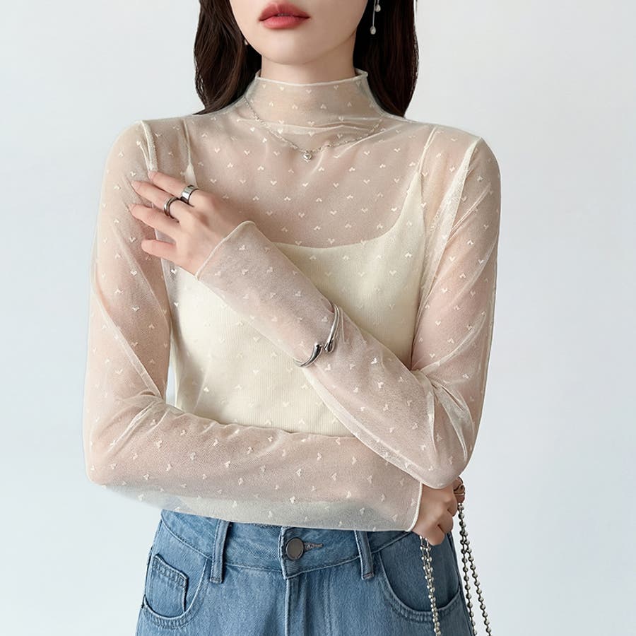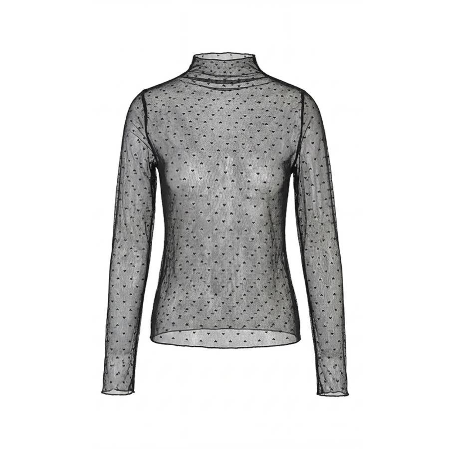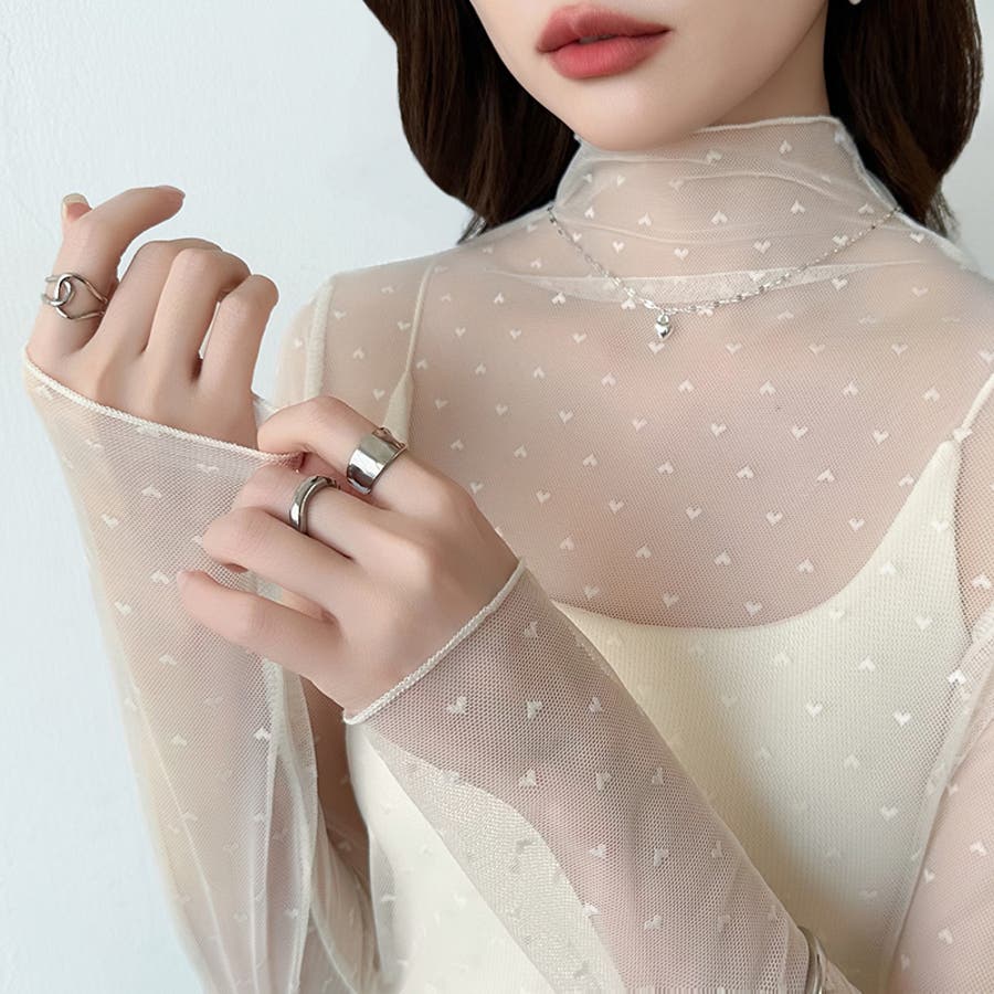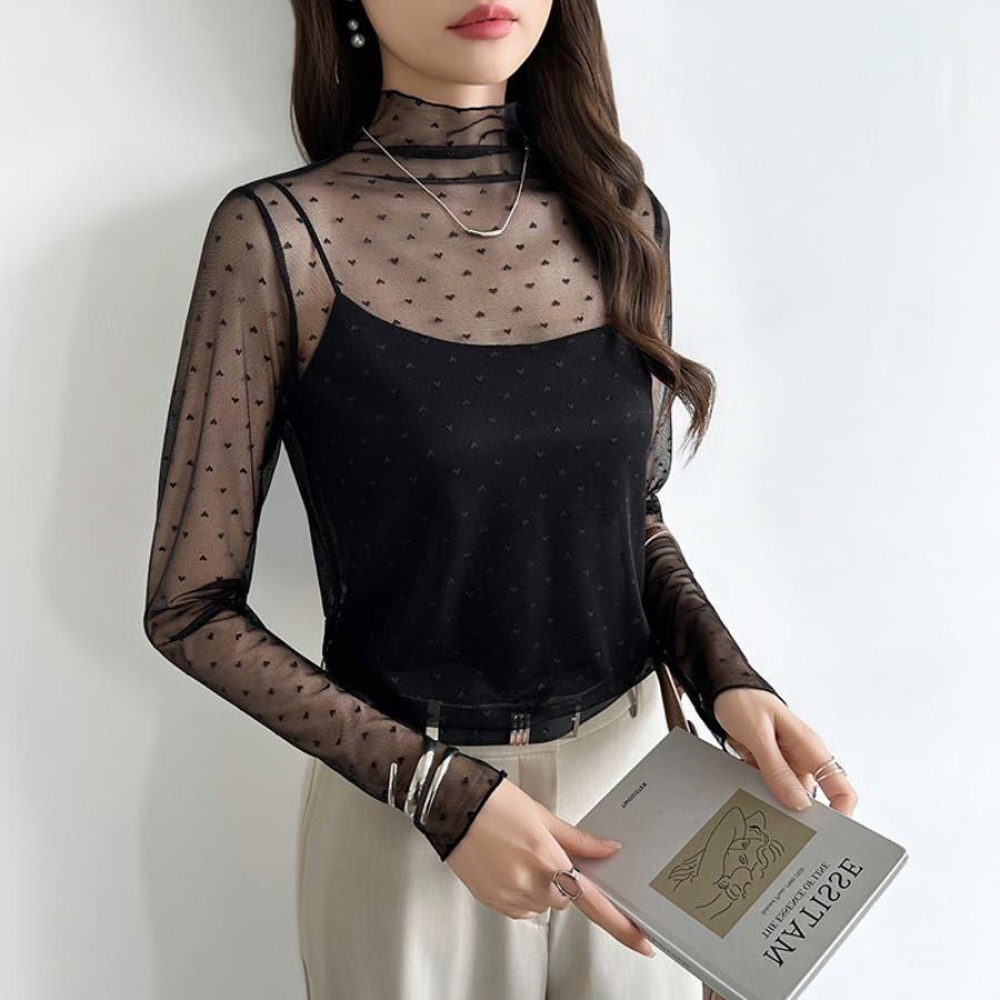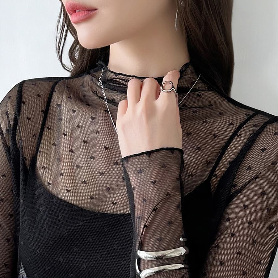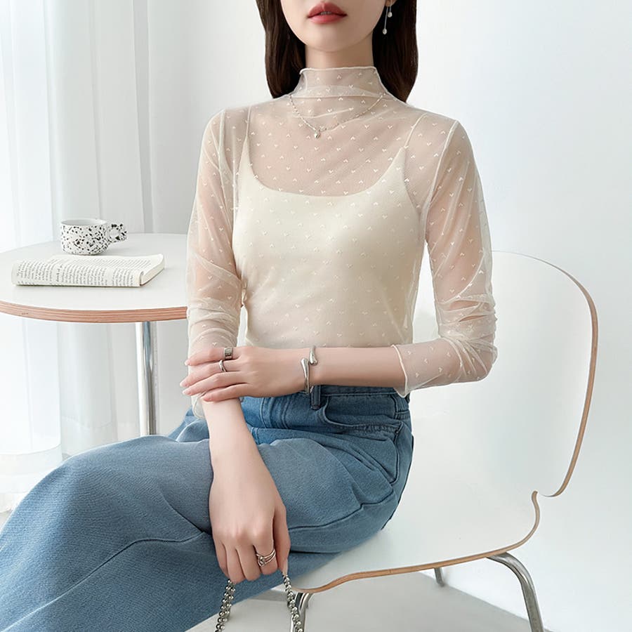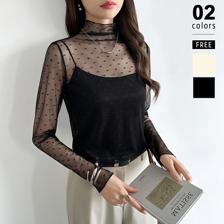 一枚でも重ねても。甘すぎないハート柄シアートップス シアー ハイネック