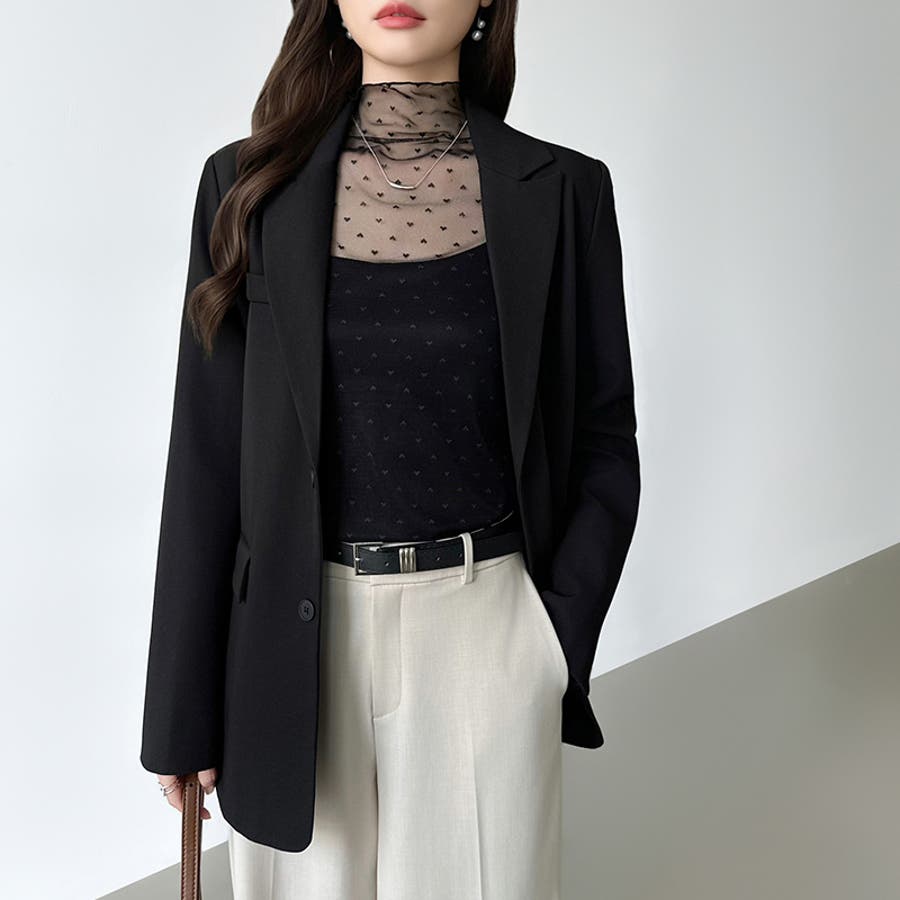 甘さを抑えた小粒のハートドットが 可愛くなりすぎず、大人のコーデに 溶け込むハート柄シアートップス。 シアー素材ならではの軽さと抜け感で トップスとしてもレイヤードしても 映えるのが魅力。 ジャケットやワンピースのインナーや ニットやスウェットの下に重ねたりと、 ちらっと覗くハートがコーデの アクセントになる一枚です。