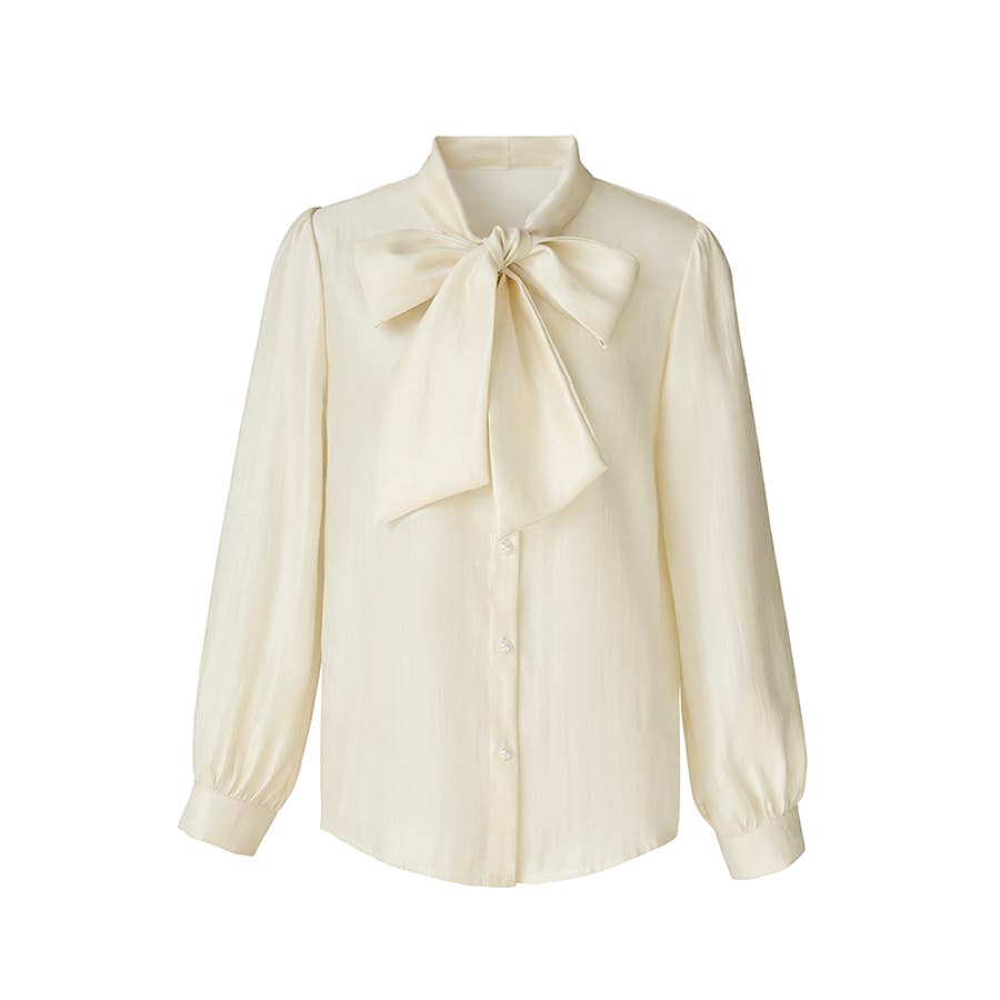 上品艶サテンのリボンブラウス ボウタイ ブラウス