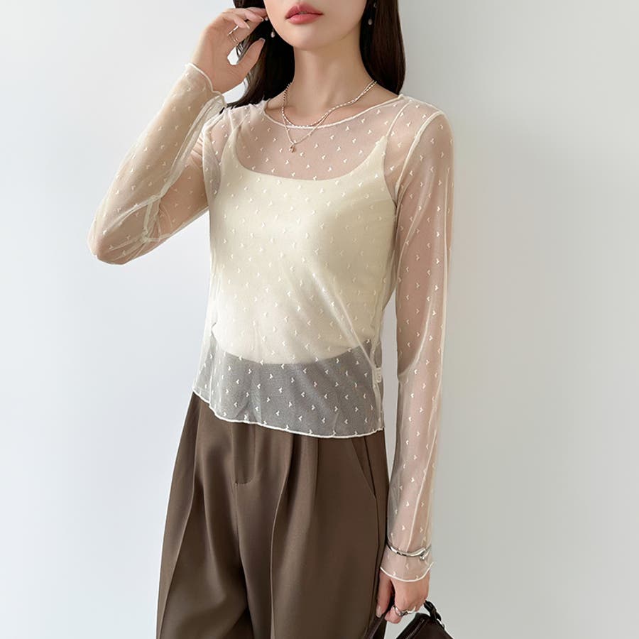 シアー トップス ハート柄 クルーネック 長袖 シアートップス レディース インナー 透け感 ハート 柄 ドット シアークルーネック レイヤード 重ね着 シースルー シースルートップス ハートドット ストレッチ きれいめ 上品 ラウンドネック カットソー シアーインナー シアーカットソー シースルートップス 襟ぐり 広い 広め 首元 首 レイヤードインナー レイヤードトップス レースインナー長袖 シアーレースインナー インナートップス レースブラウス レースブラウスフォーマル メッシュ チュール 総レース 肌見せ 露出控えめ 露出少なめ シアー素材 シワ隠し 首隠し カバー 隠し 透け 薄手 薄い 綺麗め おしゃれ 長袖tシャツ 涼しい プルオーバー シンプル キレイめトップス キレイめカジュアル きれいめカットソー キレイめカットソー 長袖カットソー ロンt シアーロンt シアーロングTシャツ tops 着回し 着まわし 伸縮性 伸びる 洗える 手洗い 手洗い可能 洗濯できる 洗濯 洗濯可能 洗濯可 紫外線対策 日焼け対策 日焼け防止 UV uv対策 uvカット対策 冷房対策 水着の上 水着の上に着る さらさら オフィス オフィスカジュアル オフィスカジュアル春夏 オフィカジ オケージョン セレモニー フォーマル 式典 入園式 卒園式 入学式 卒業式 謝恩会 同窓会 パーティー パーティ 食事会 女子会 デート おでかけ お出かけ 旅行 カジュアル フェミニン ガーリー セクシー 華やか オトナ かわいい 可愛い 大人 大人可愛い 大人っぽい きれい め キレイめ 綺麗め オシャレ 女性 母 ママ ママコーデ プチプラ 高見え トレンド ヒット 商品 おすすめ 服 服装 洋服 ファッション コーデ コーディネート フリーサイズ フリー サイズ アイボリー ホワイト 白 ブラック 黒 カラー レディース春夏 レディース春物 レディース夏物 レディース秋物 レディース春 春トップス レディース夏 夏トップス 秋トップス レディース秋 レディース韓国 きれいめカジュアルレディース シアートップスレディース レディース春カットソー 長袖カットソーレディース 新作 春秋 春夏 秋冬 春 夏 秋 冬 春服 夏服 秋服 冬服 春物 夏物 秋物 春用 夏用 秋用 韓国 韓国ファッション 10代 20代 30代 40代 50代 60代 70代 cocomomo ココモモ
