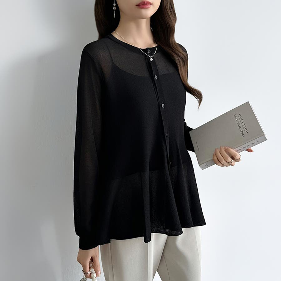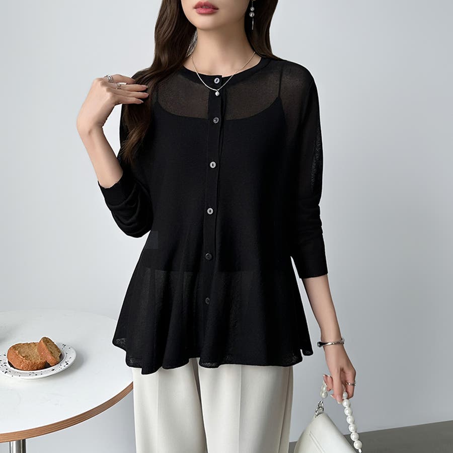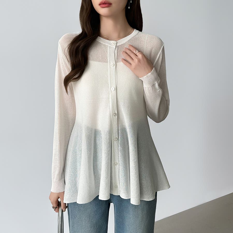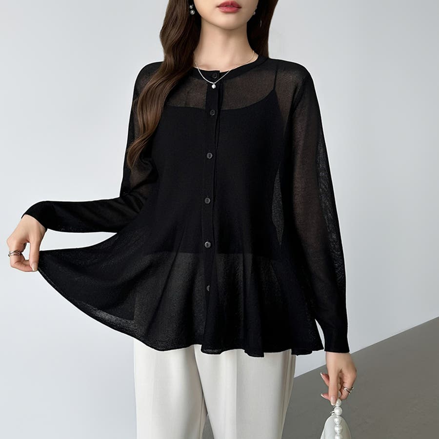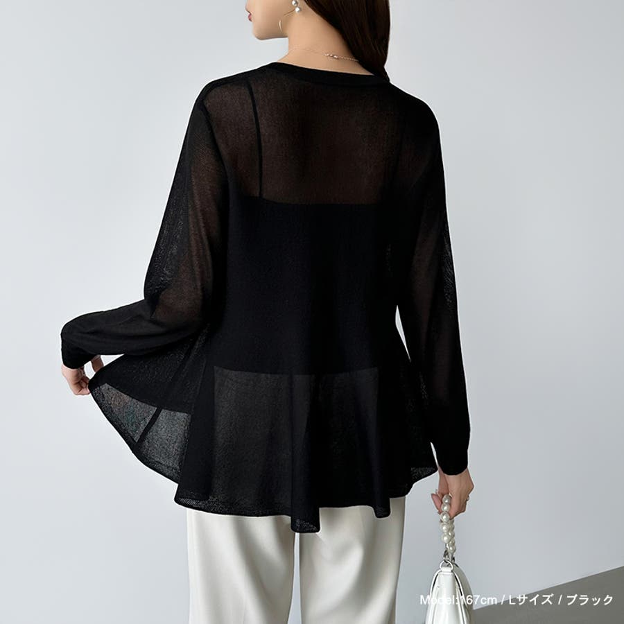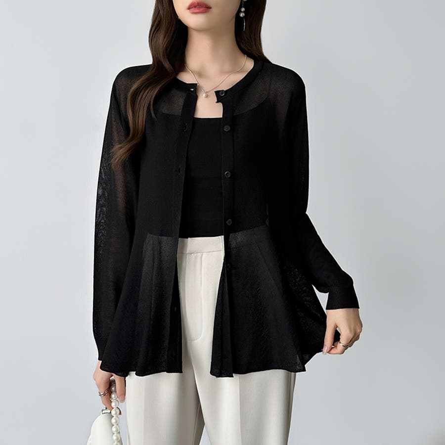 透け感でつくる、シアーペプラム シアーカーディガン ペプラムトップス