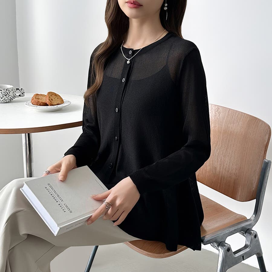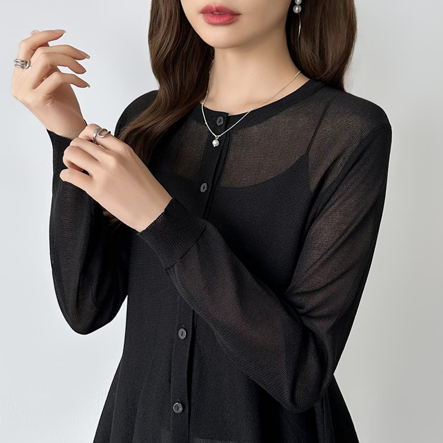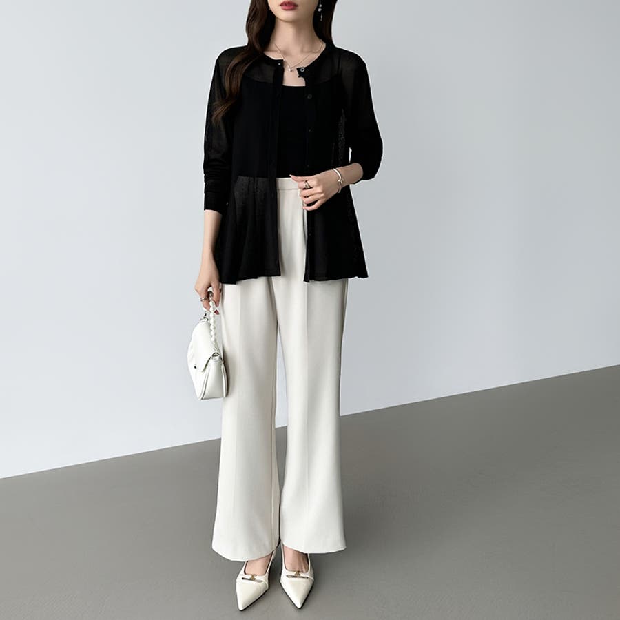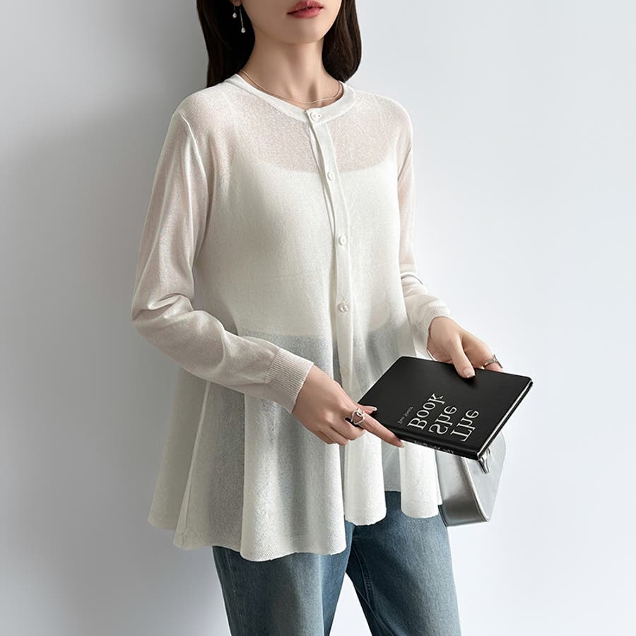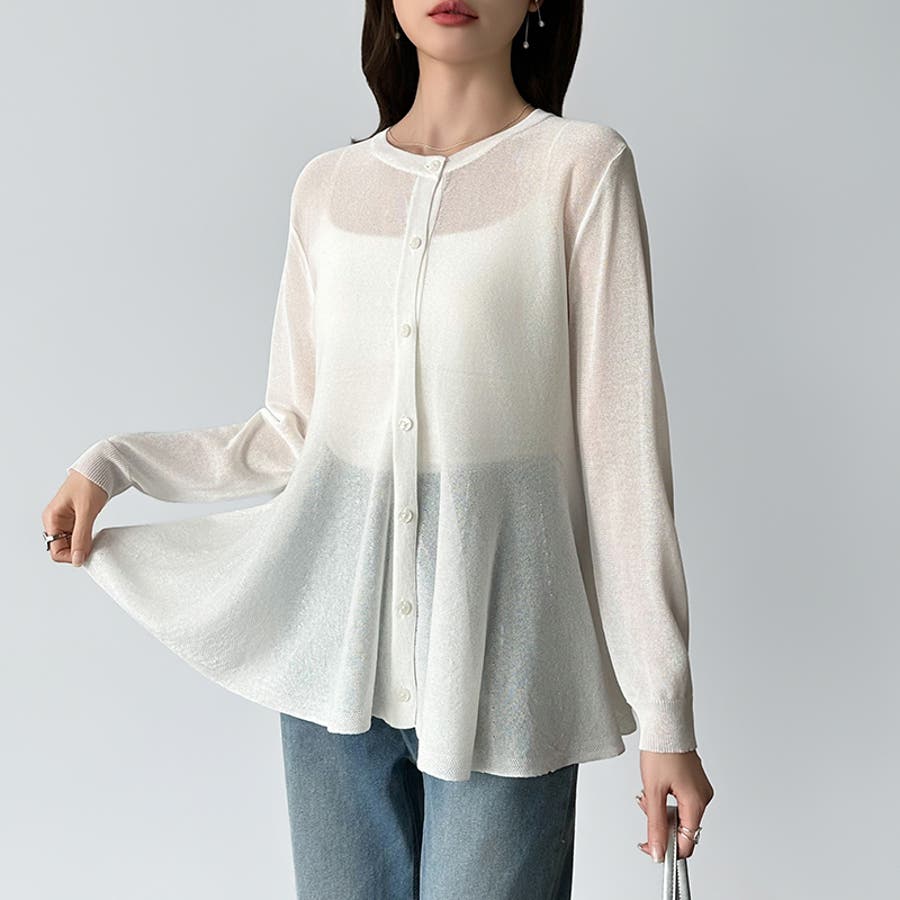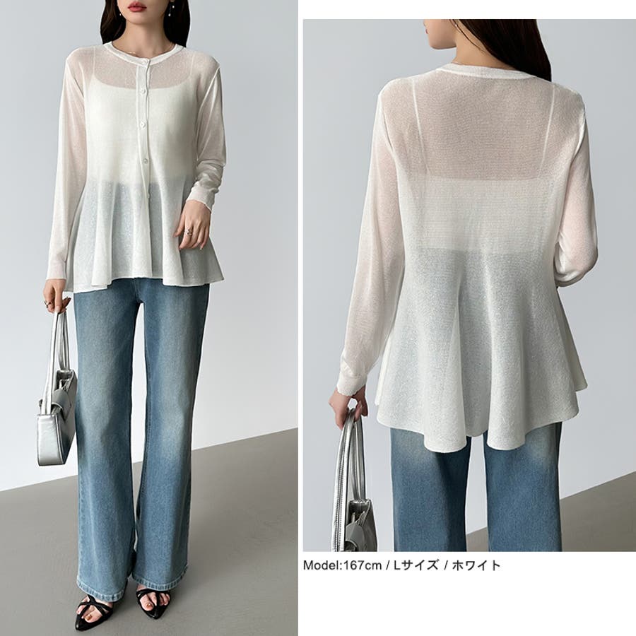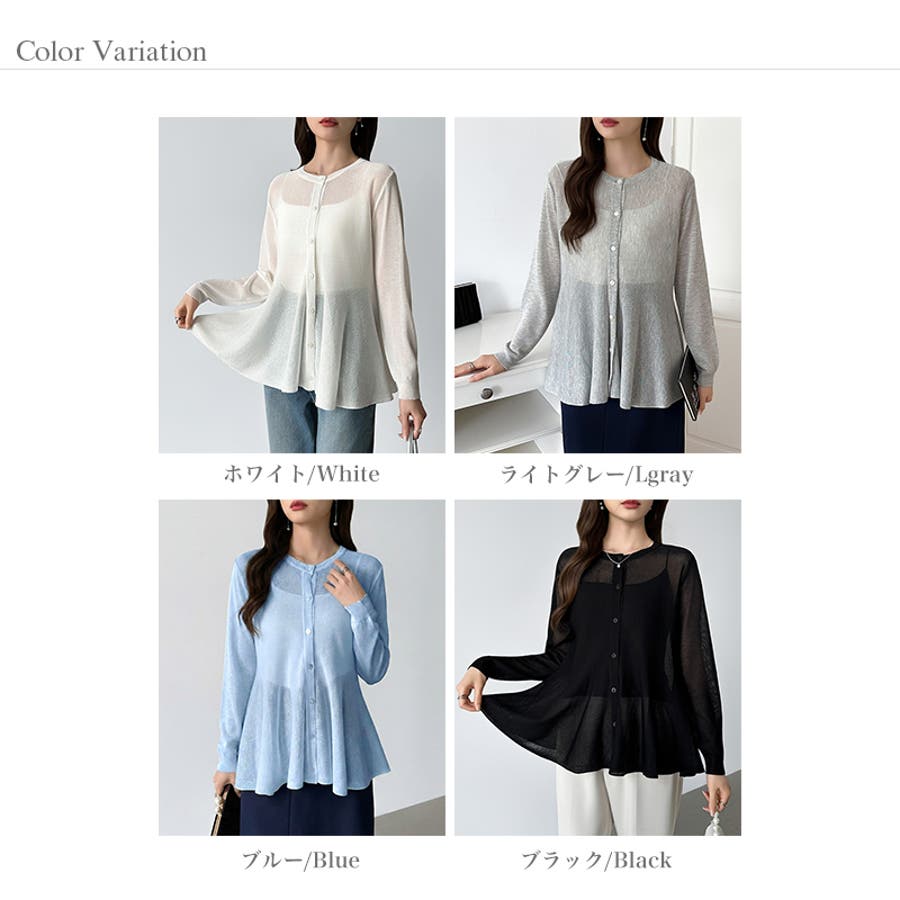 透け感でつくる、シアーペプラム シアーカーディガン ペプラムトップス