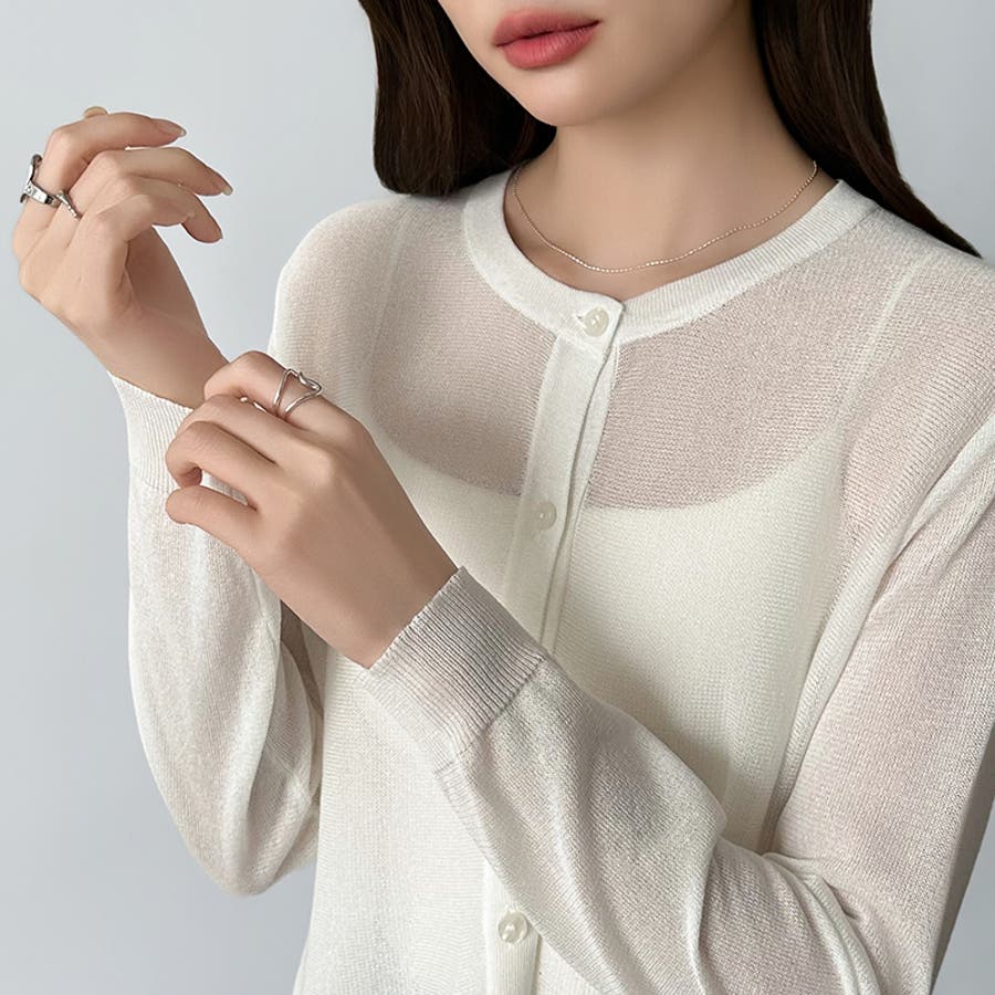 繊細な透け感が軽やかな ペプラムシアーカーディガン。 光をやさしく通すシアー感が 重くなりがちな春夏コーデに 抜け感をプラス。 ペプラムシルエットが腰まわりを さりげなくカバーし、トップスとしても 羽織りとしてもコーディネートに 自然な華やぎを添えます。