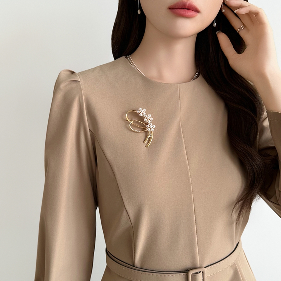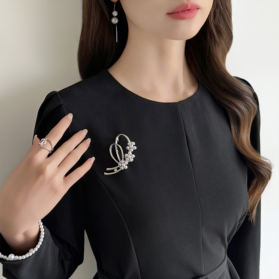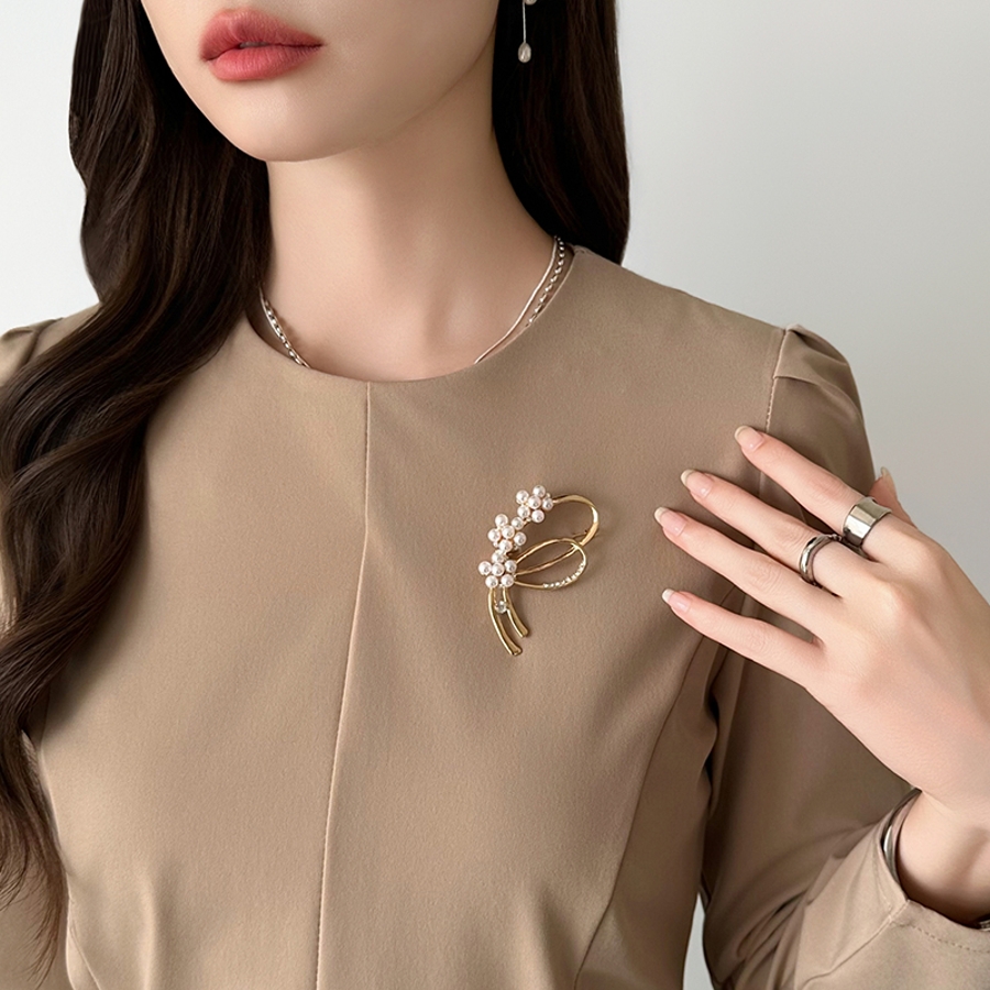 パールの艶としなやかなラインで 品格アップするパールラインブローチ。 パールとラインストーンをバランス良く 配置し、胸元に添えるだけでフォーマル スタイルが一段格上げされるデザイン。 卒業式・入学式などのセレモニーは もちろん、パーティーや結婚式、 きれいめ通勤コーデにも自然にマッチ。 ジャケット・ワンピース・ブラウス、 どんな装いにも、きちんと感と 華やかさを同時にプラスします。