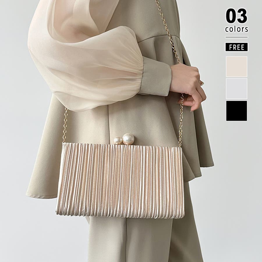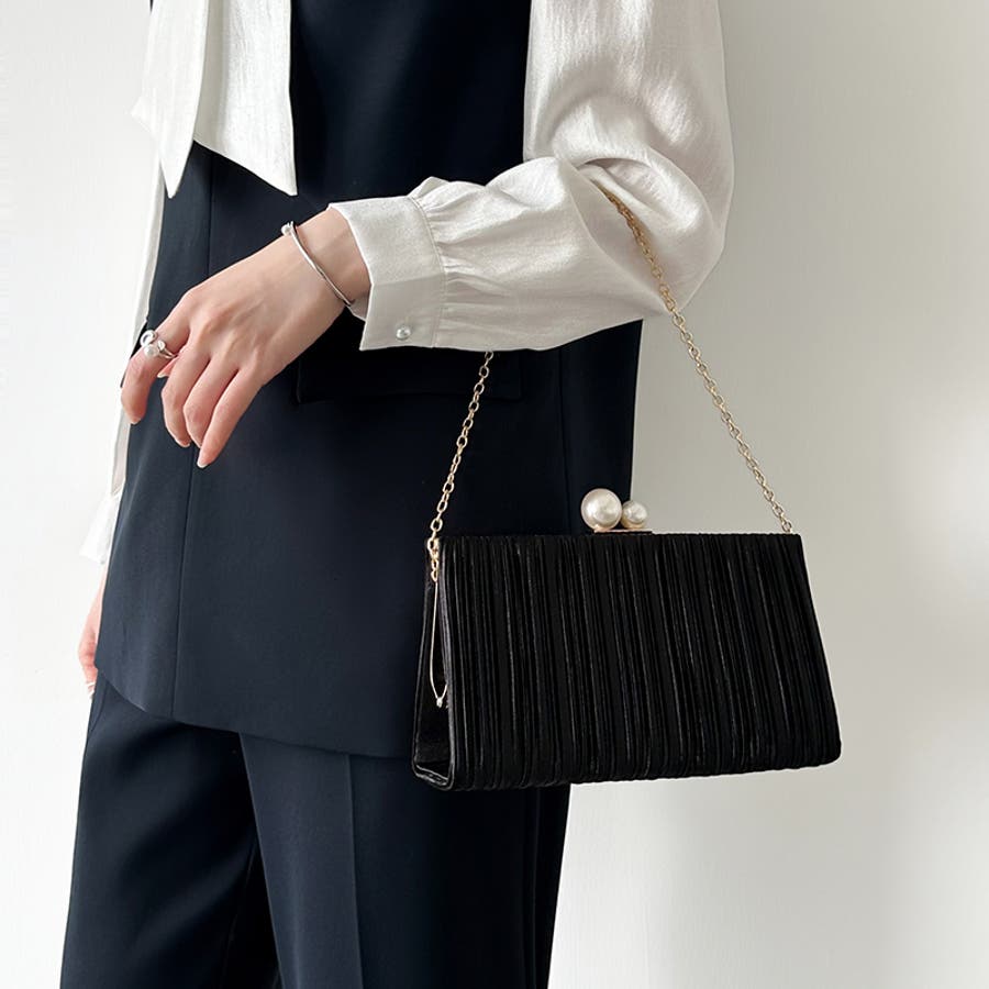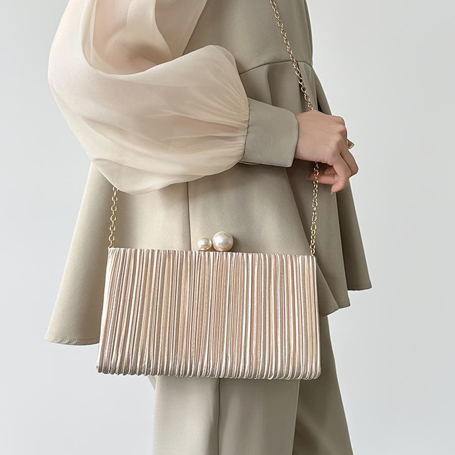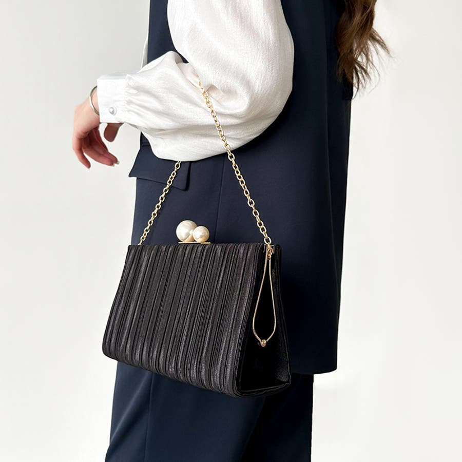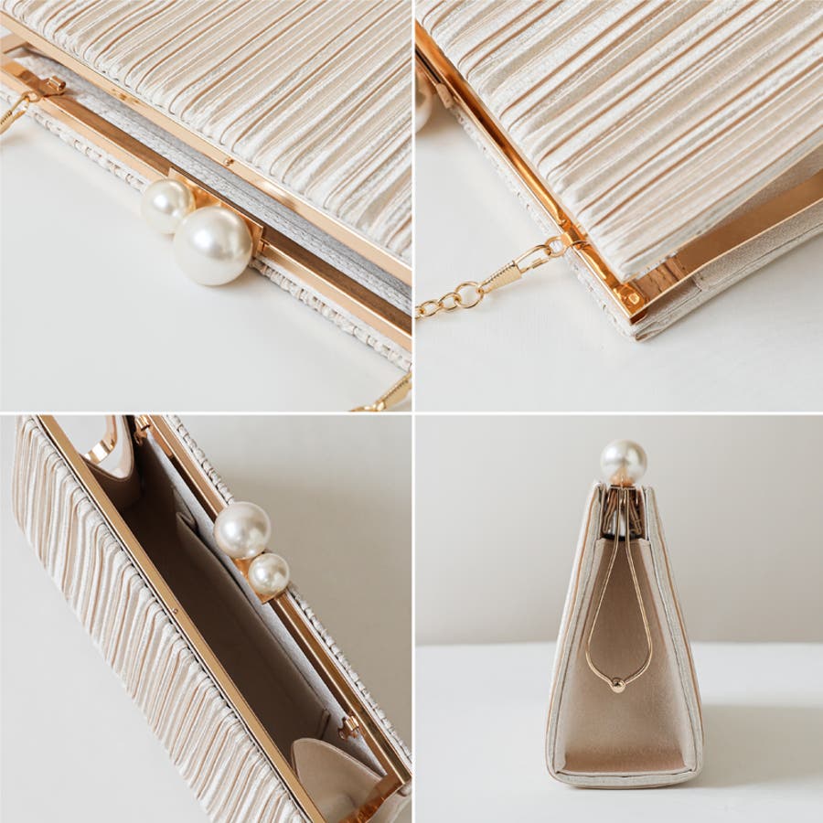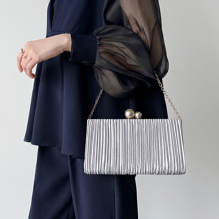【プリーツ×大粒パールが映える】3wayパーティーバッグ クラッチバッグ パーテ…