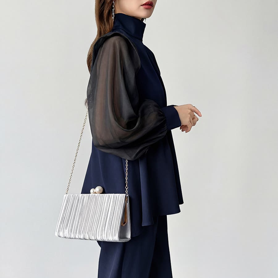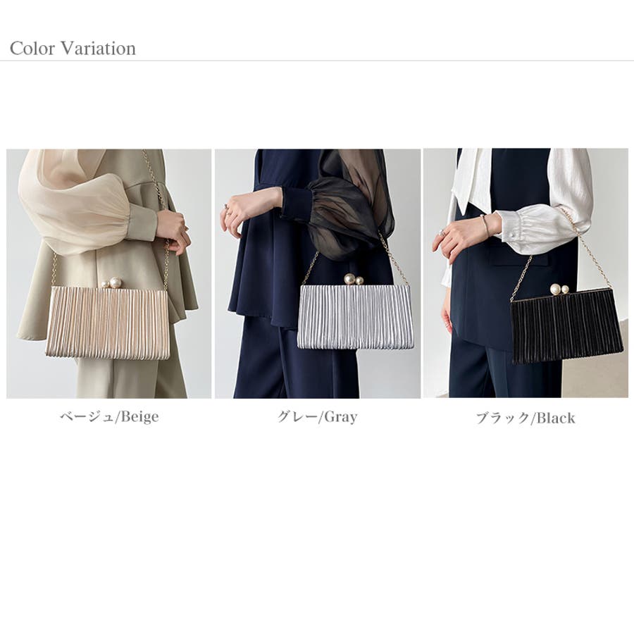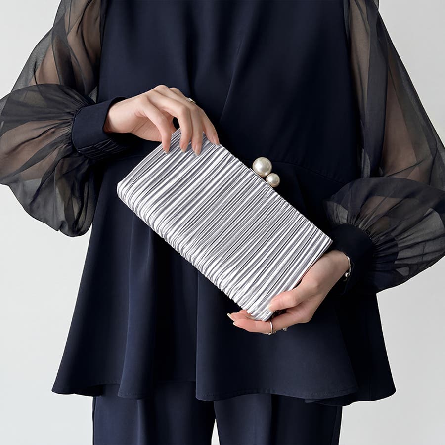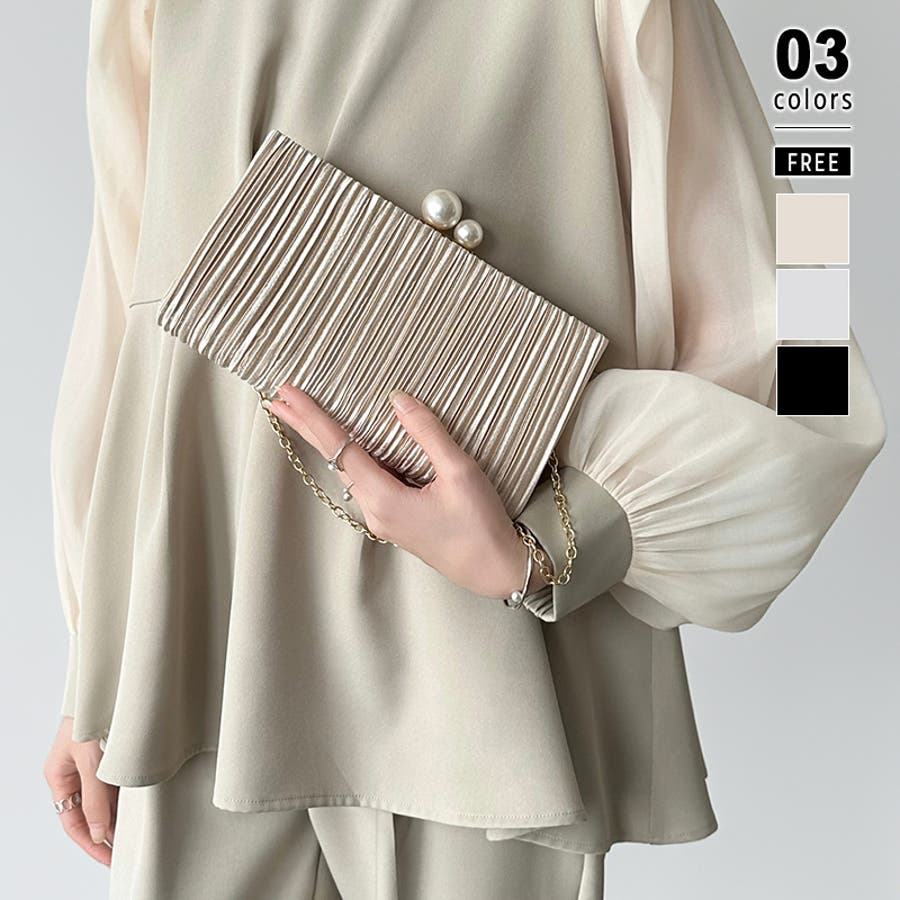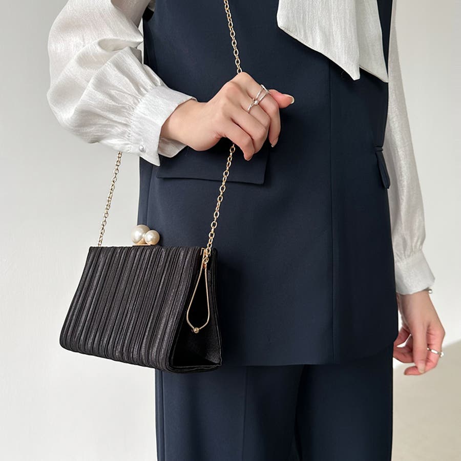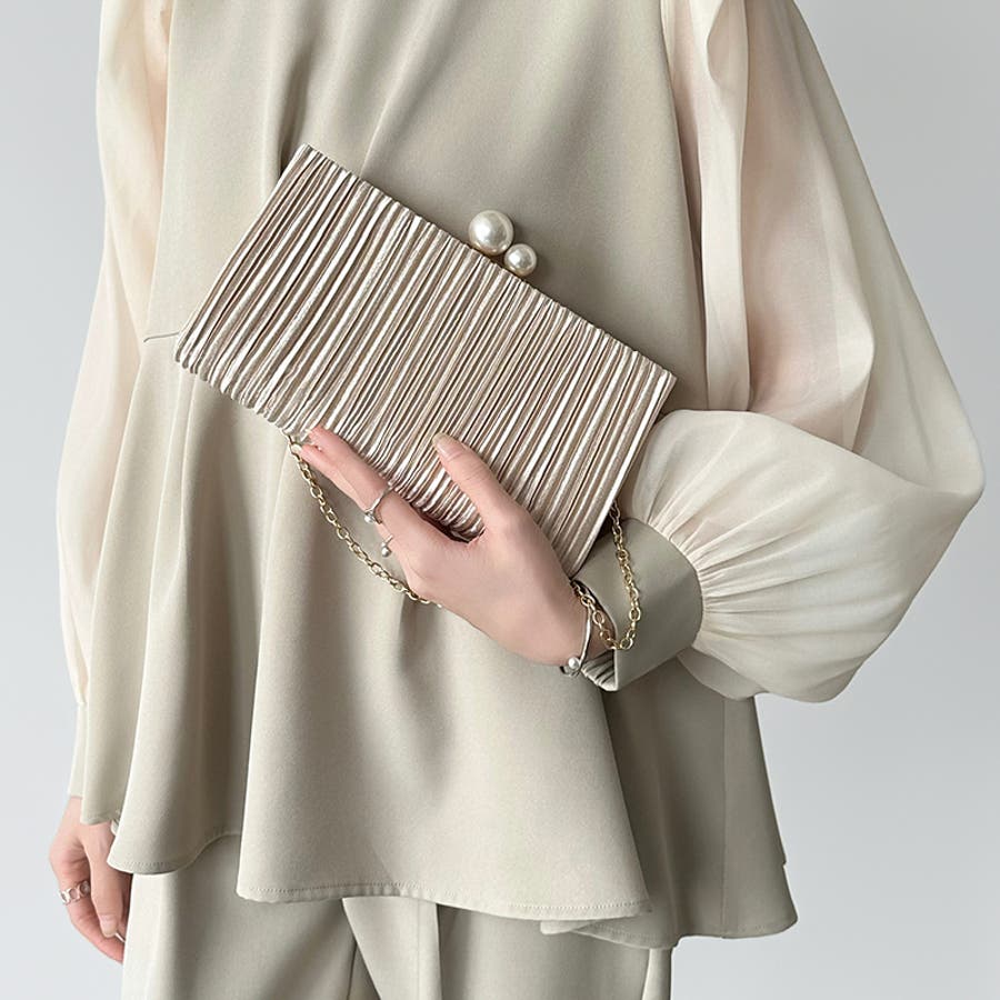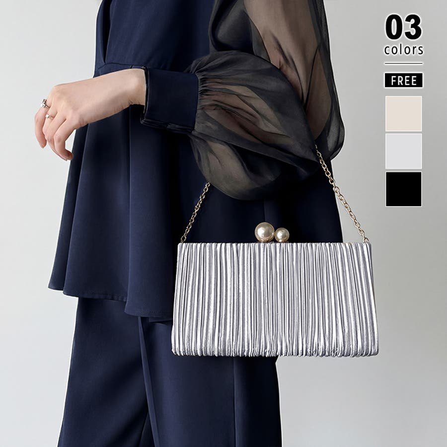 【プリーツ×大粒パールが映える】3wayパーティーバッグ クラッチバッグ パーテ…