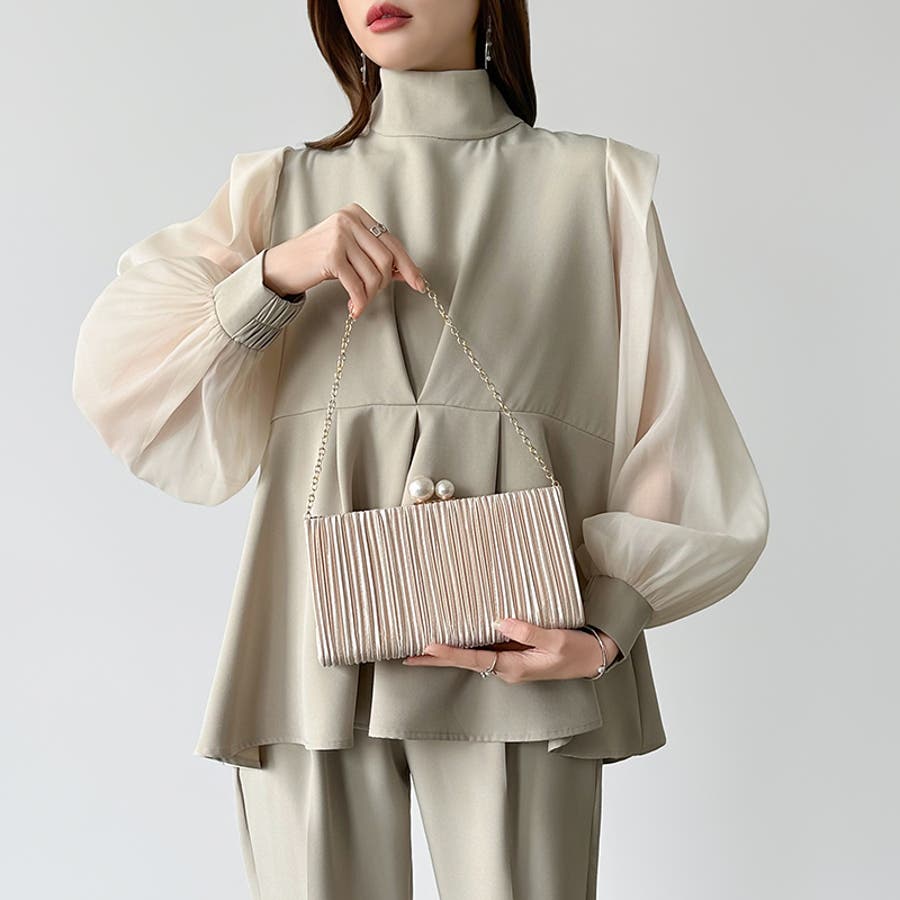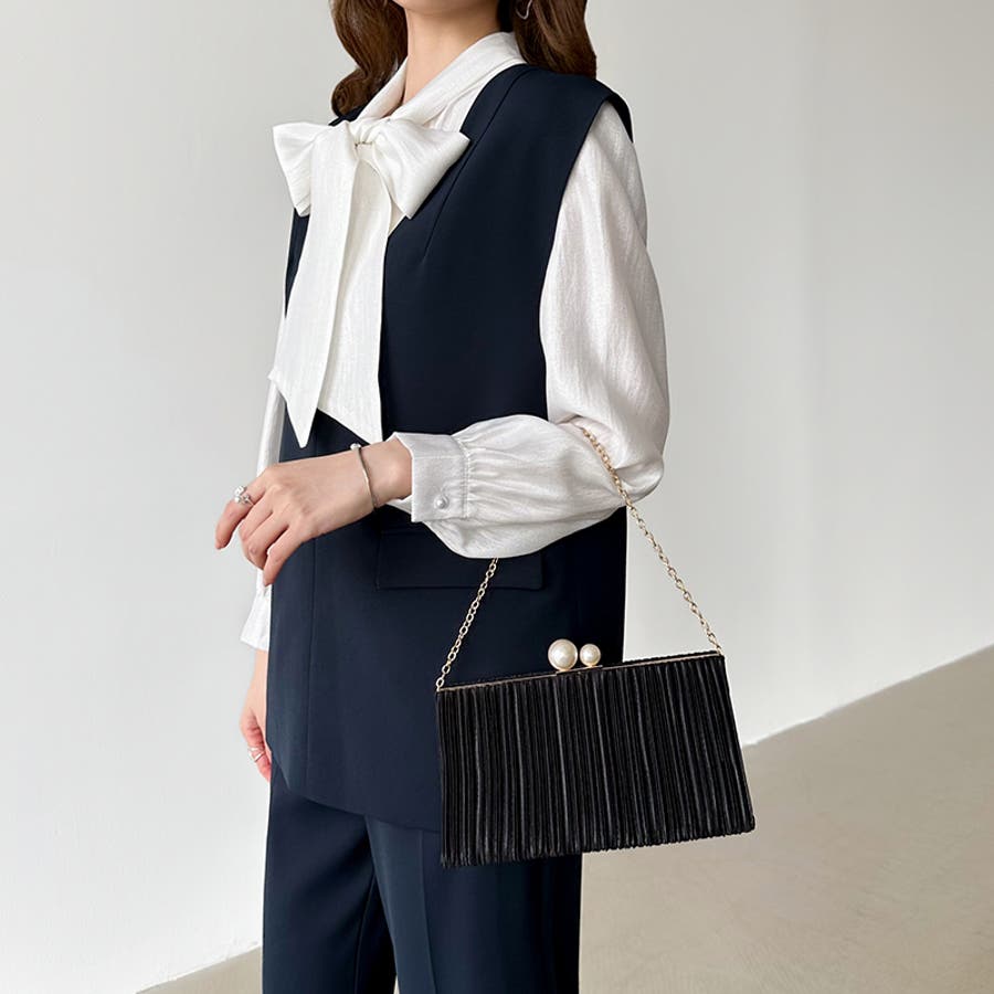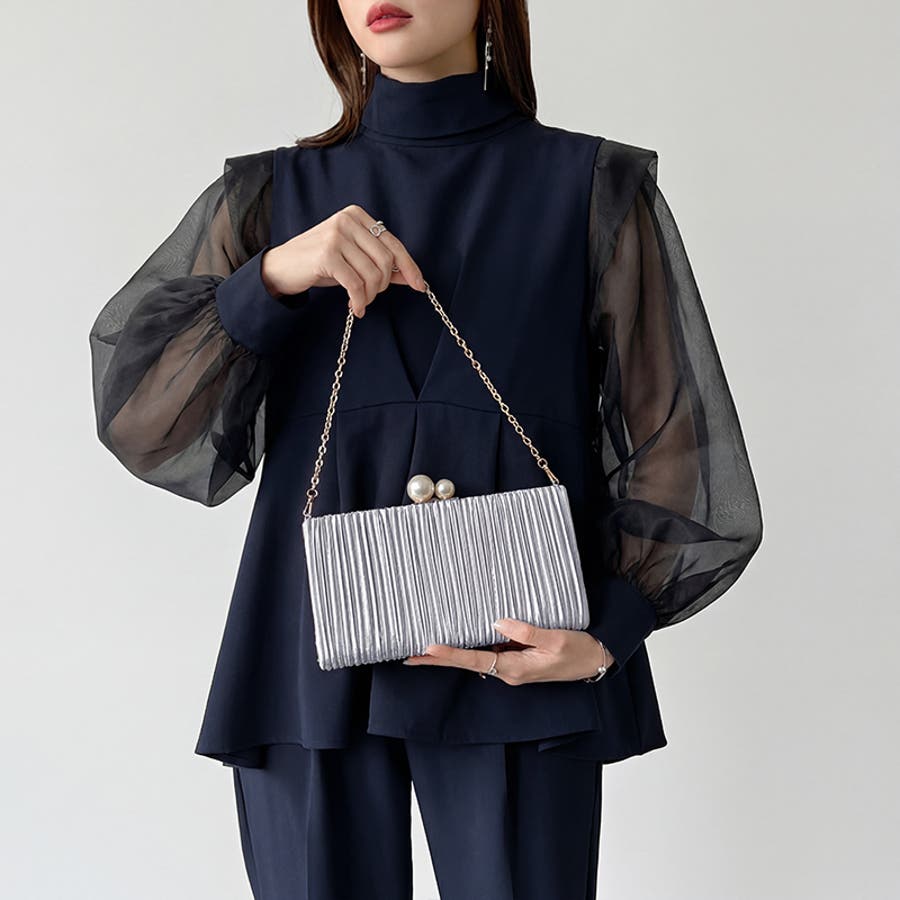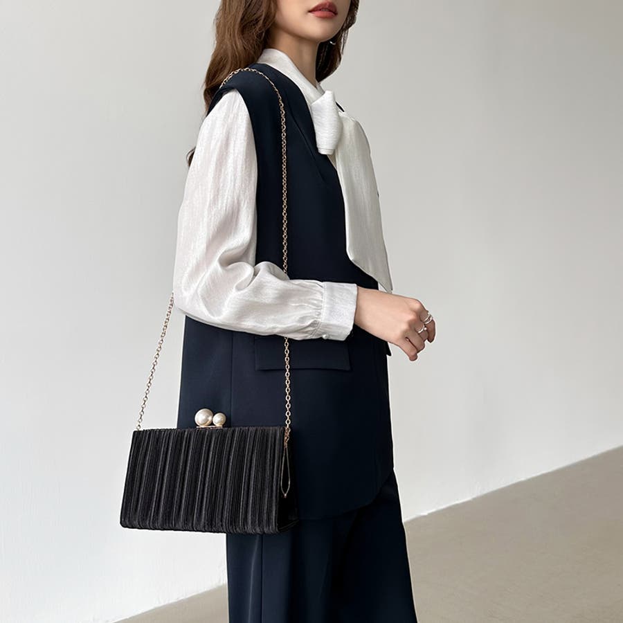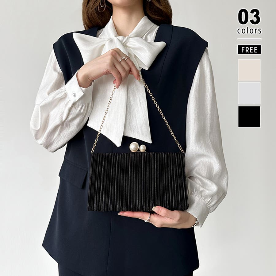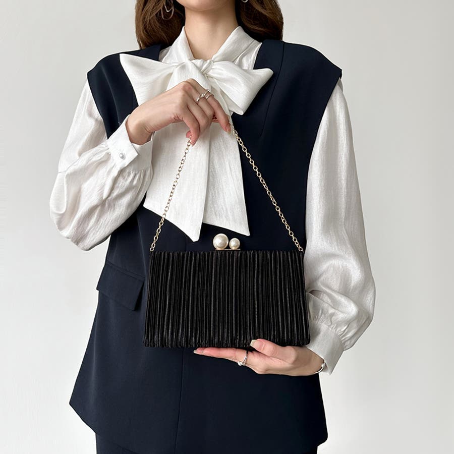 【プリーツ×大粒パールが映える】3wayパーティーバッグ クラッチバッグ パーテ…