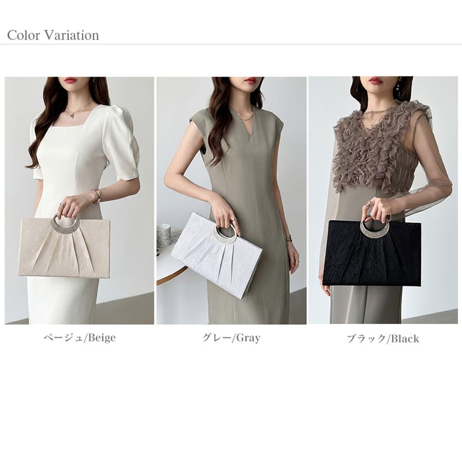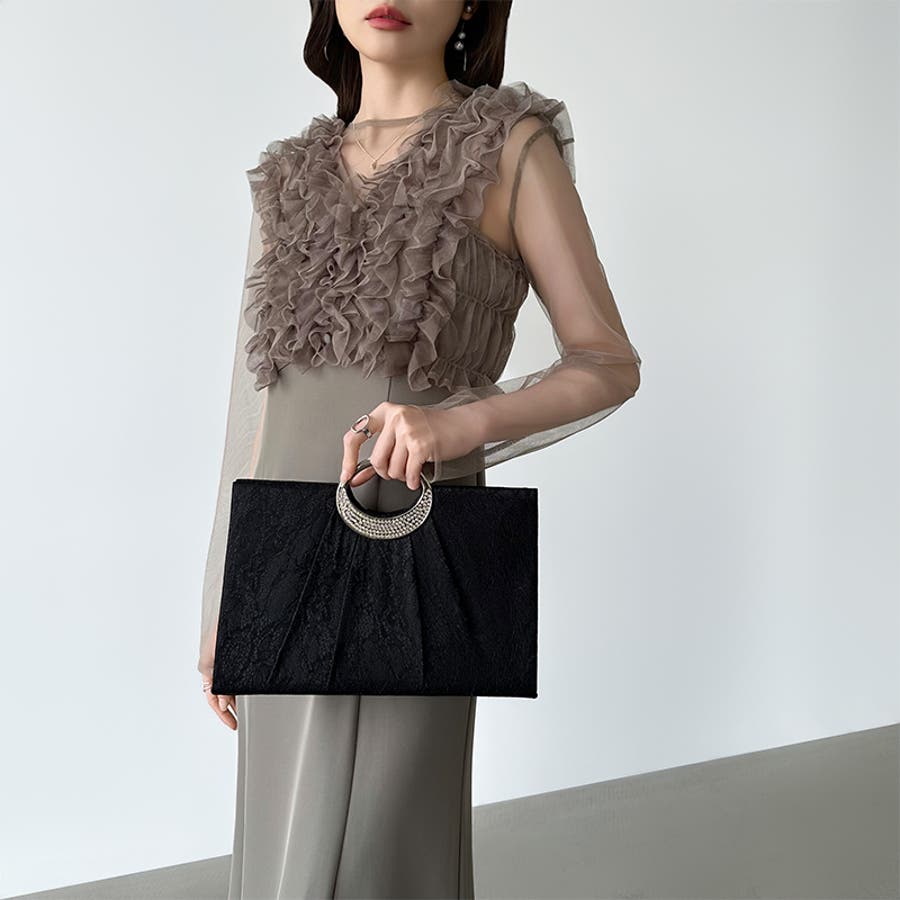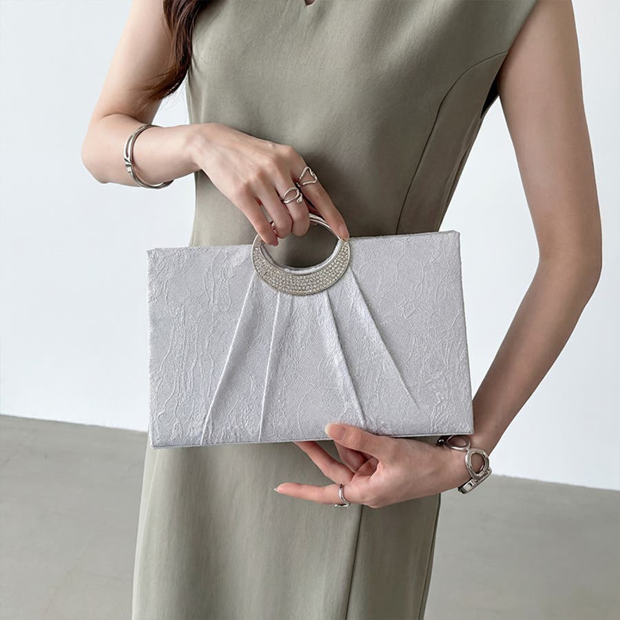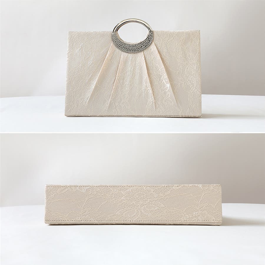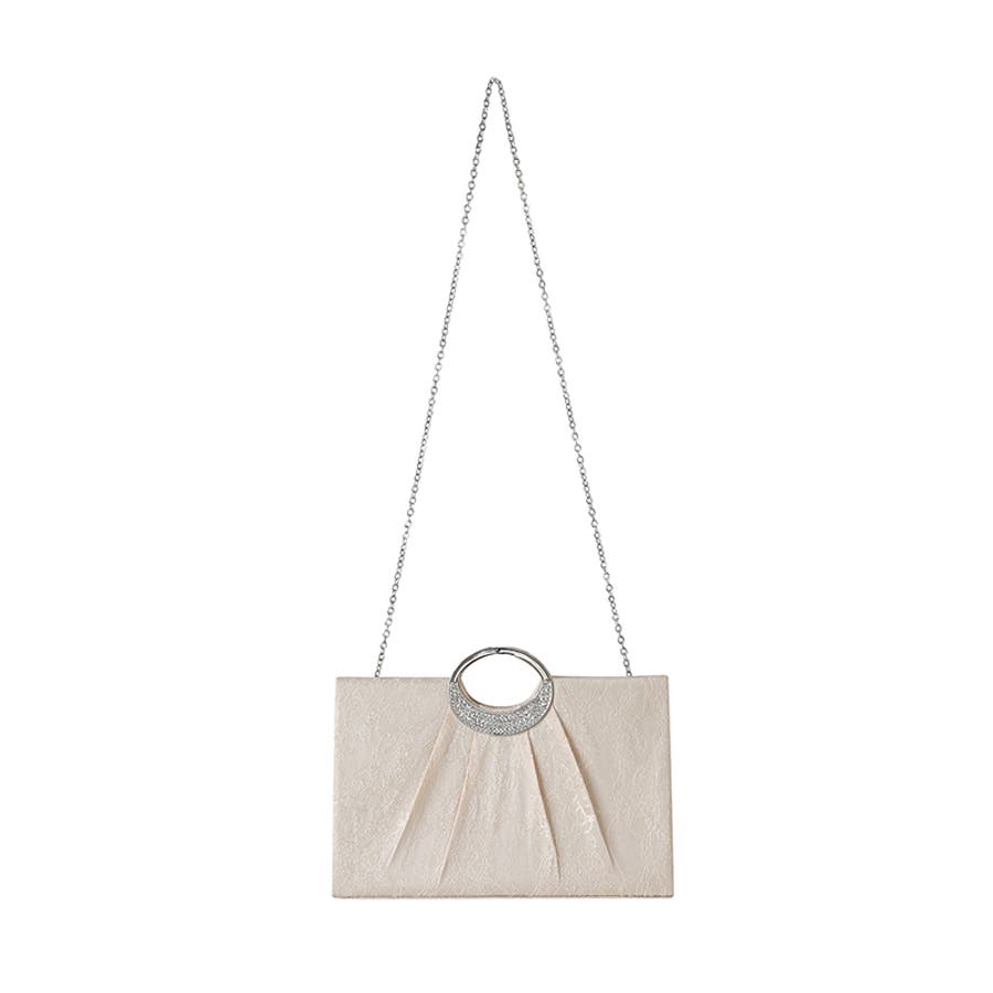 繊細なフラワーレースに美しい 立体感のプリーツタックを施した パーティーバッグ。 取り外し可能なチェーンが付いた 便利な2way仕様。シーンに合わせて 肩掛けとしてもお使いいただけます。 手元でジュエリーのように輝く ビジューは、オケージョンスタイルを 華やかに格上げ。 横幅約29.5cmの頼れるサイズ感で ご祝儀袋(袱紗)はもちろん、 お呼ばれの必須アイテムがすっきり 収まります。