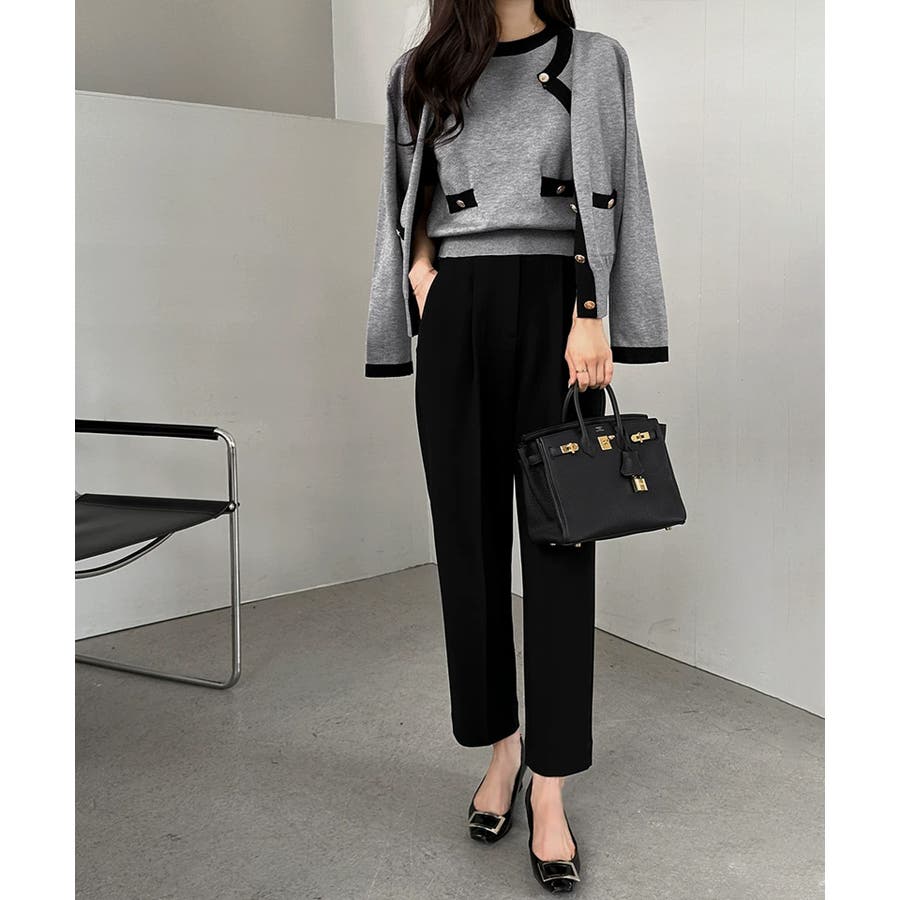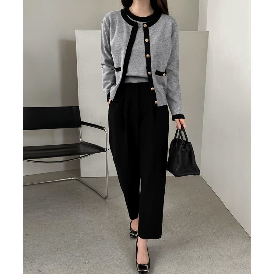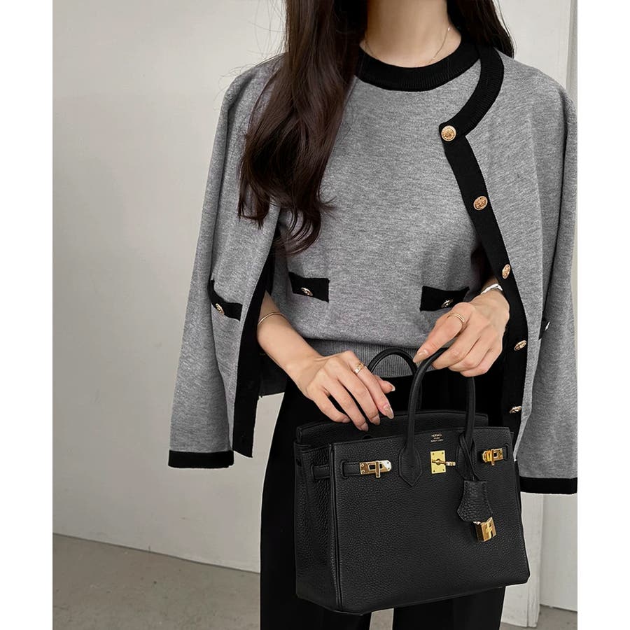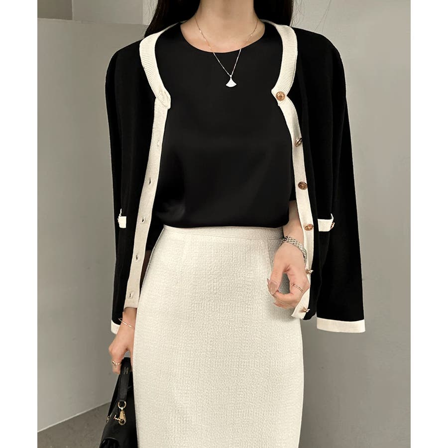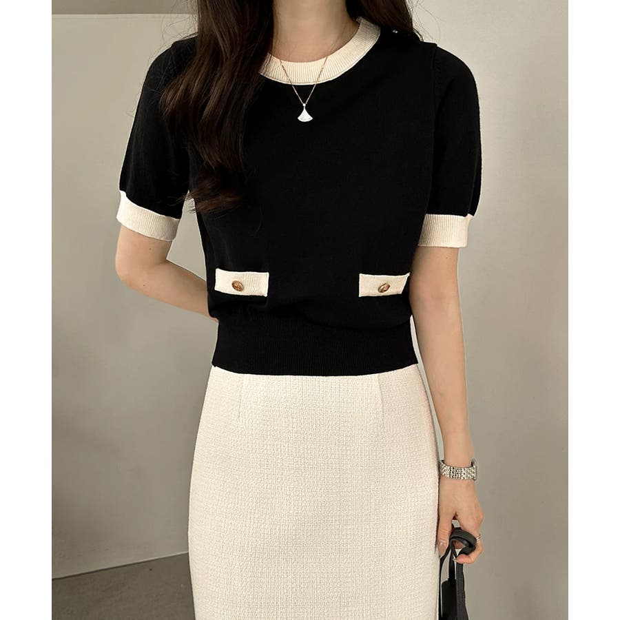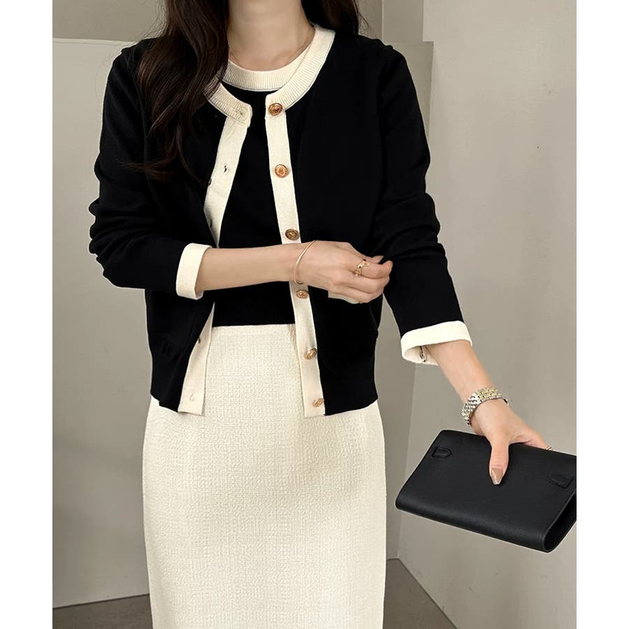 配色×金ボタンで上品見え 半袖ニット×カーディガンの サマーニットアンサンブル。 上品な配色と金ボタンをあしらった ディテールでオンオフ対応できる 大人バランスを叶えます。 さらっとした肌触りで、春から 秋口までロングシーズン活躍。 セットでも単品使いもできて 着回し力も抜群です。