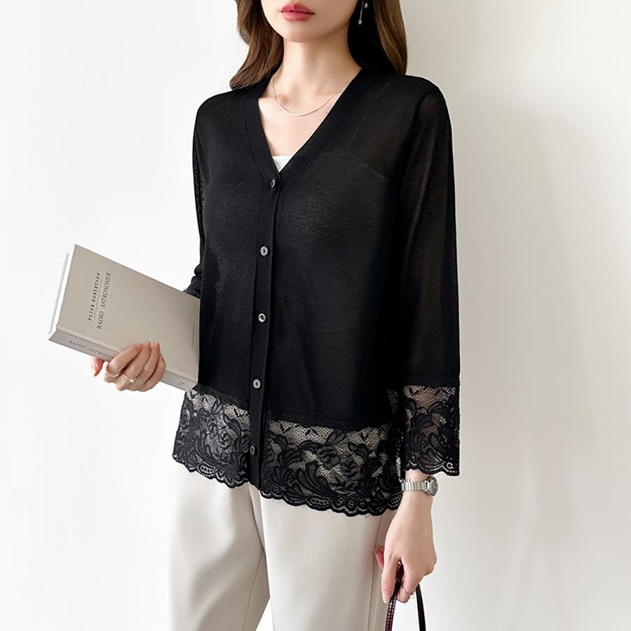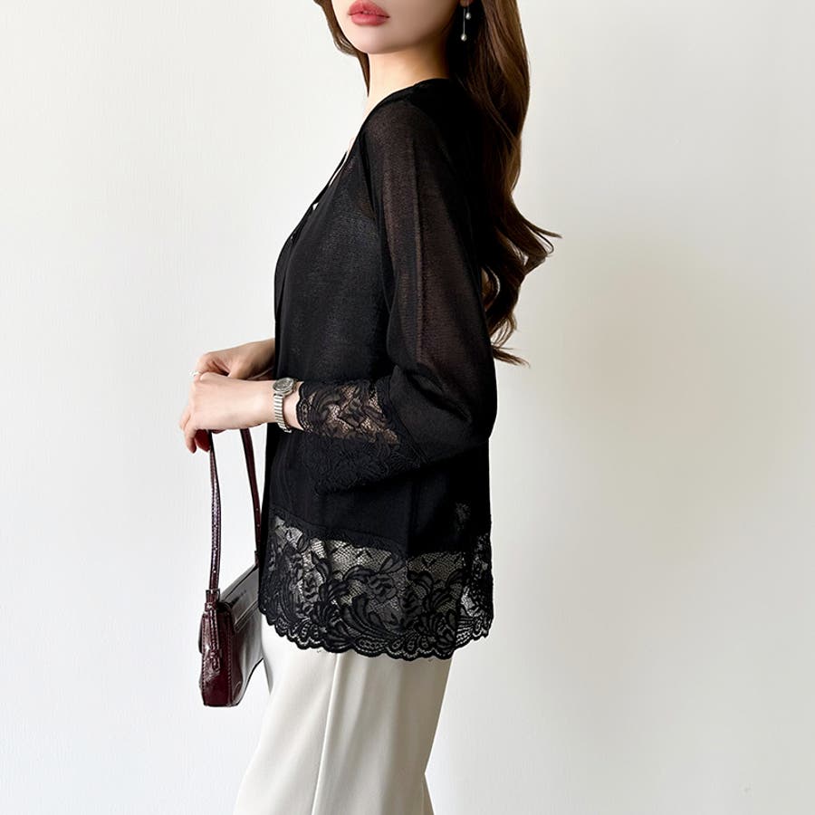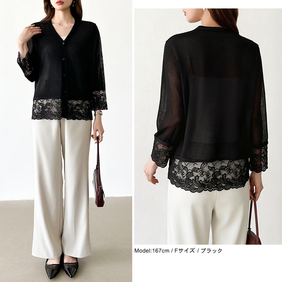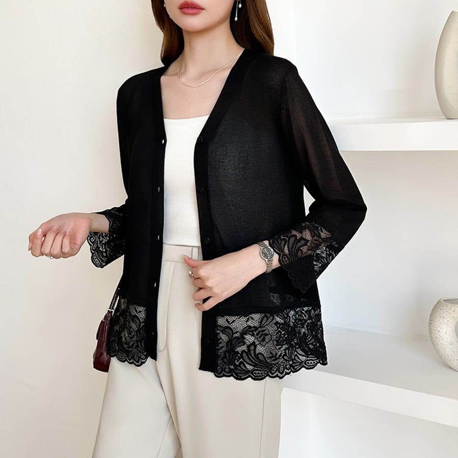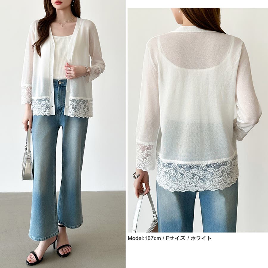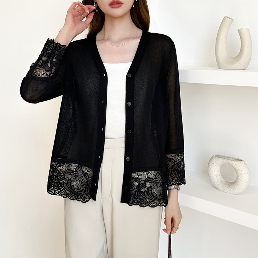 シアーレースの褒められカーディガン レースカーディガン シアーカーディガン