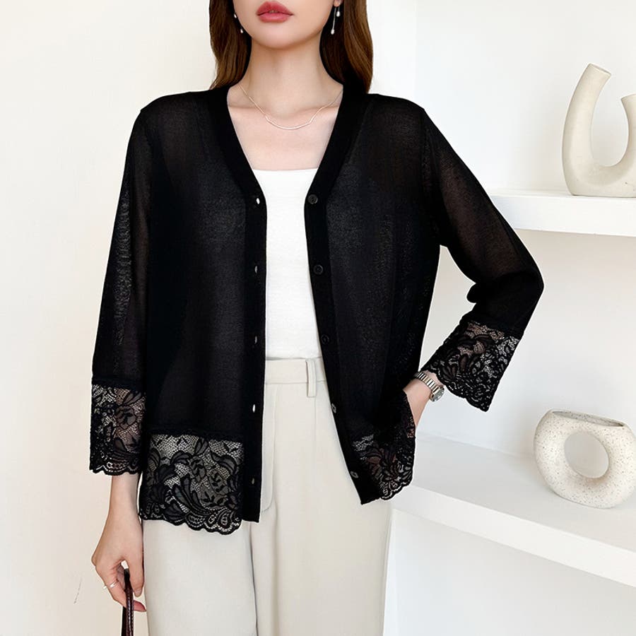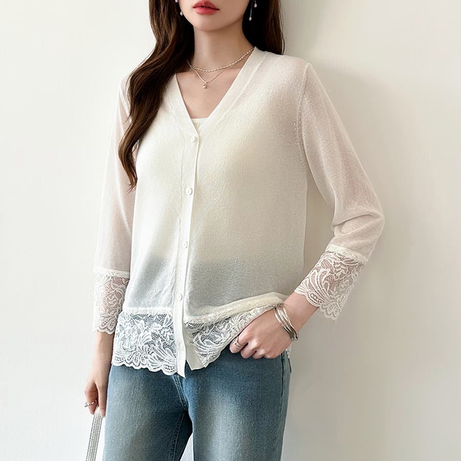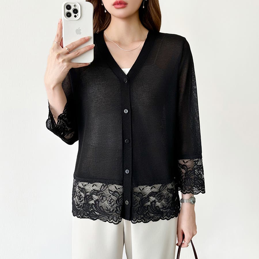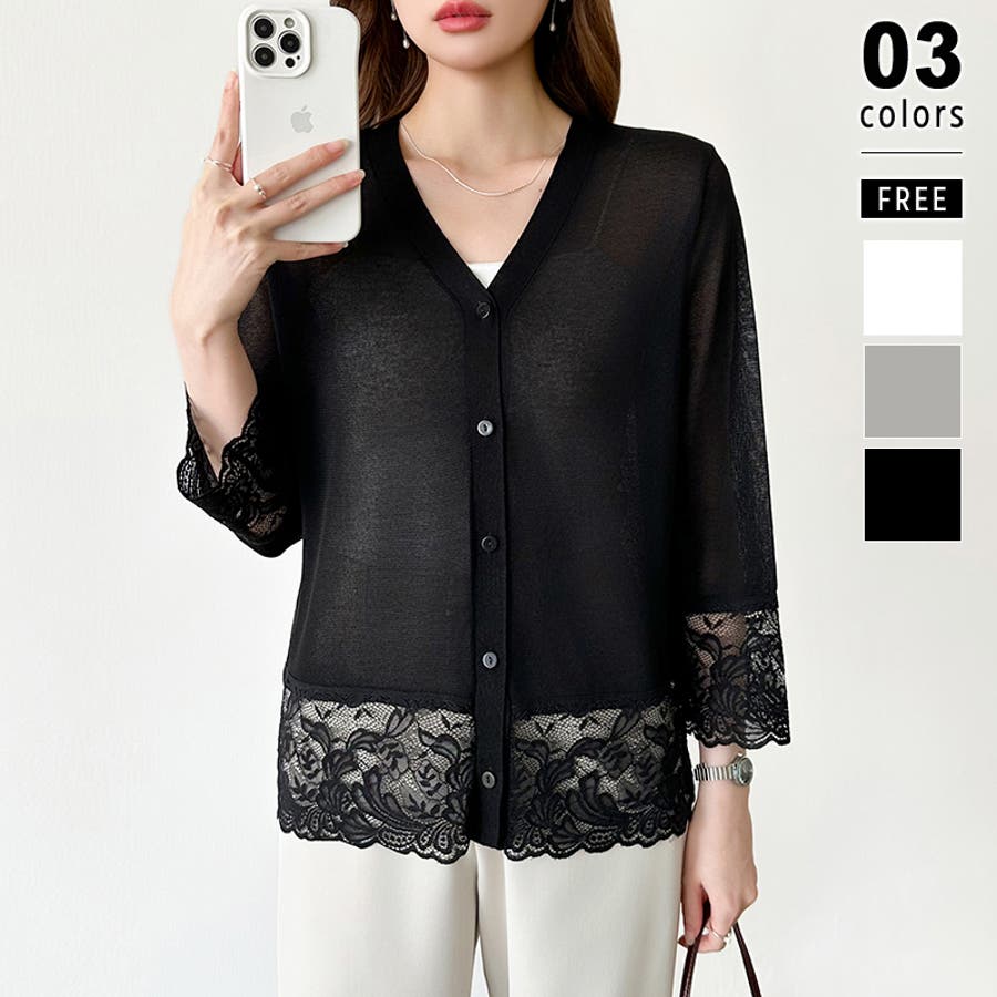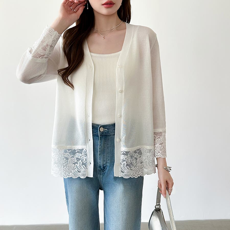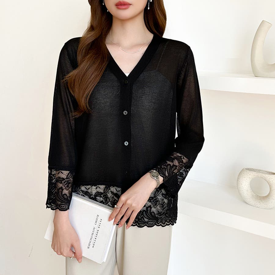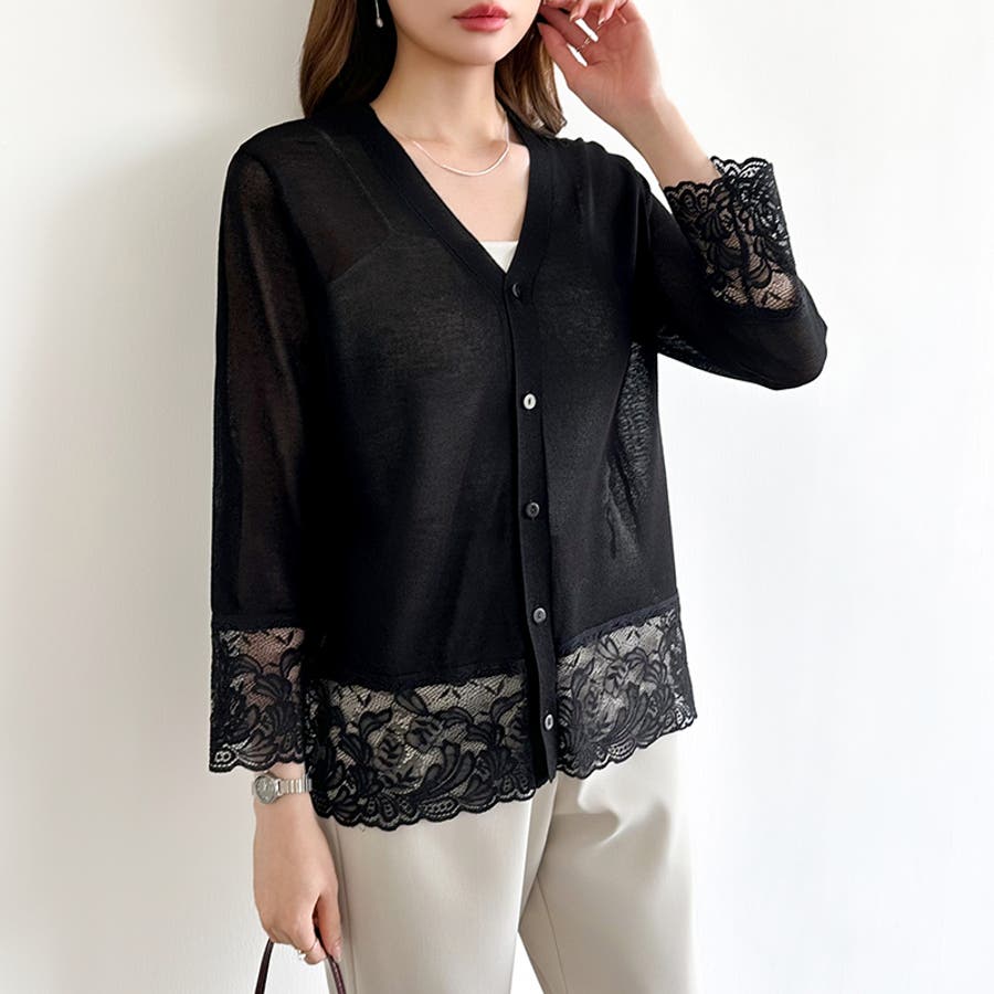 シアーレースの褒められカーディガン レースカーディガン シアーカーディガン