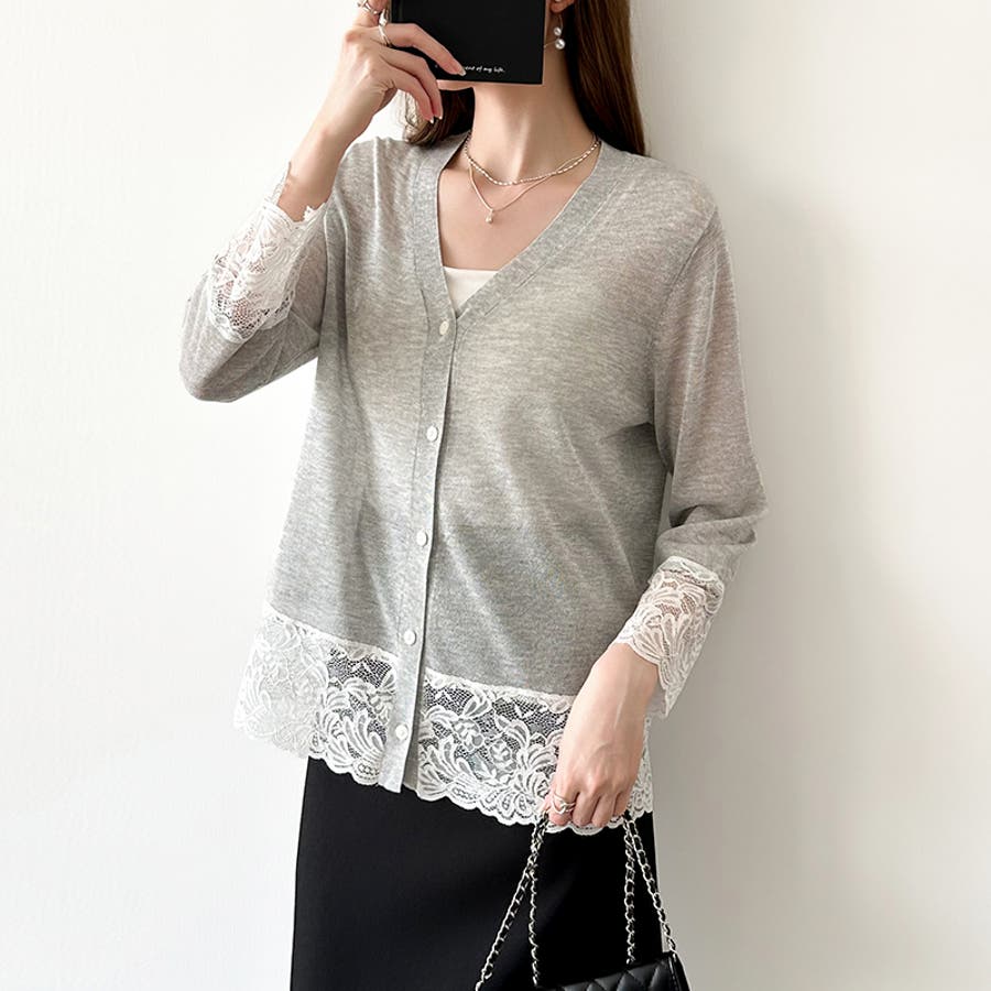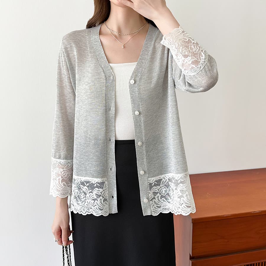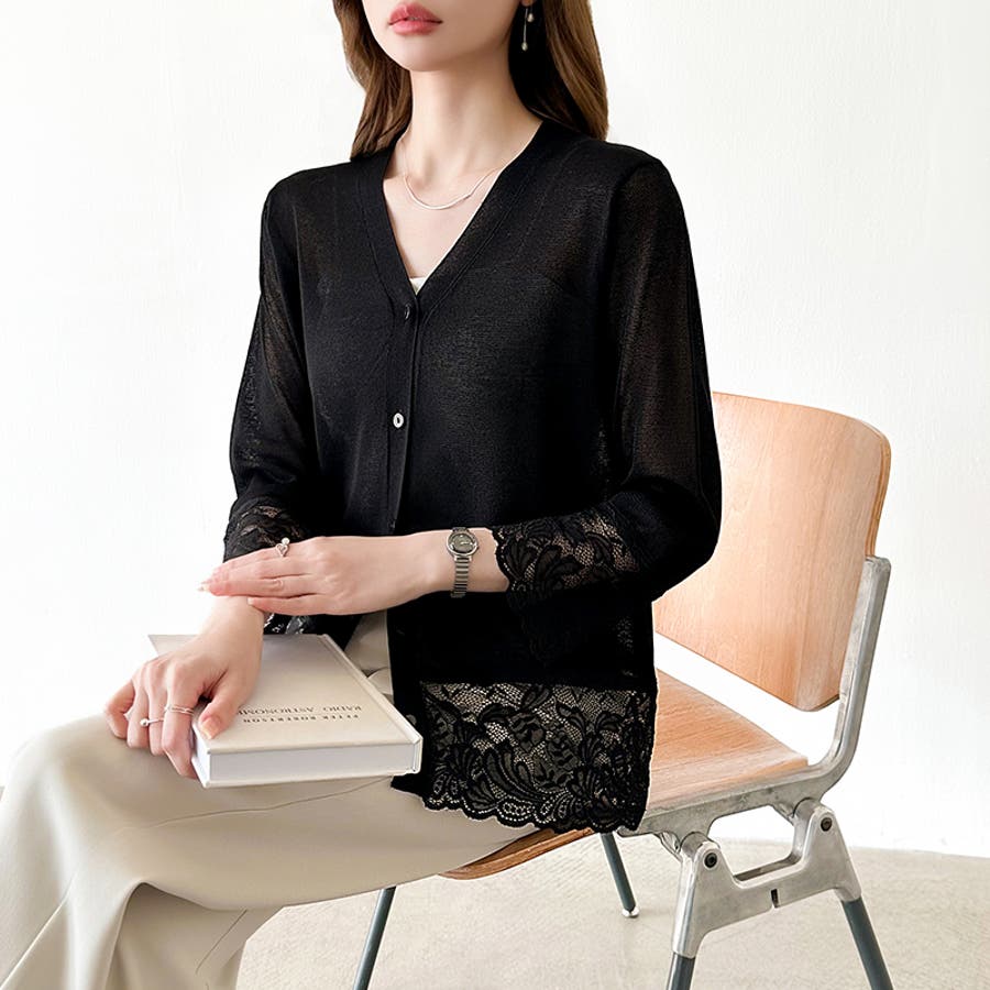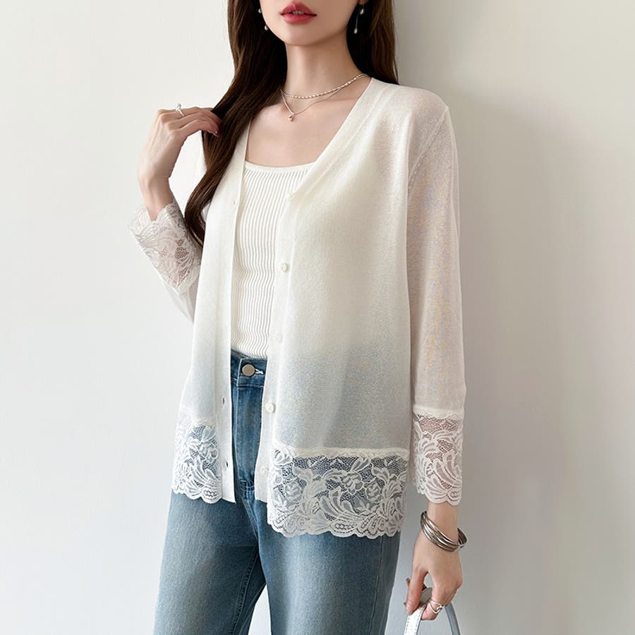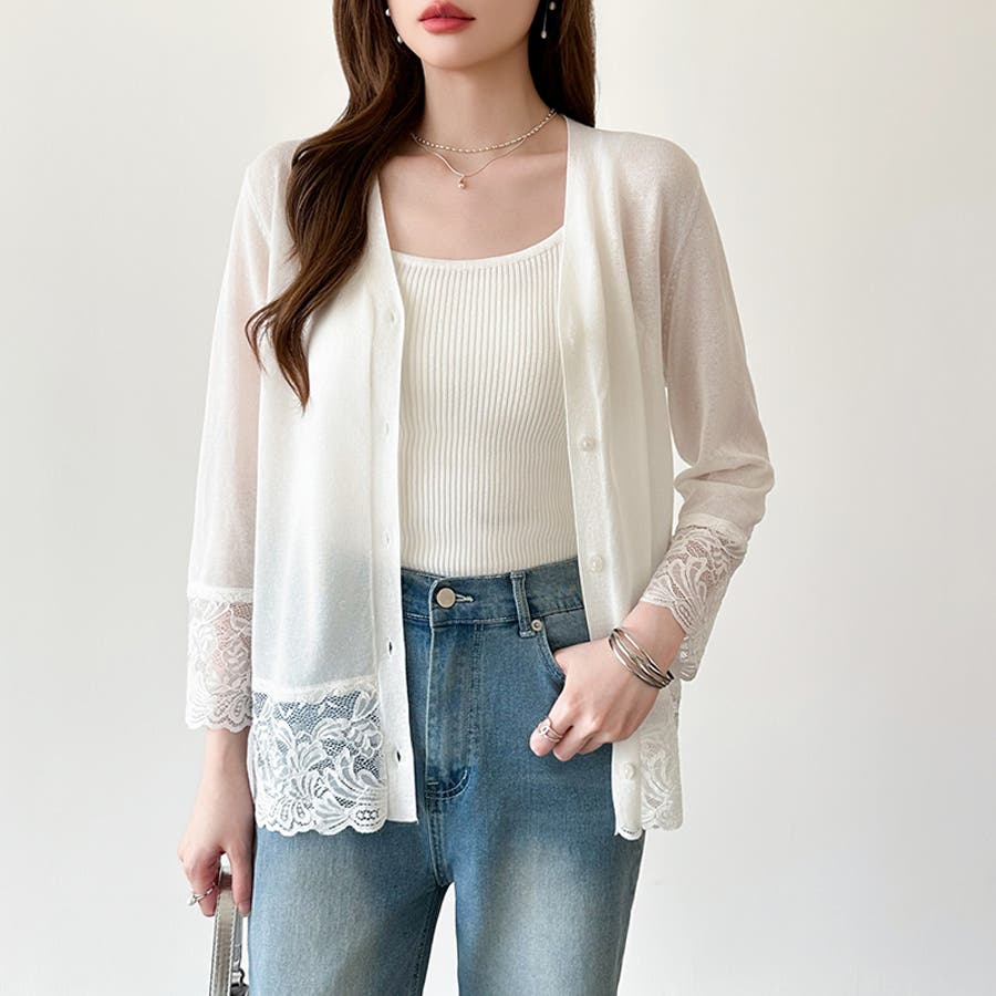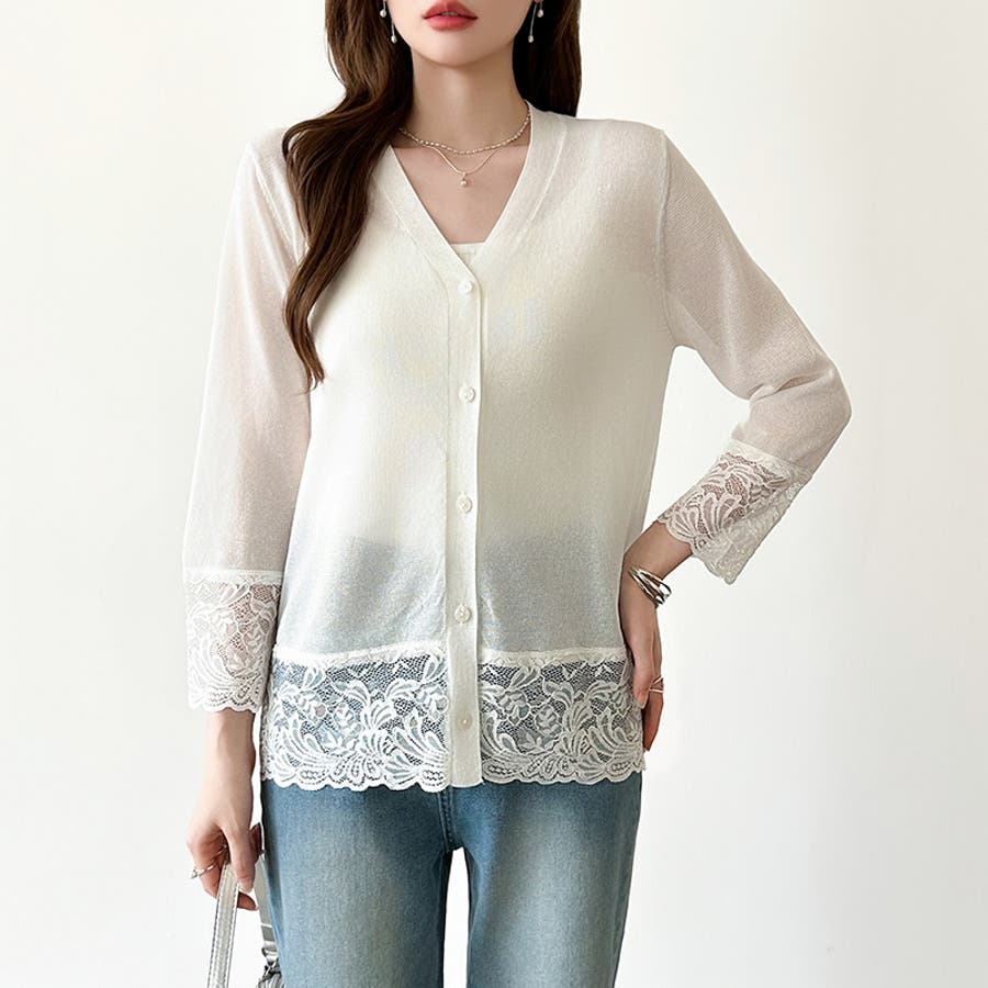 シアーレースの褒められカーディガン レースカーディガン シアーカーディガン