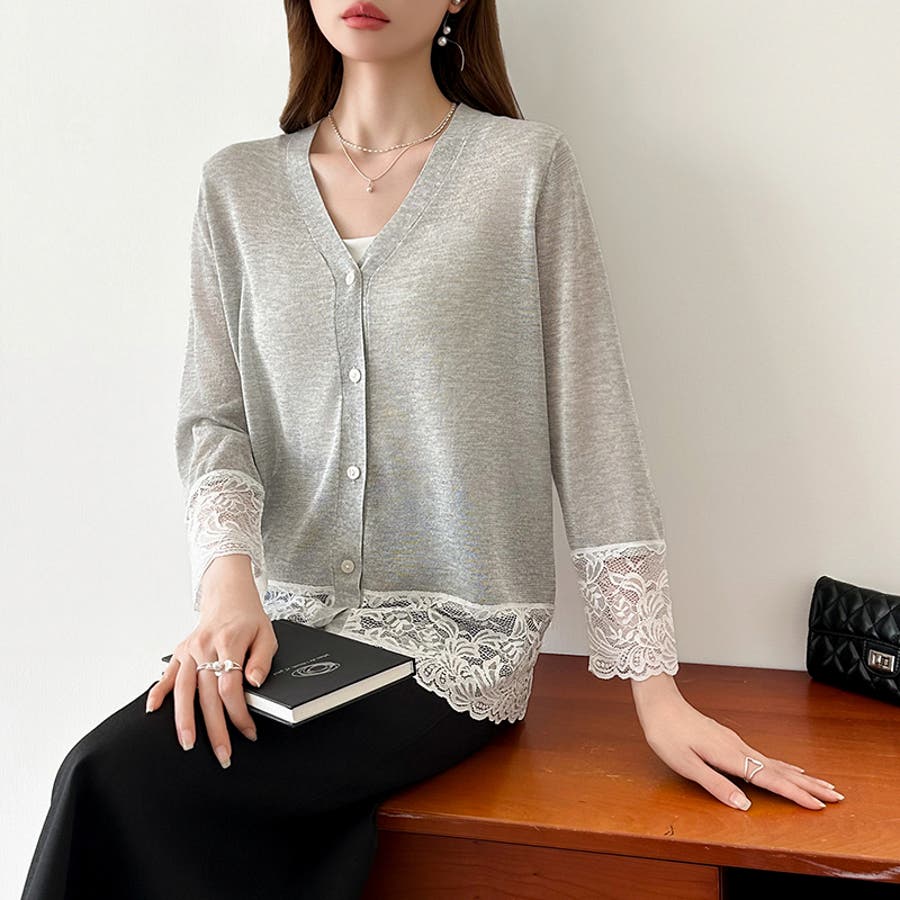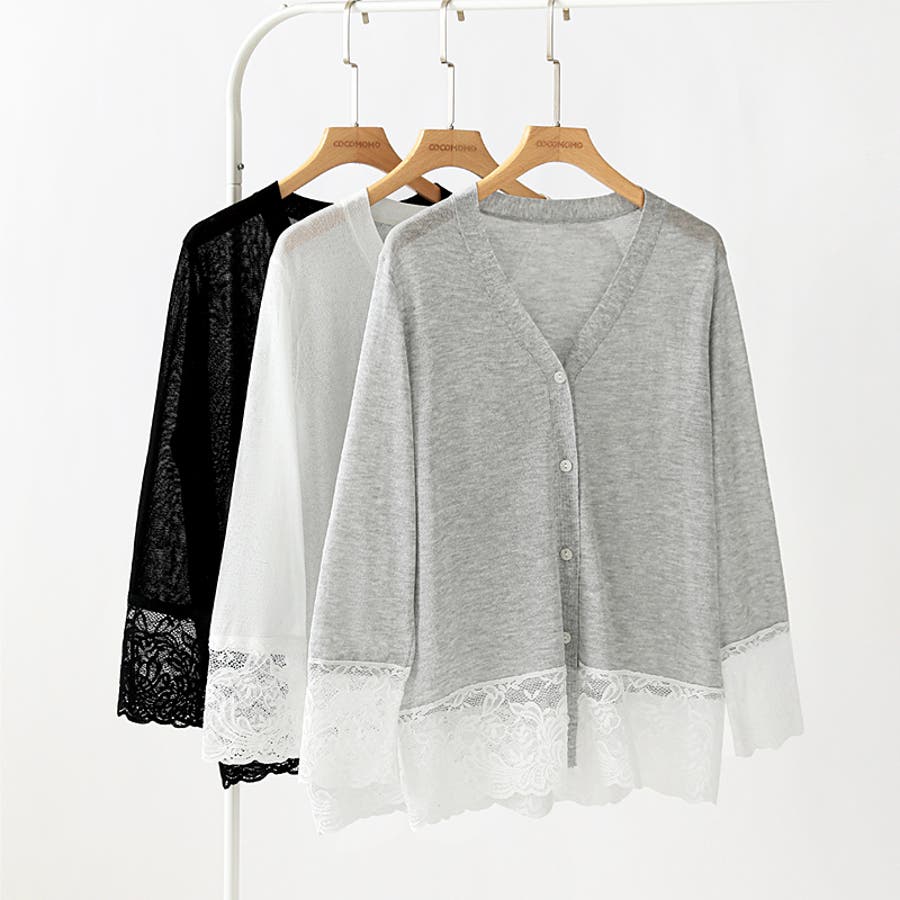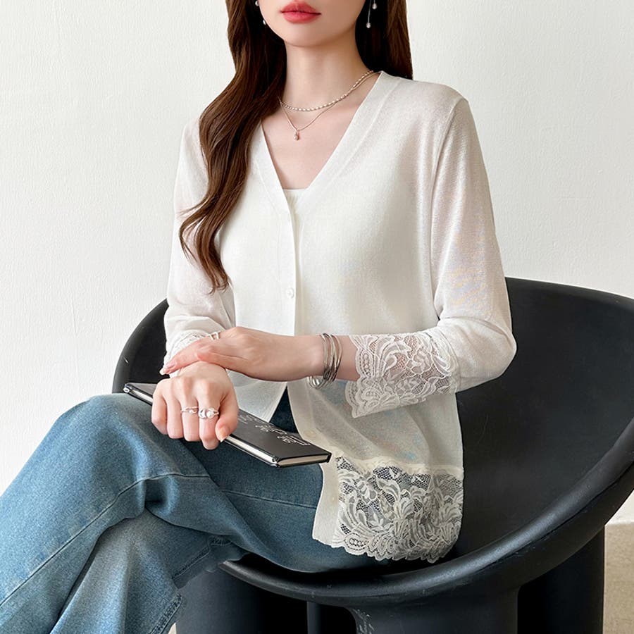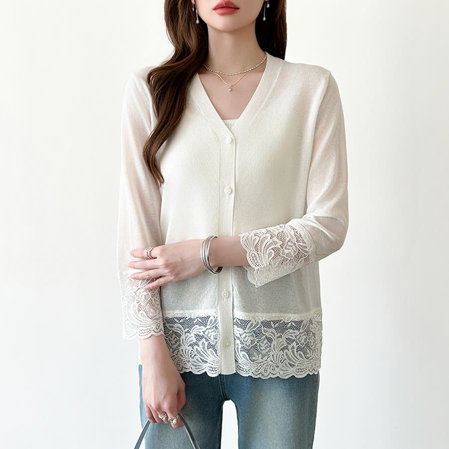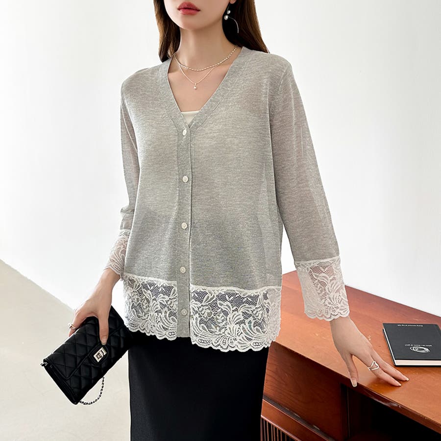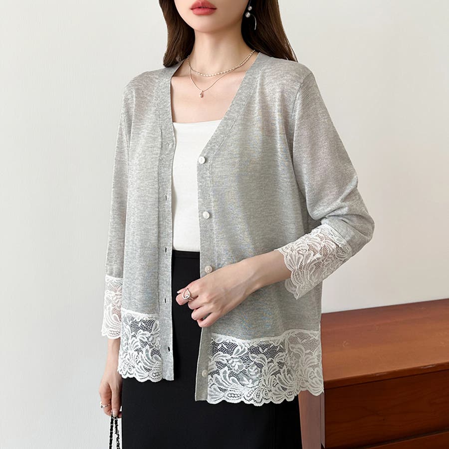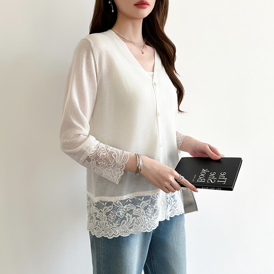 シアーレースの褒められカーディガン レースカーディガン シアーカーディガン