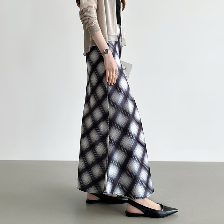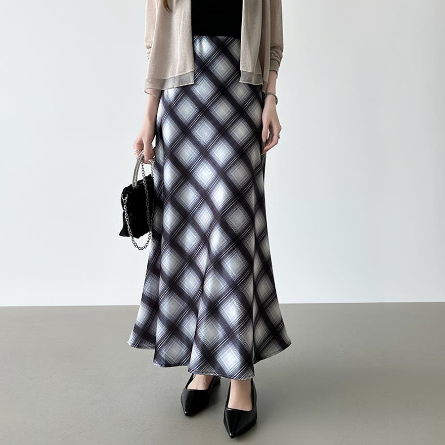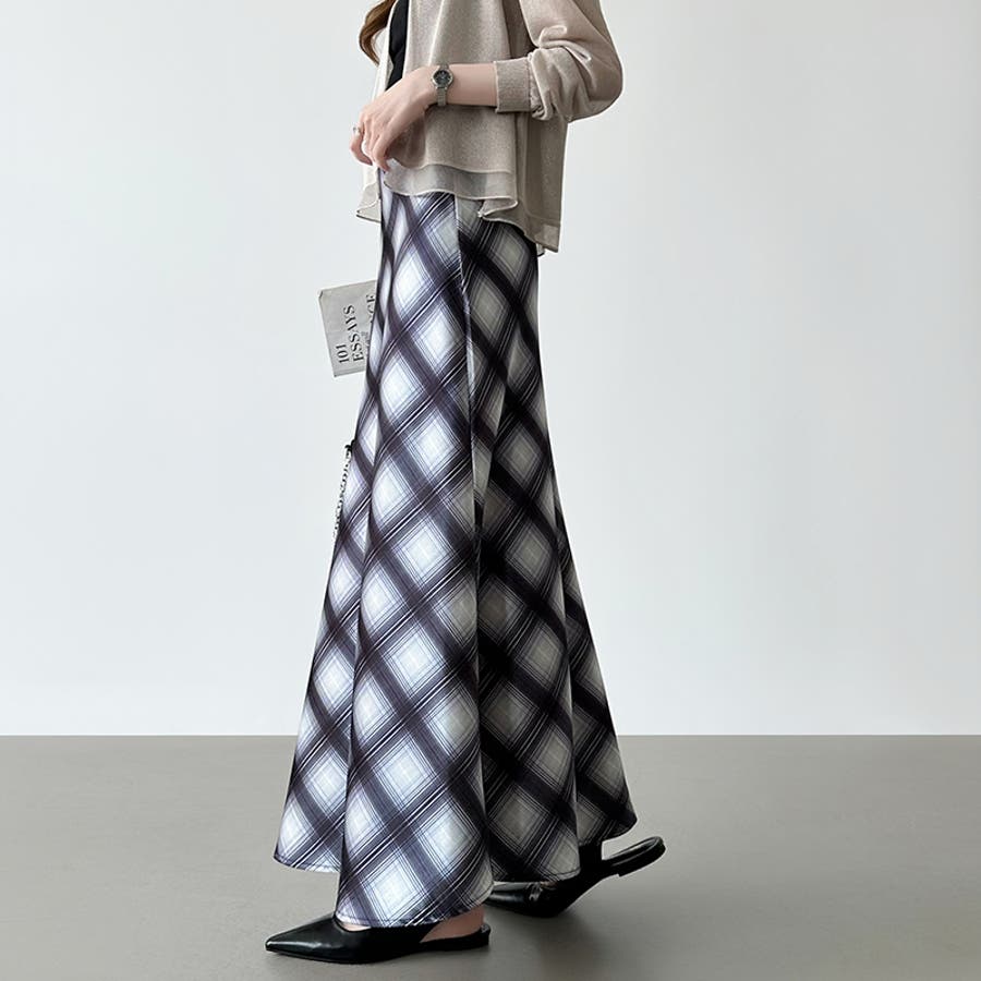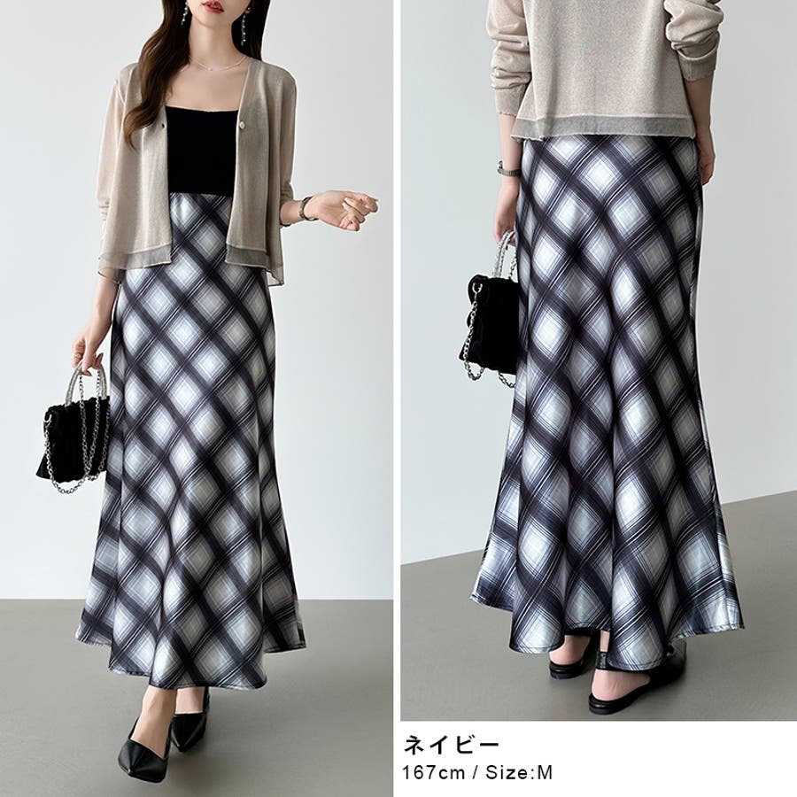 艶めくチェック柄マーメイド チェックスカート マーメイドスカート
