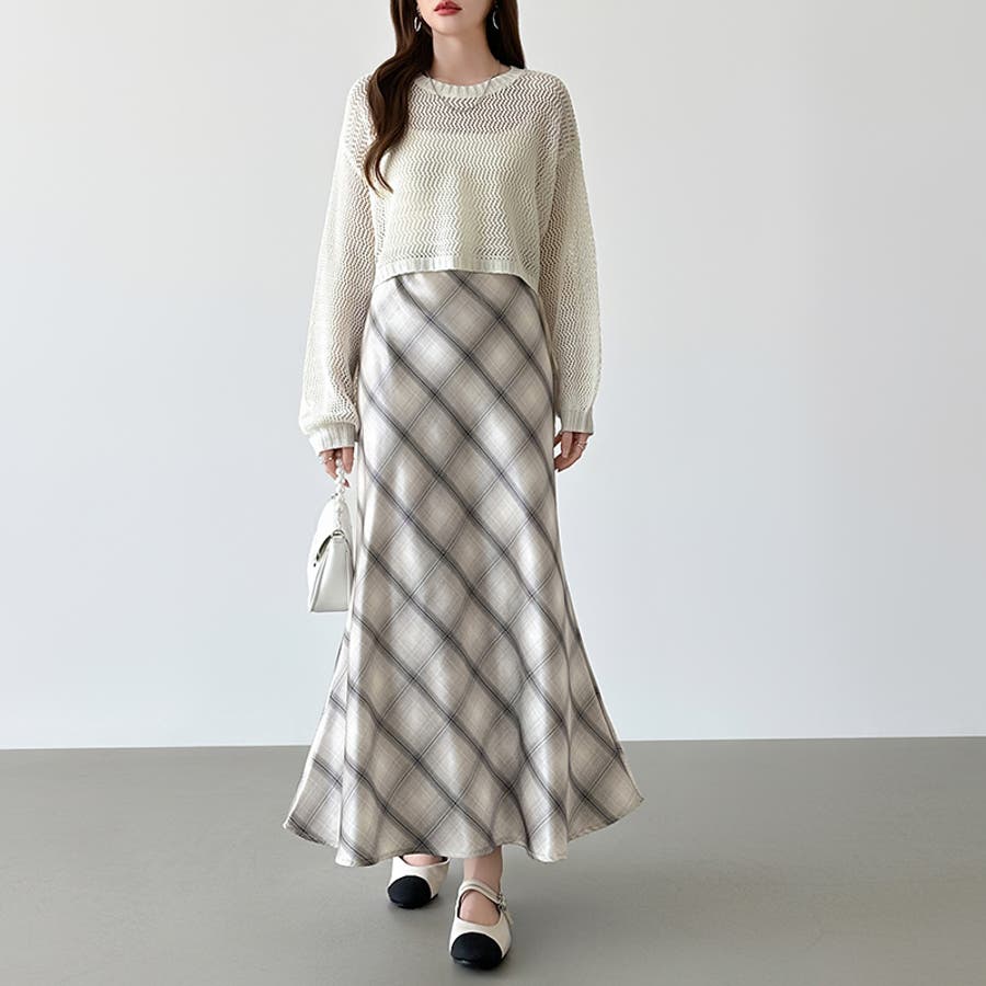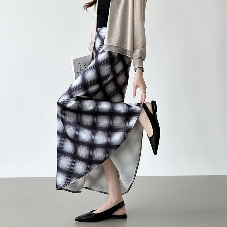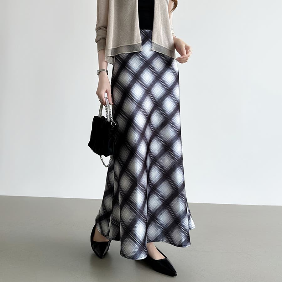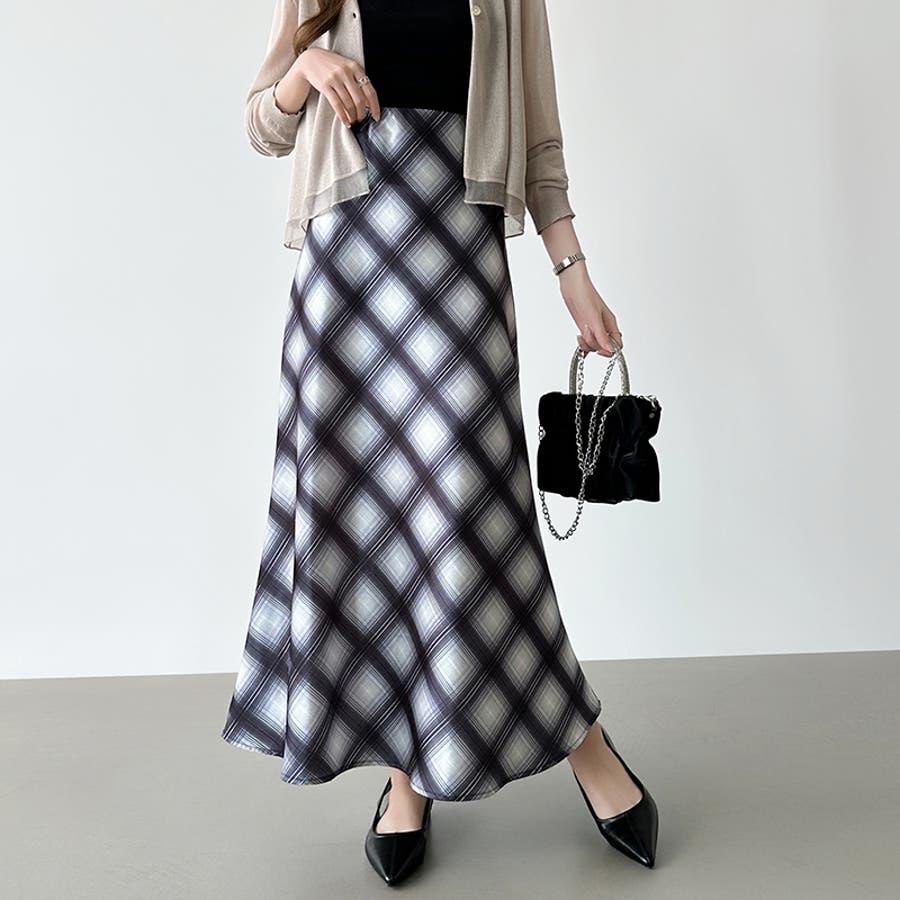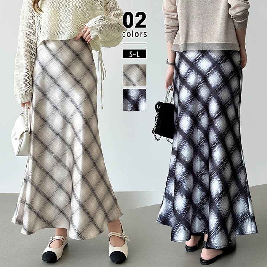 艶めくチェック柄マーメイド チェックスカート マーメイドスカート