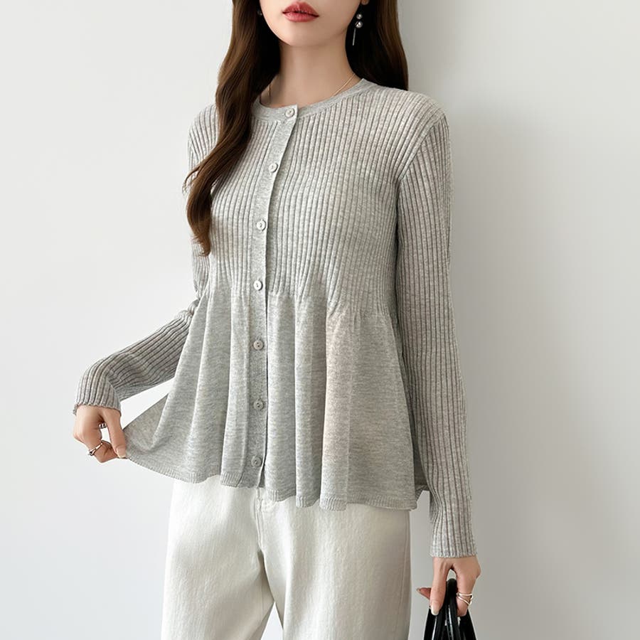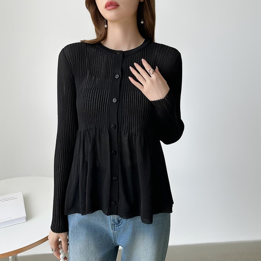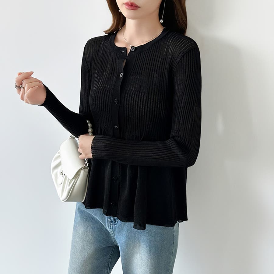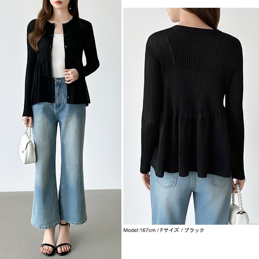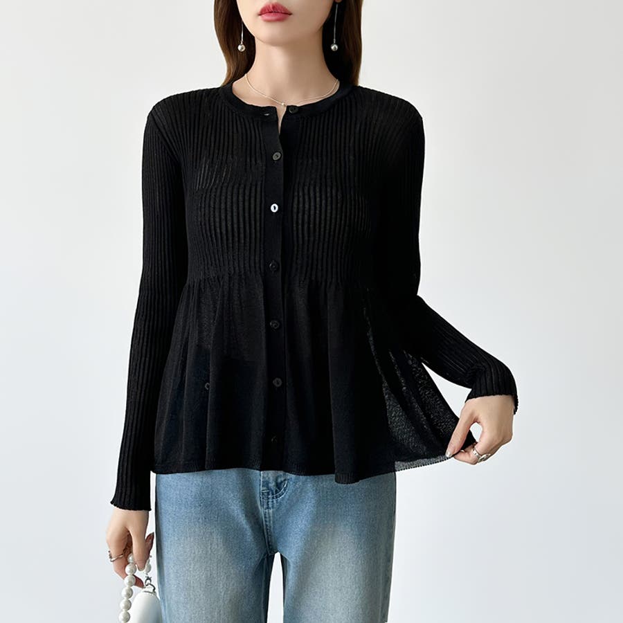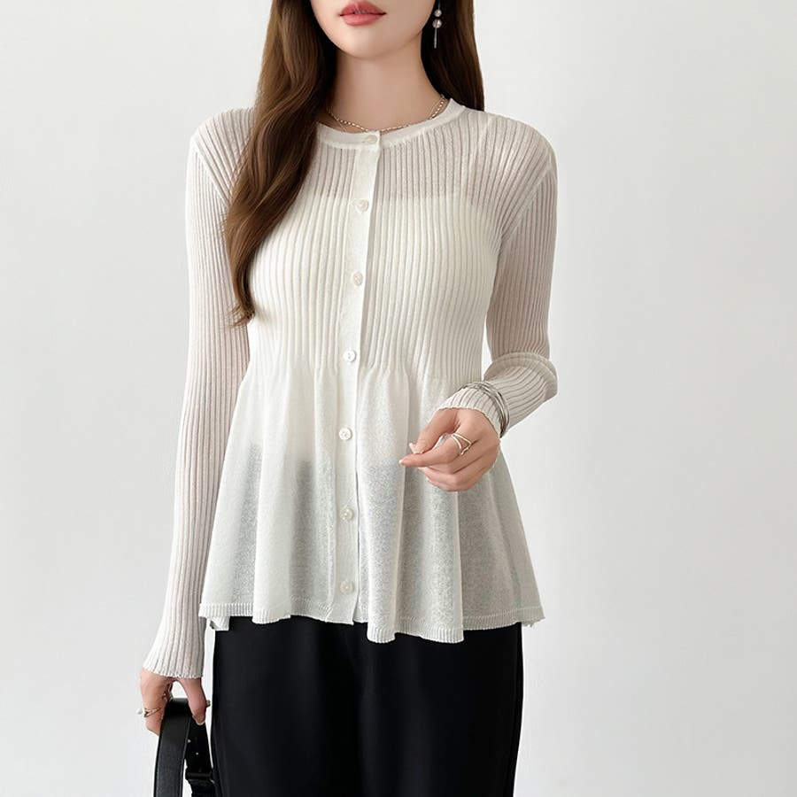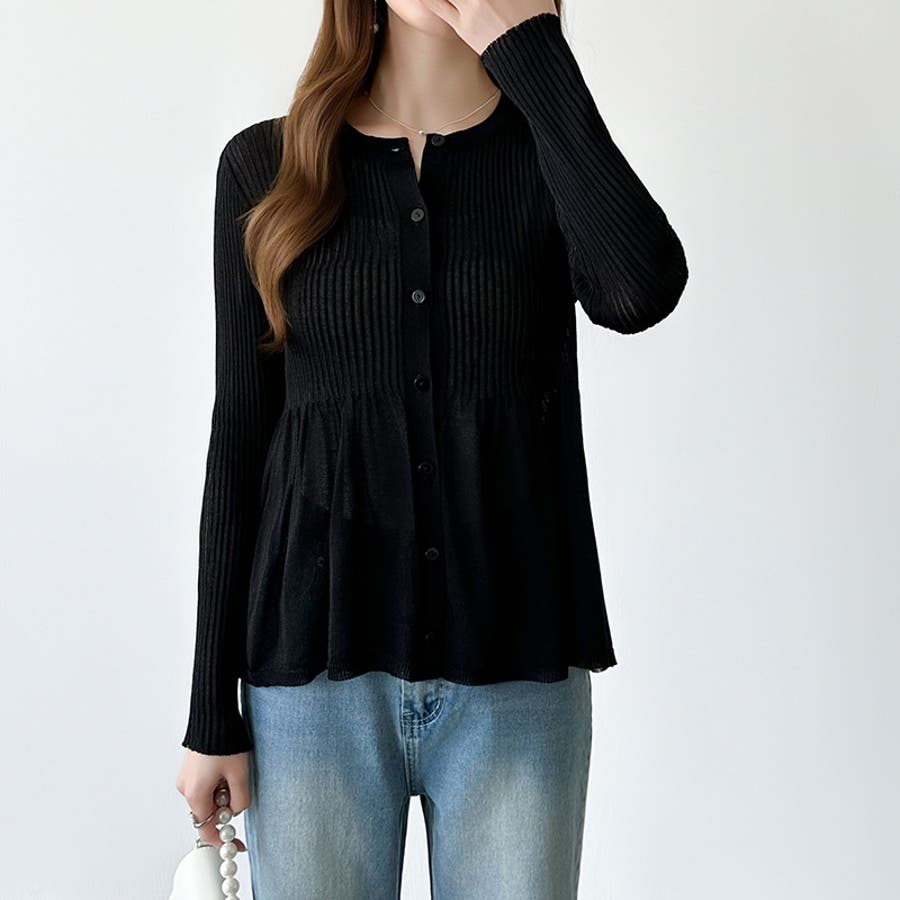 リブ×ペプラムのシアーカーディガン ペプラムカーディガン カーディガン
