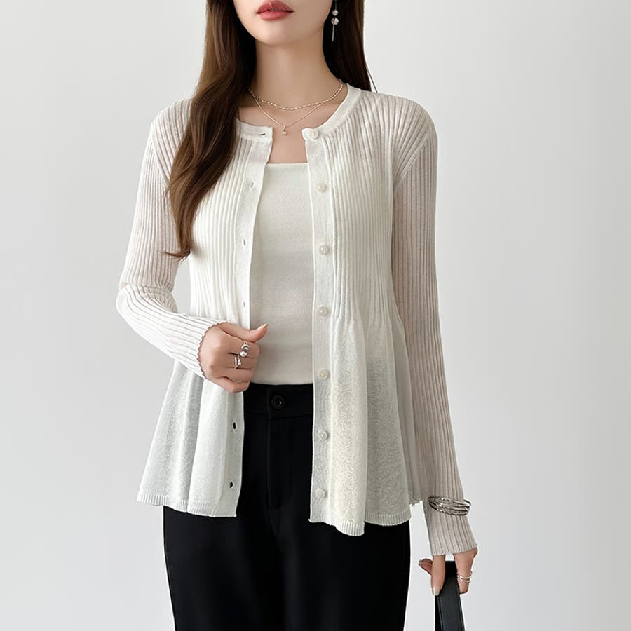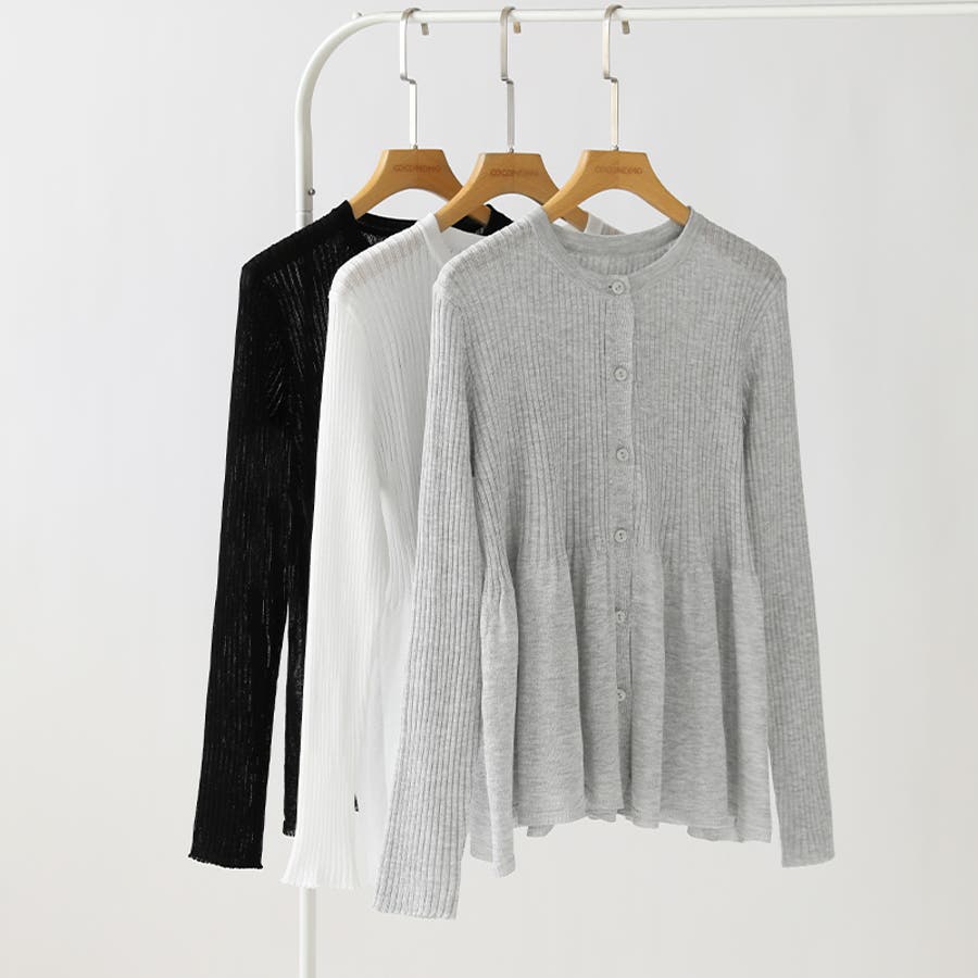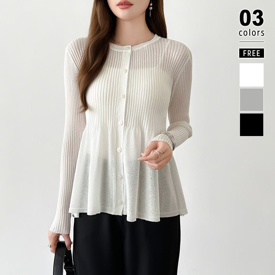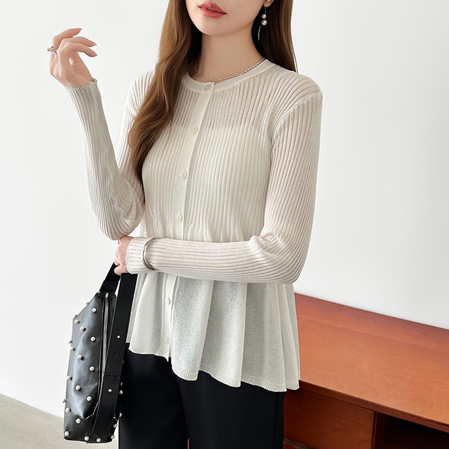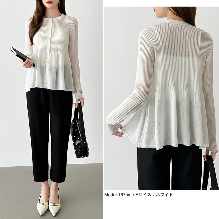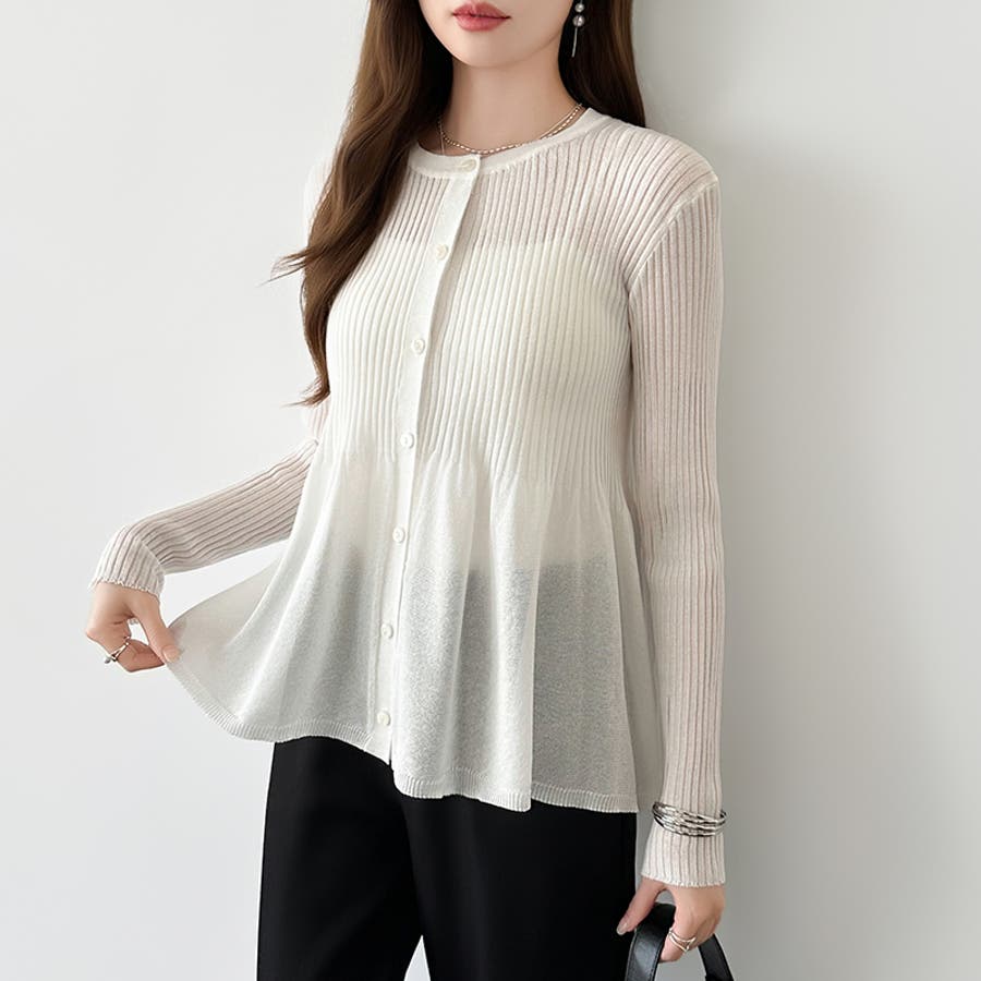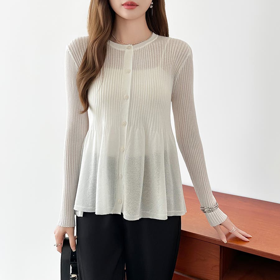 リブ×ペプラムのシアーカーディガン ペプラムカーディガン カーディガン