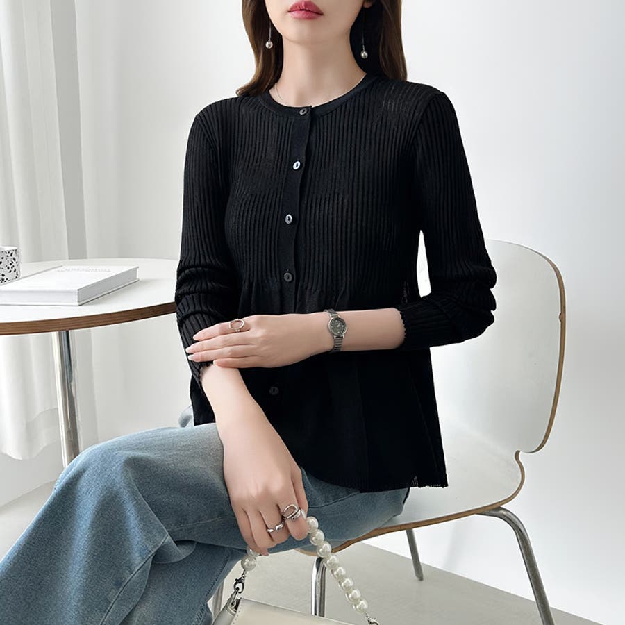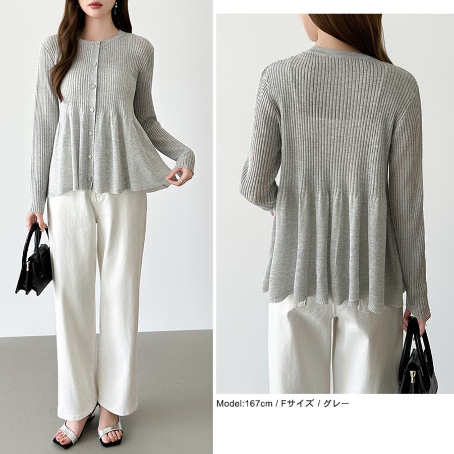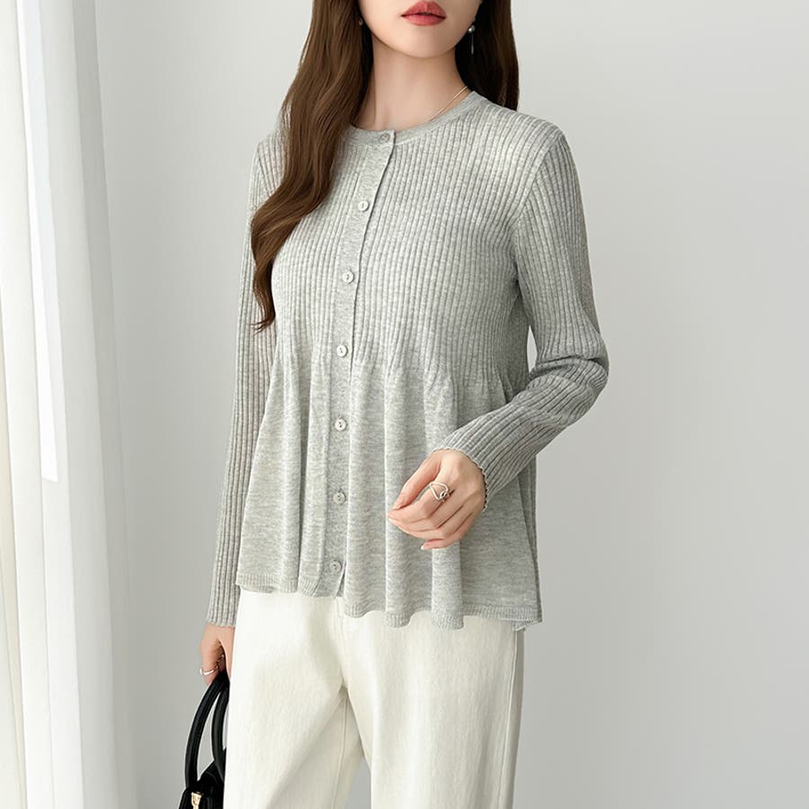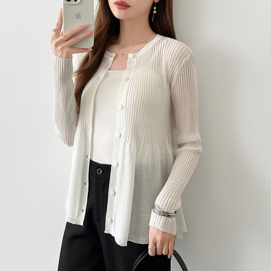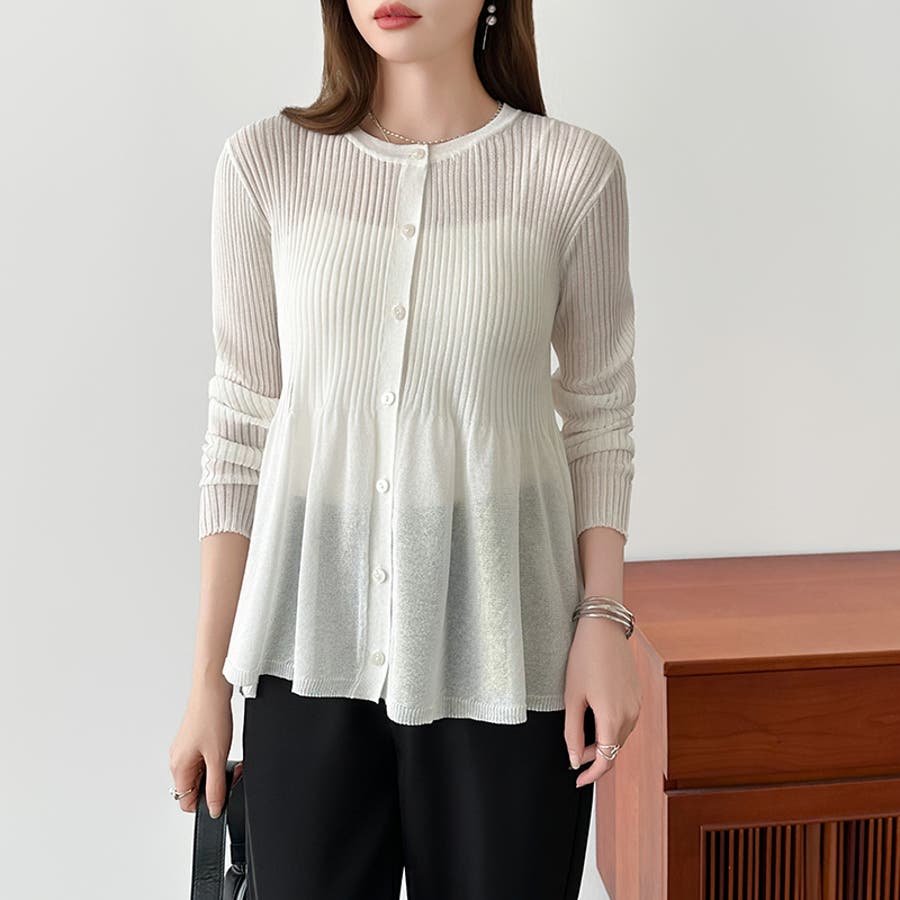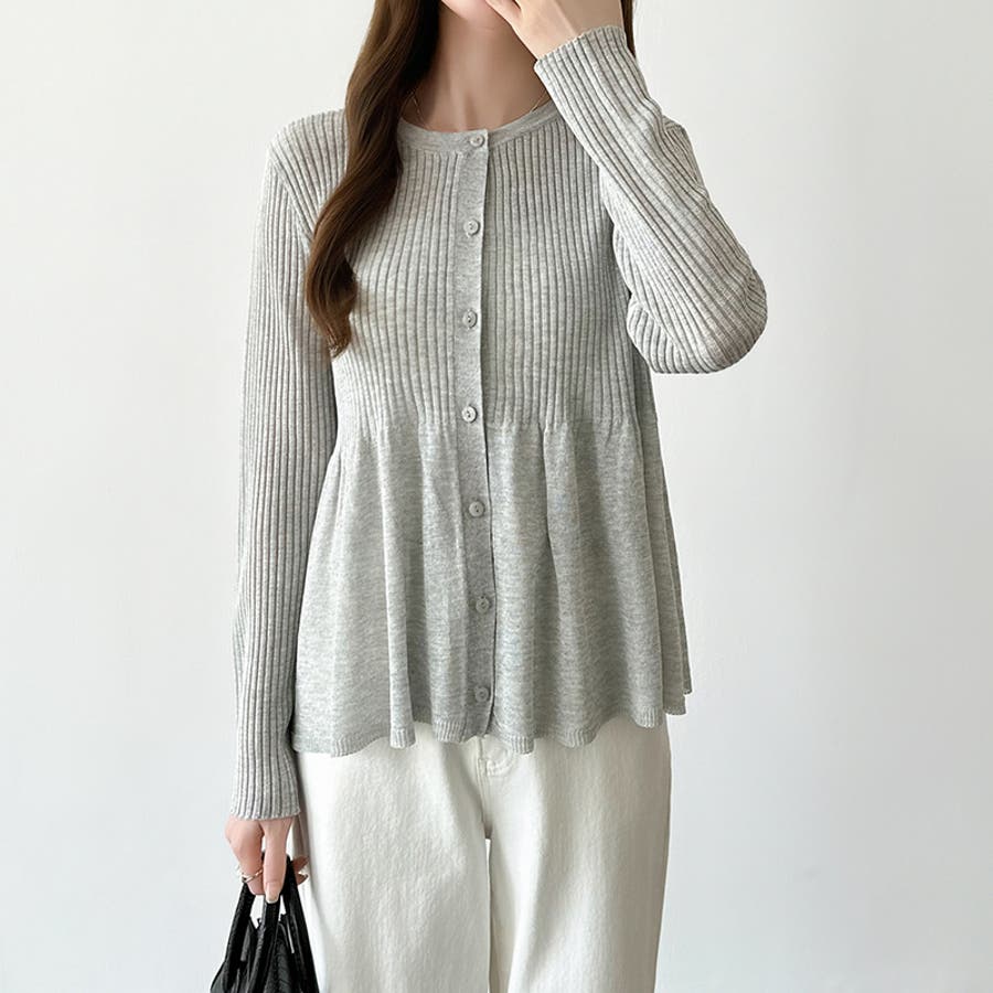 リブ×ペプラムのシアーカーディガン ペプラムカーディガン カーディガン