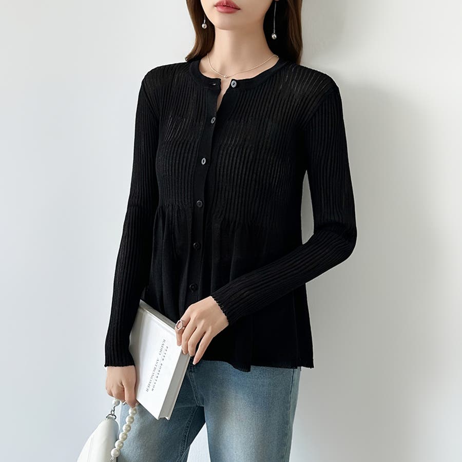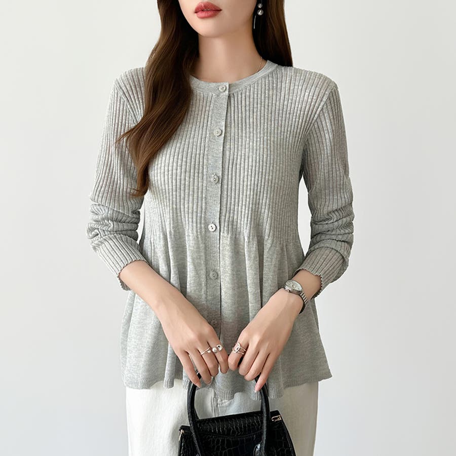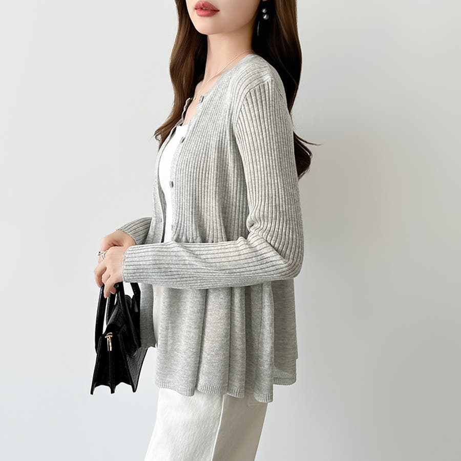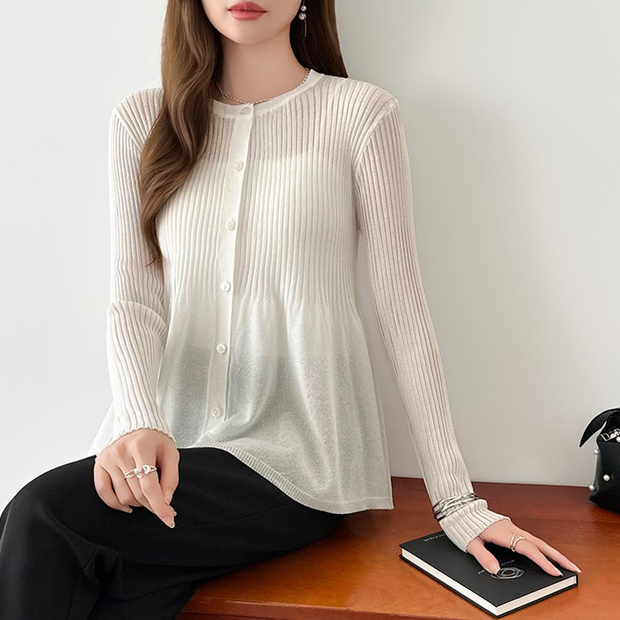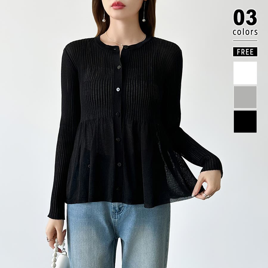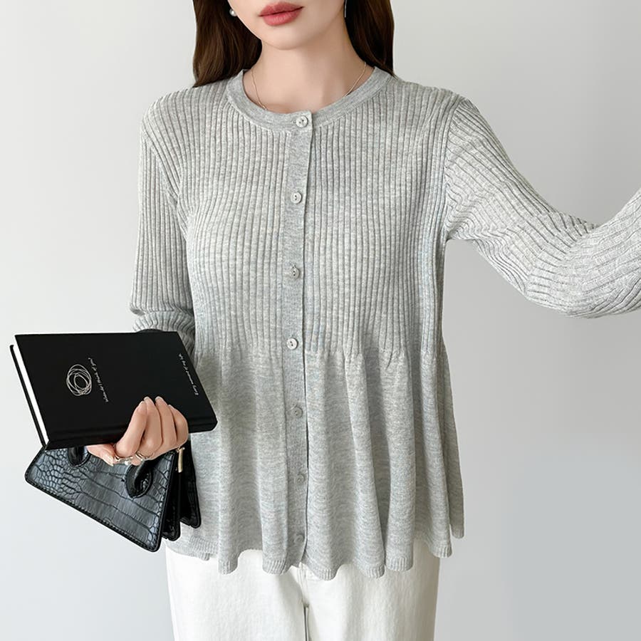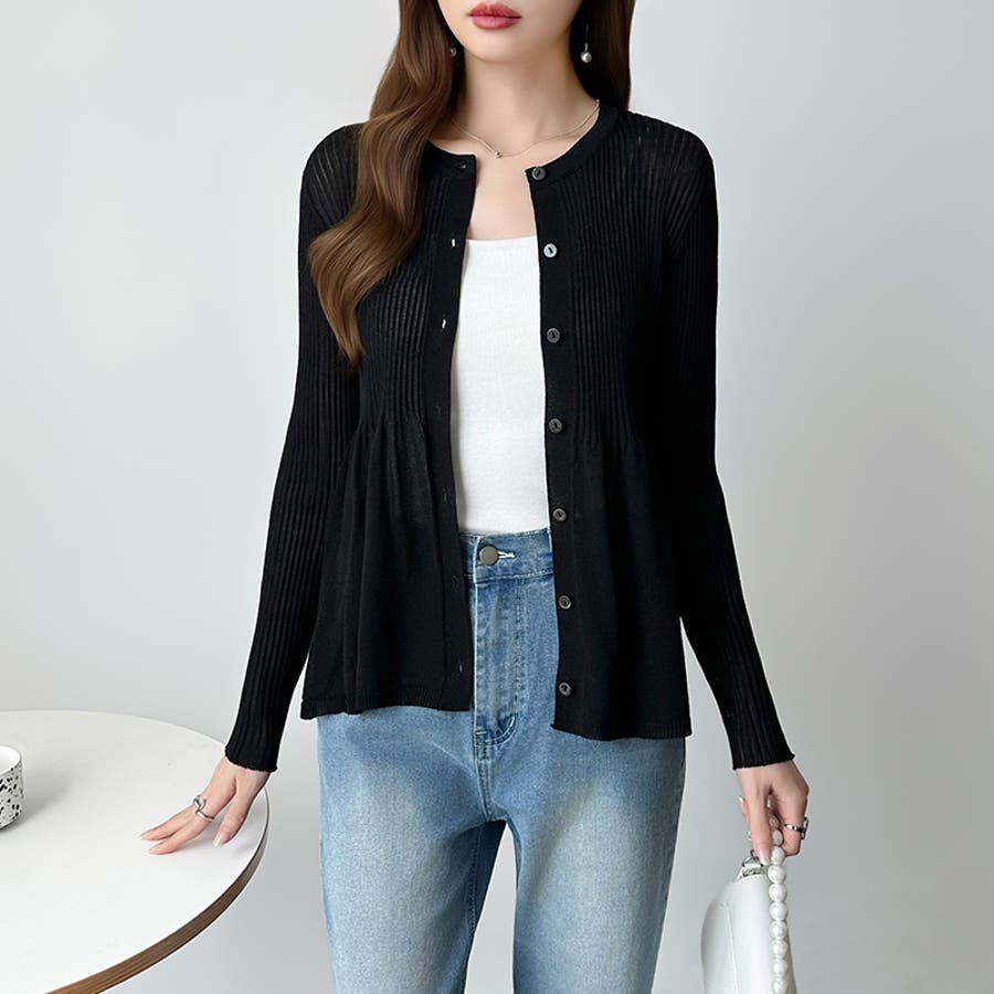 リブ×ペプラムのシアーカーディガン ペプラムカーディガン カーディガン