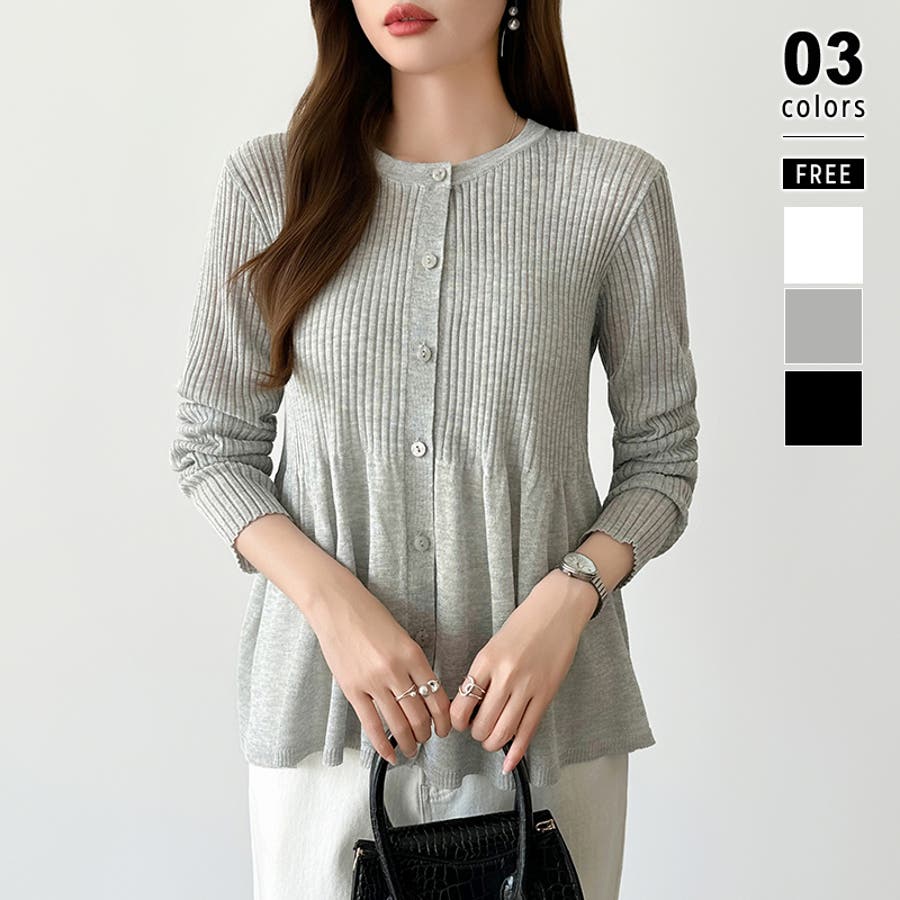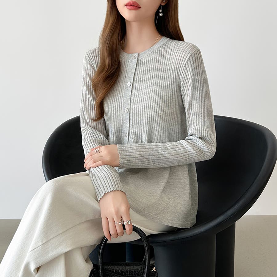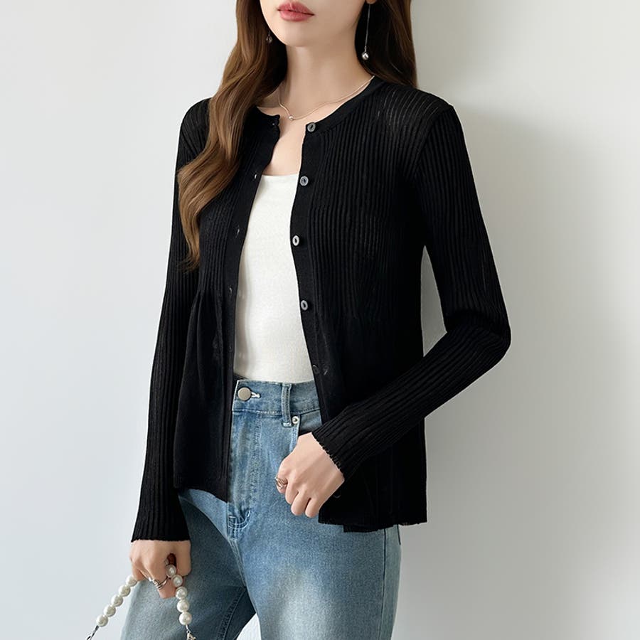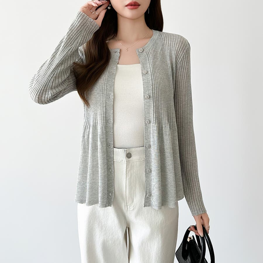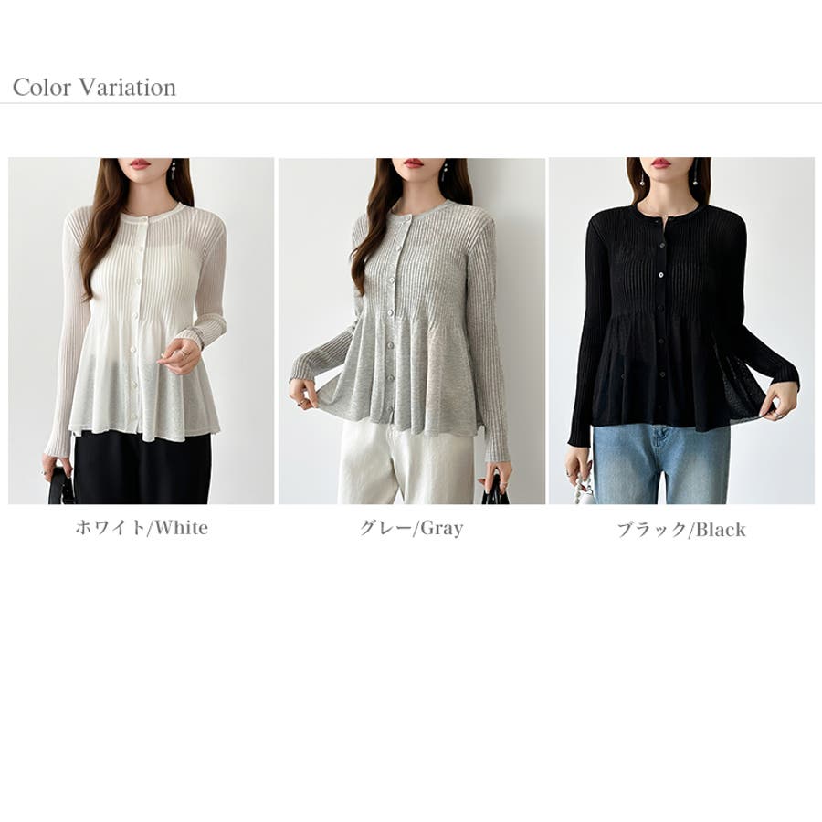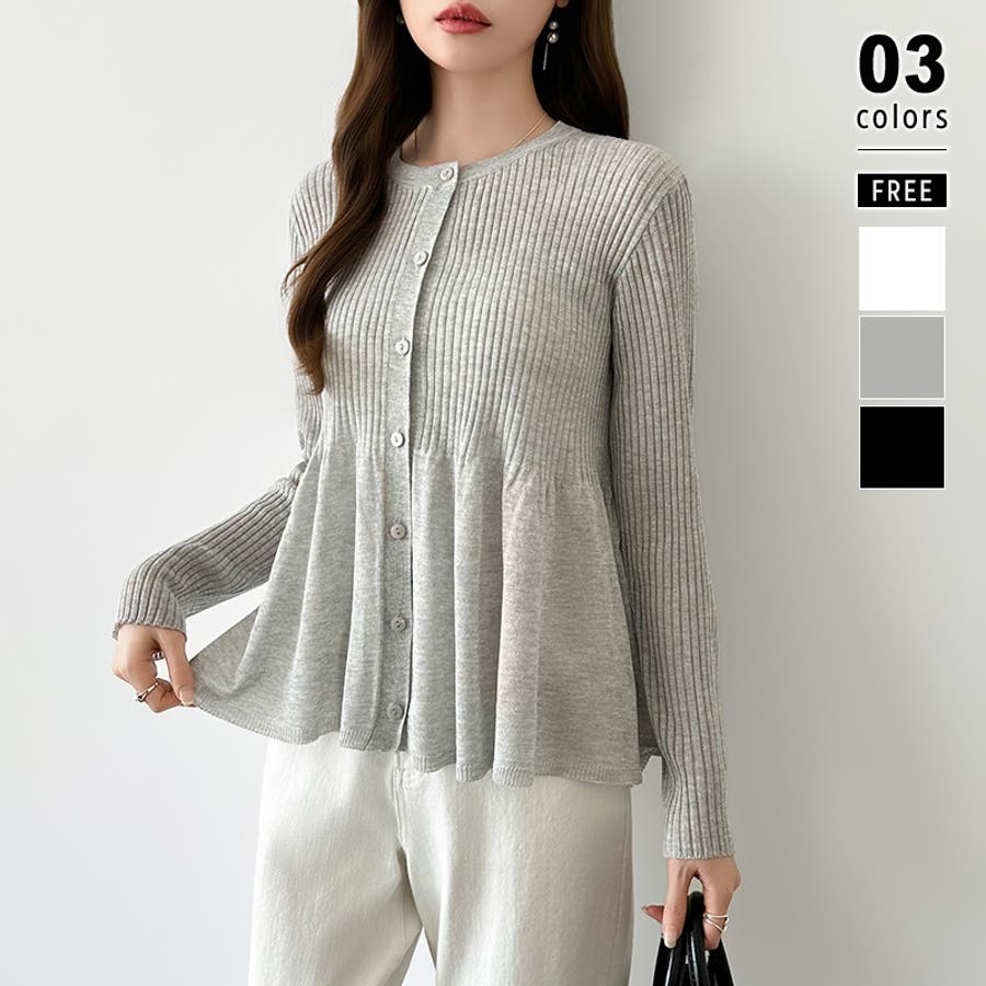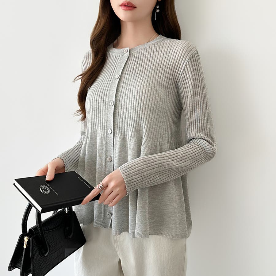 リブ×ペプラムのシアーカーディガン ペプラムカーディガン カーディガン