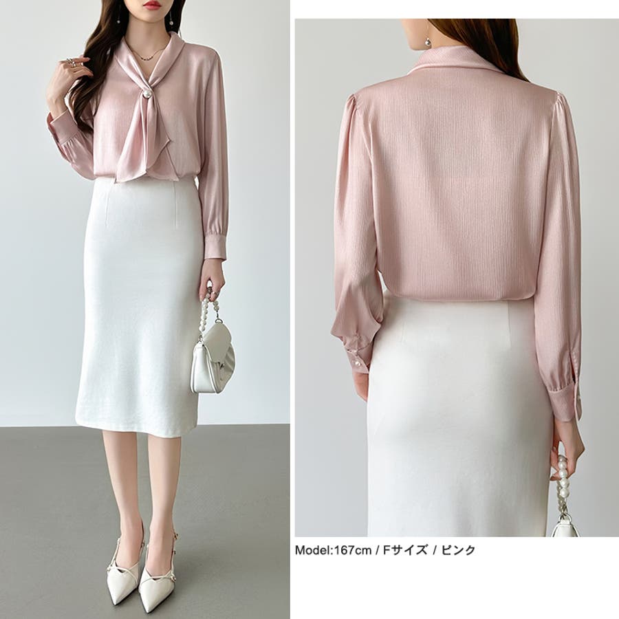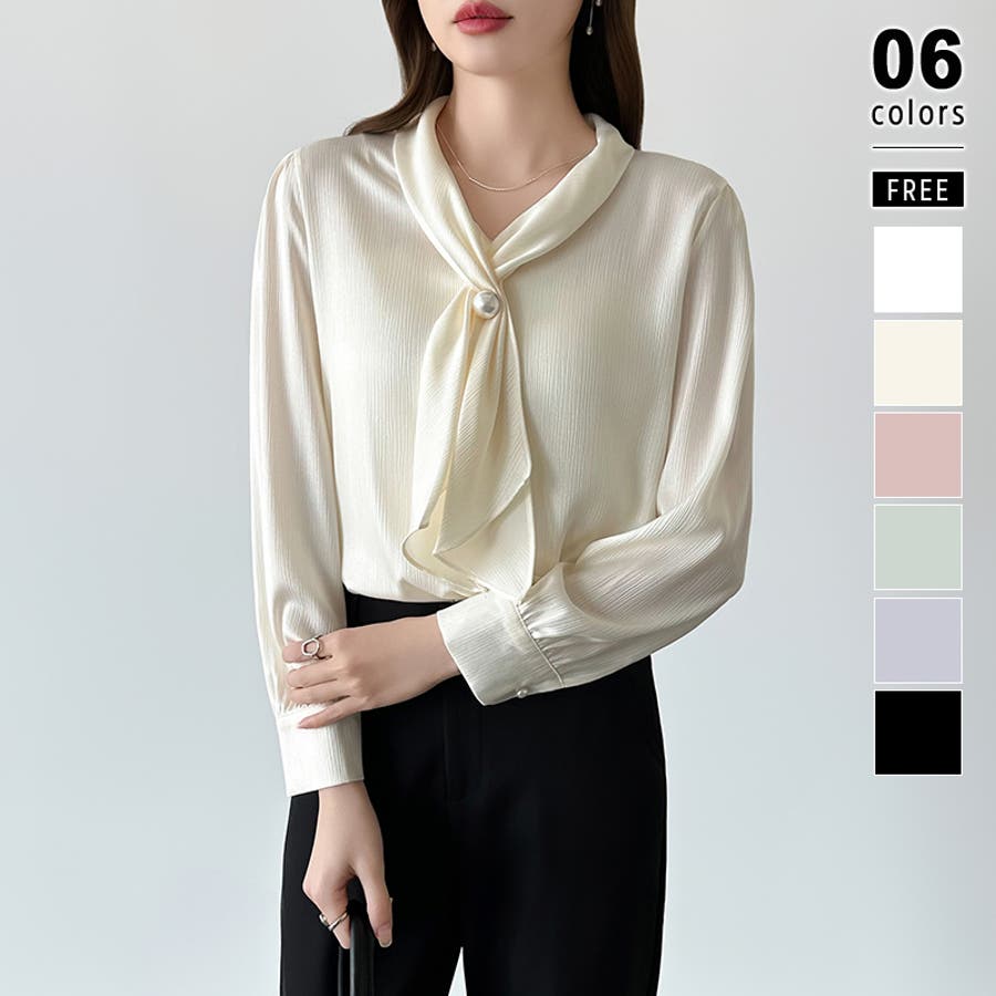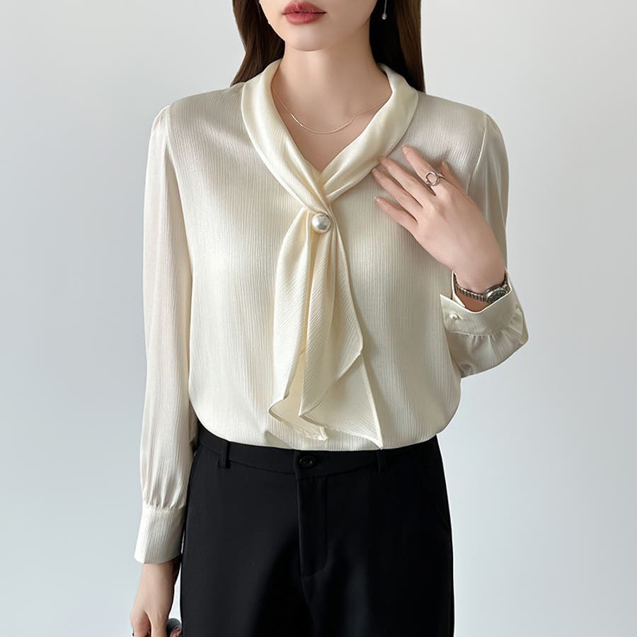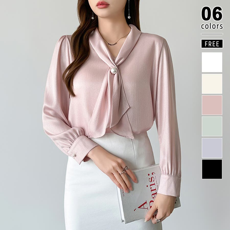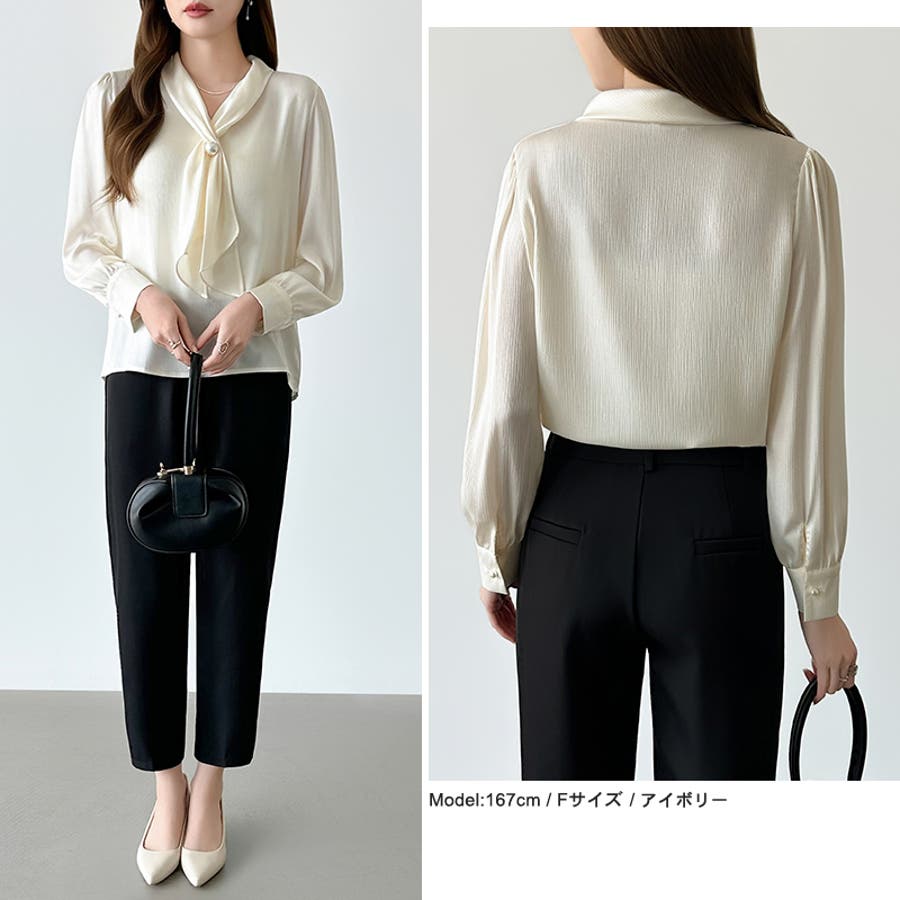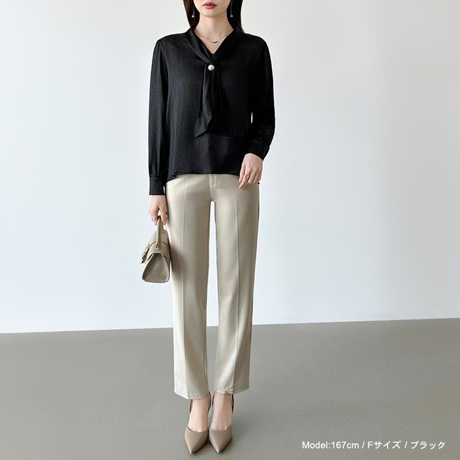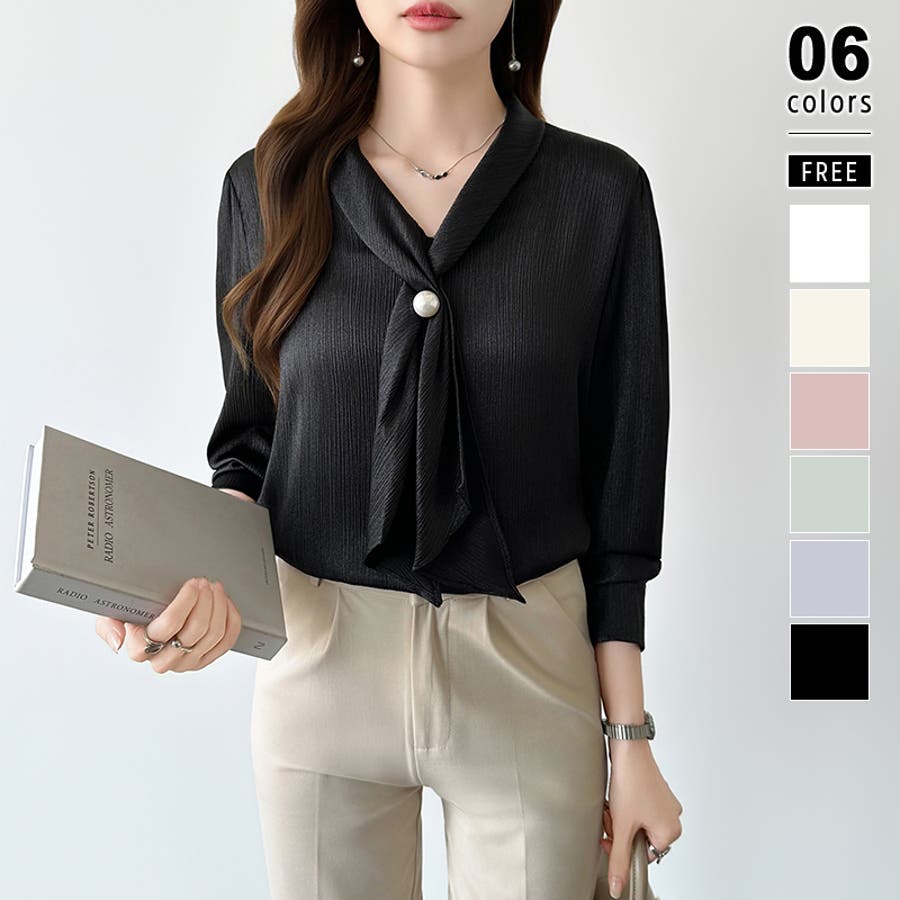 【アクセいらずで華やぐ】パール付きブラウス ボウタイブラウス ブラウス