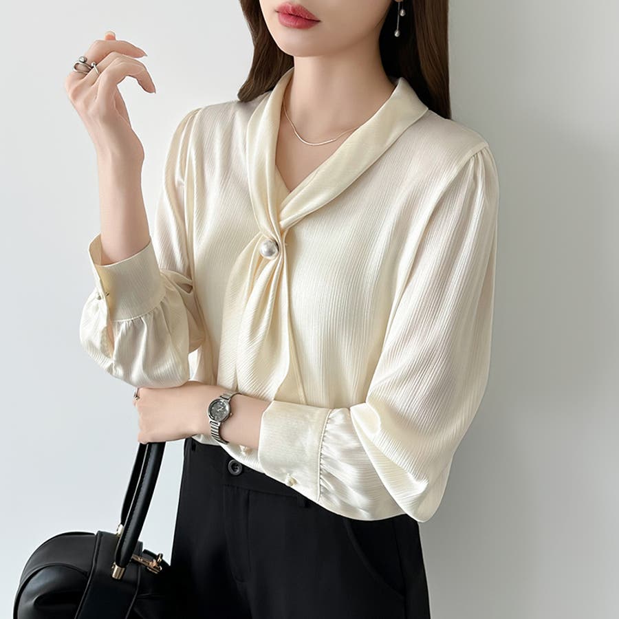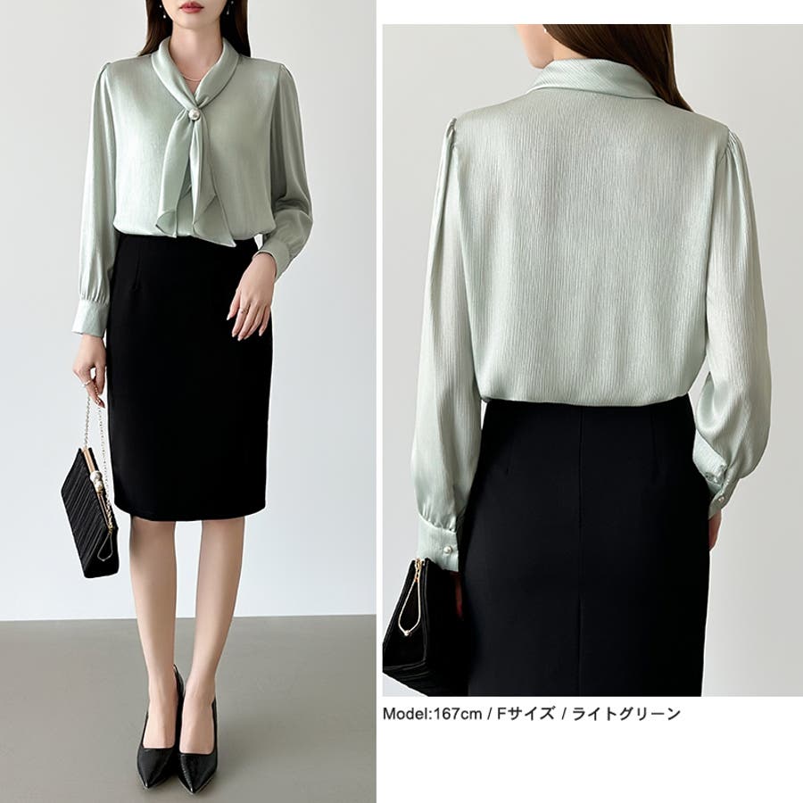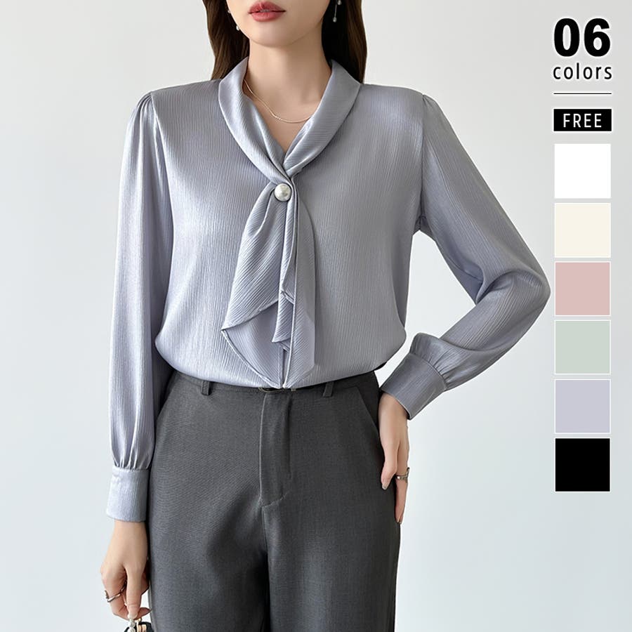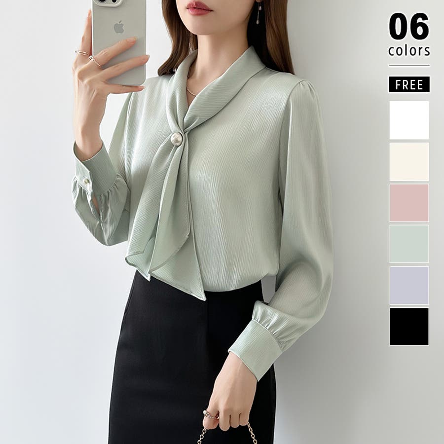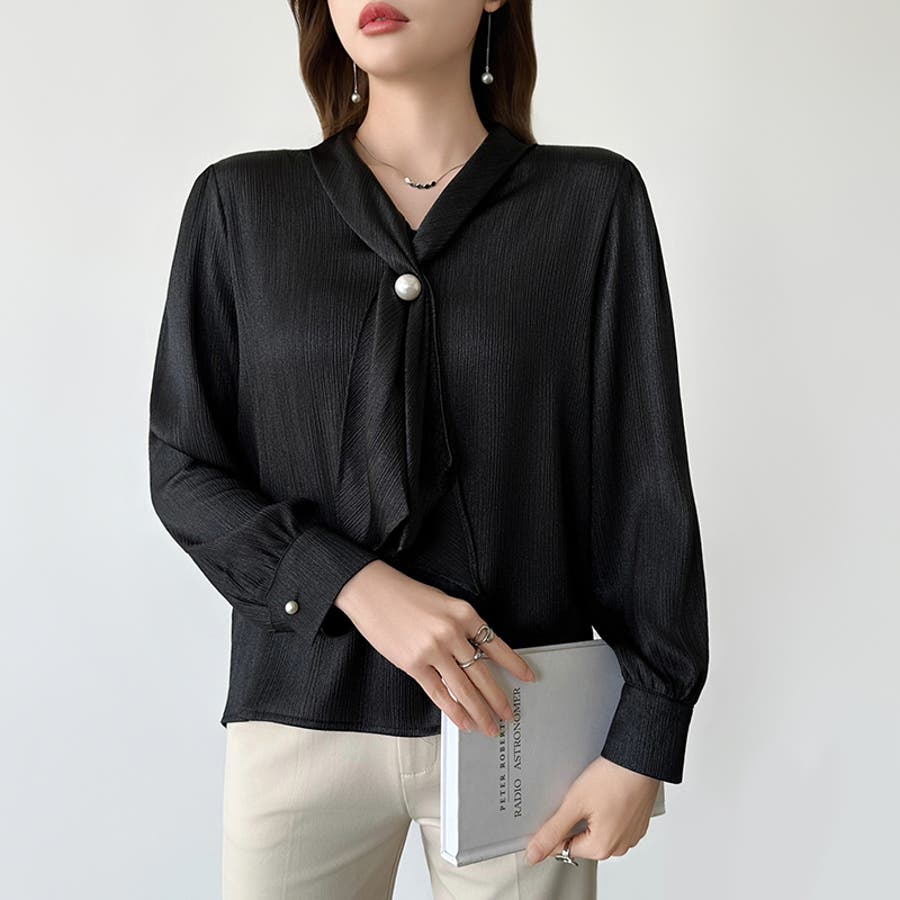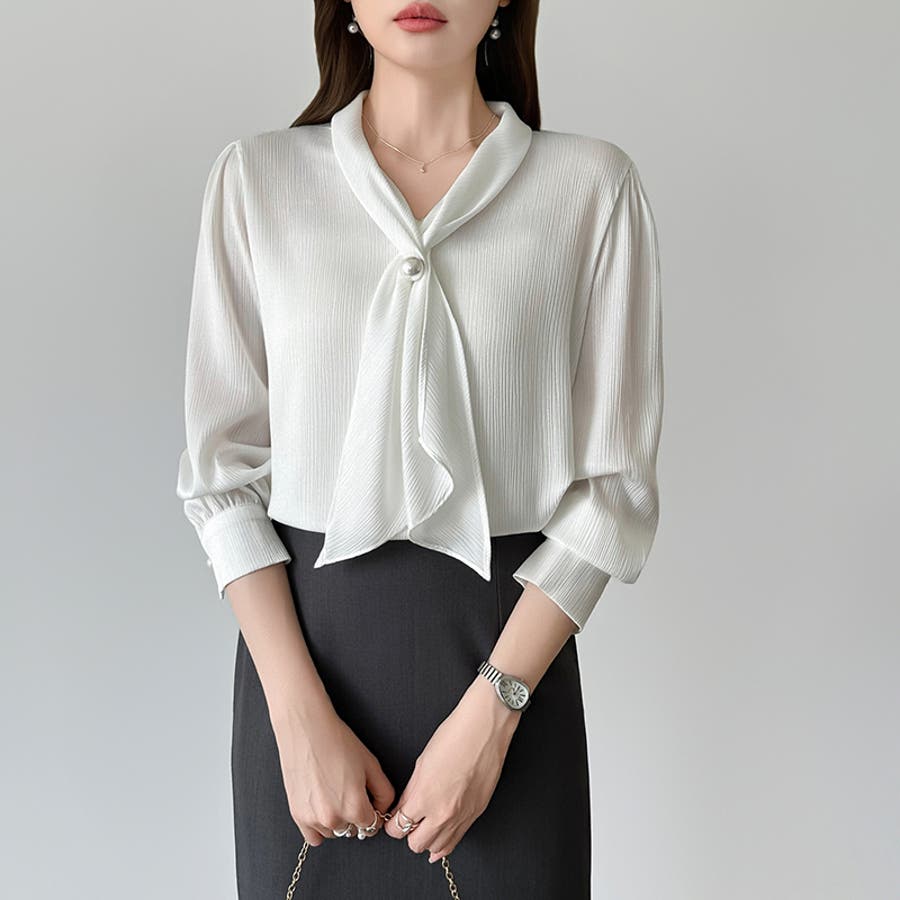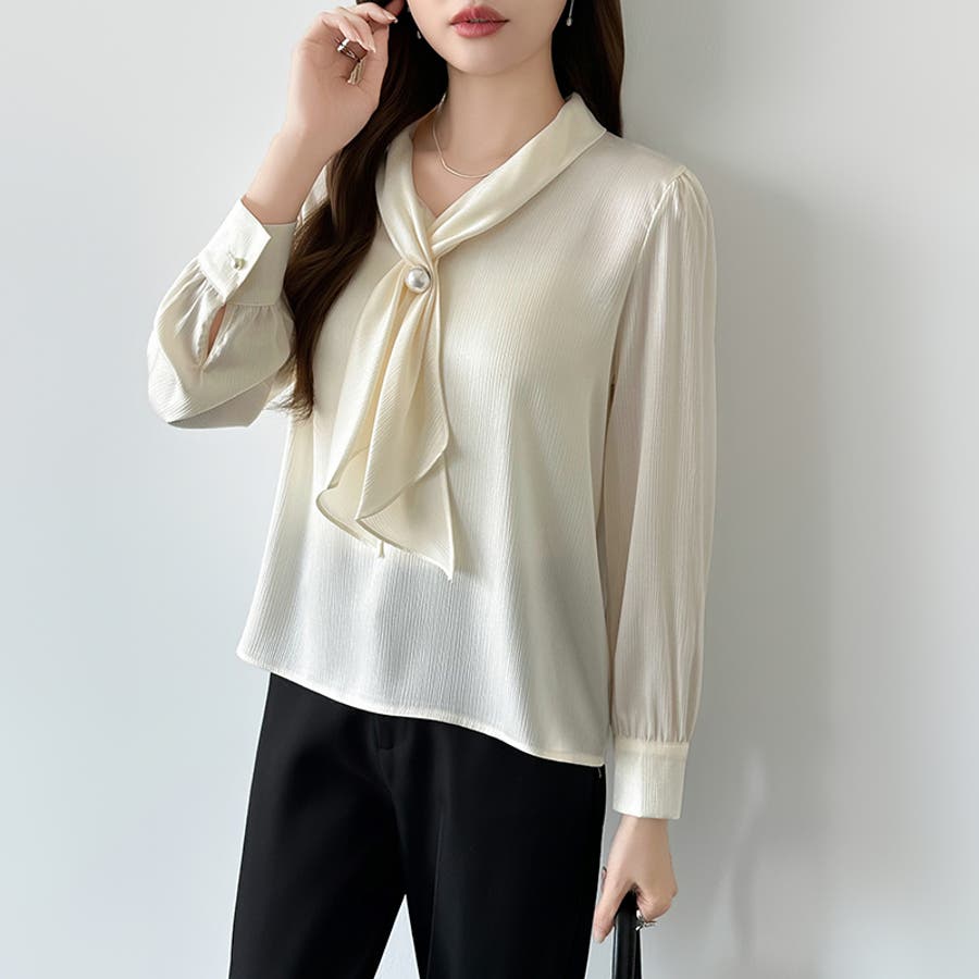 【アクセいらずで華やぐ】パール付きブラウス ボウタイブラウス ブラウス