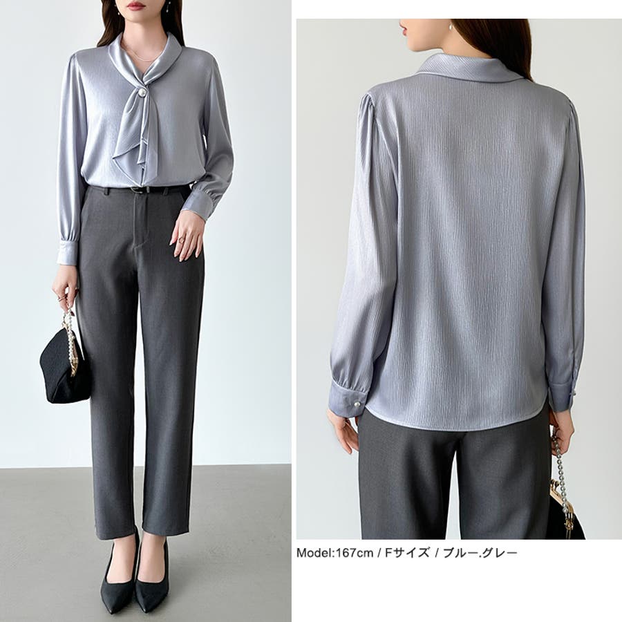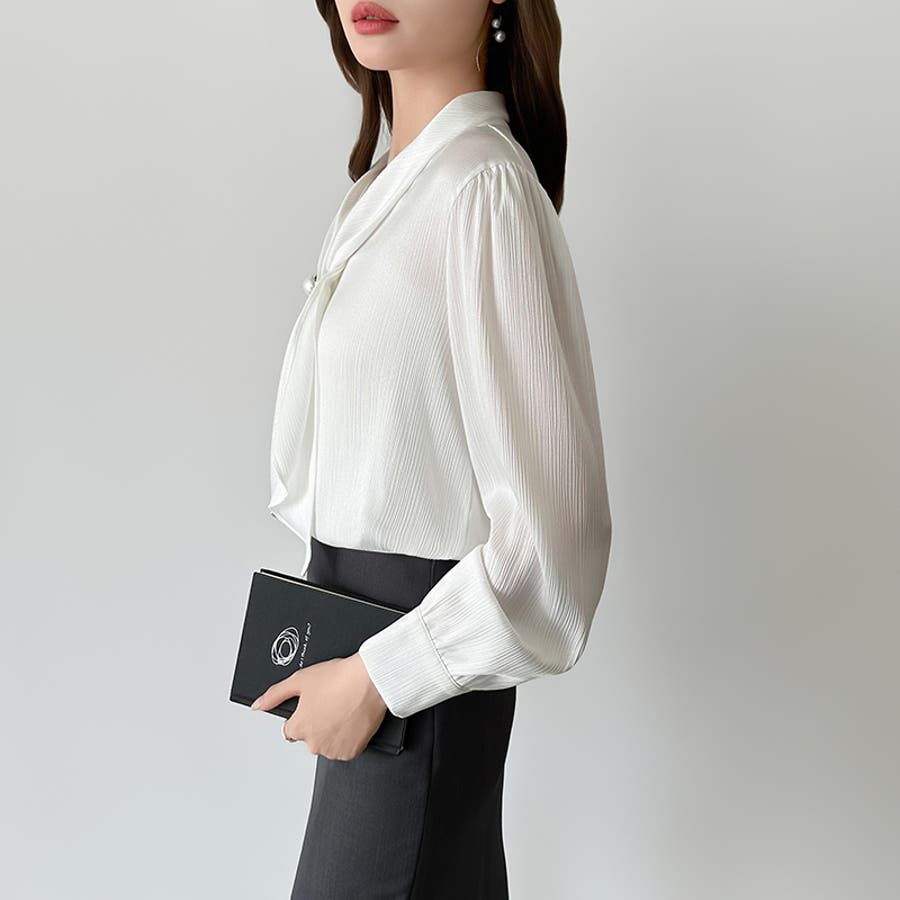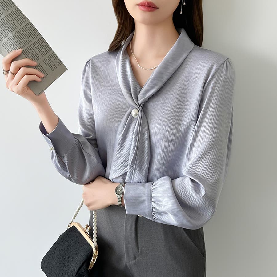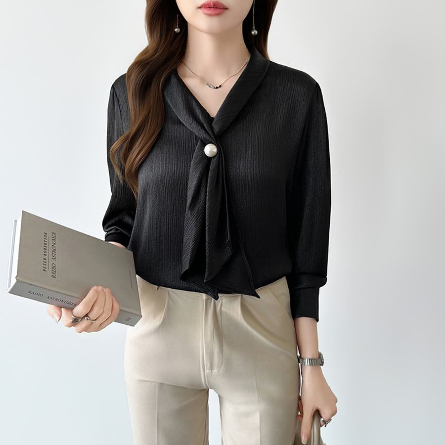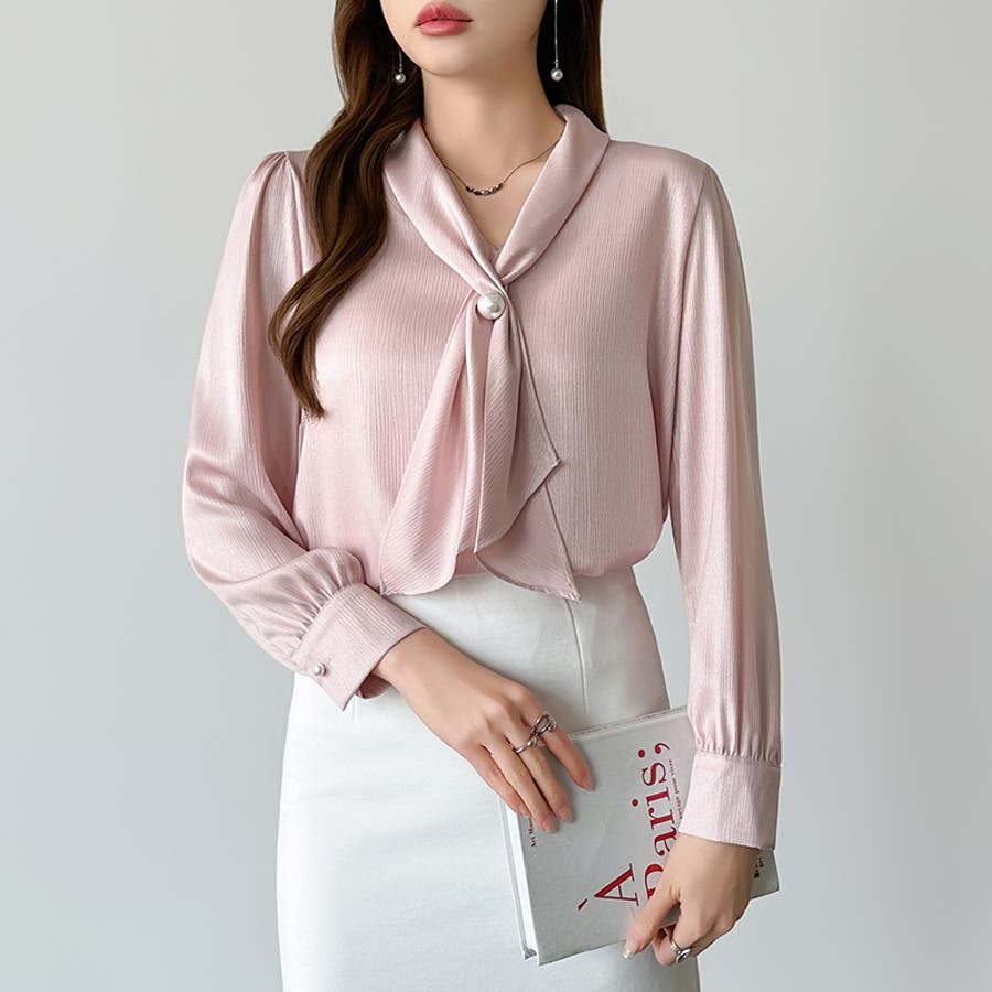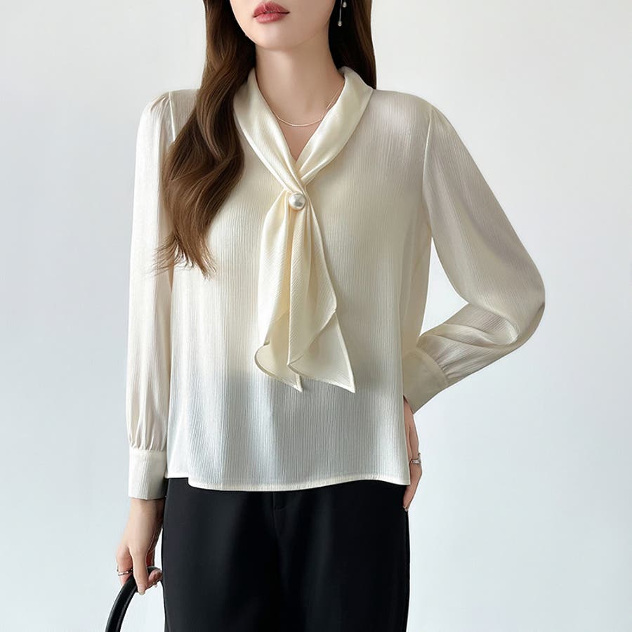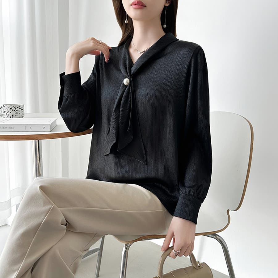 【アクセいらずで華やぐ】パール付きブラウス ボウタイブラウス ブラウス