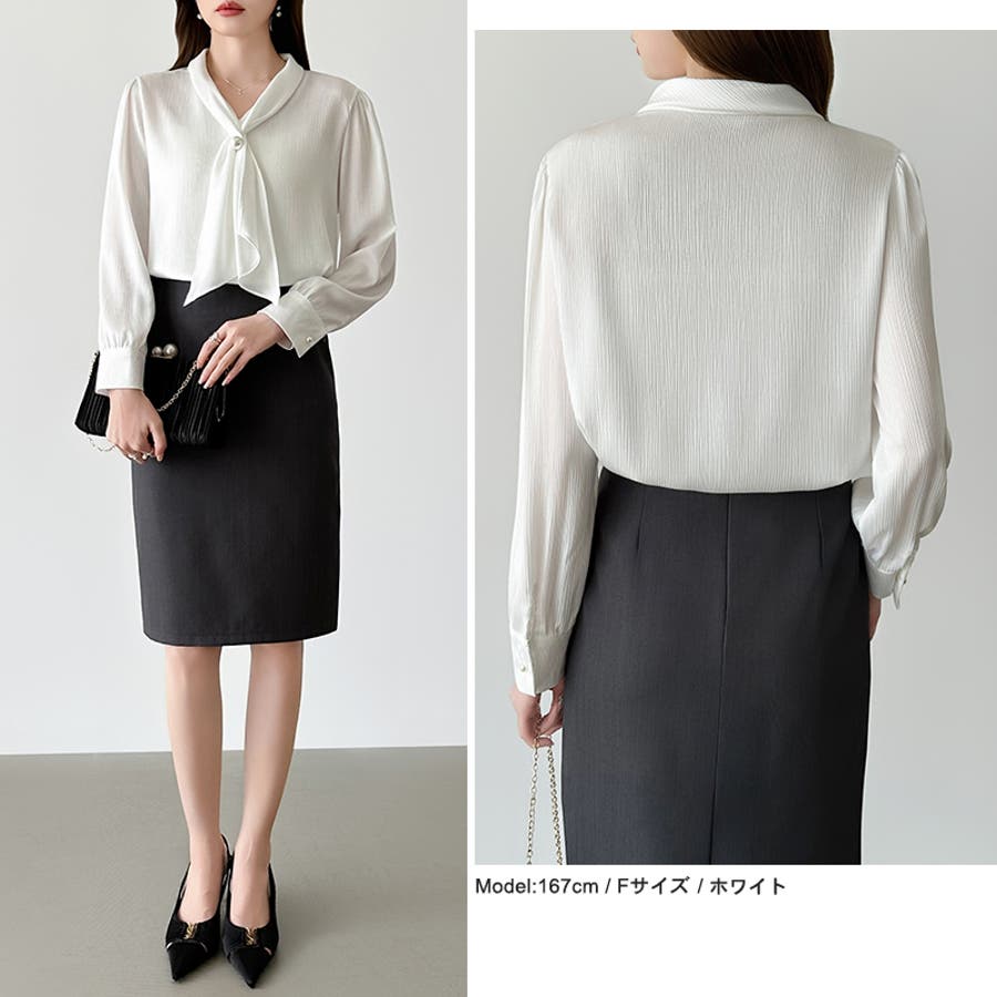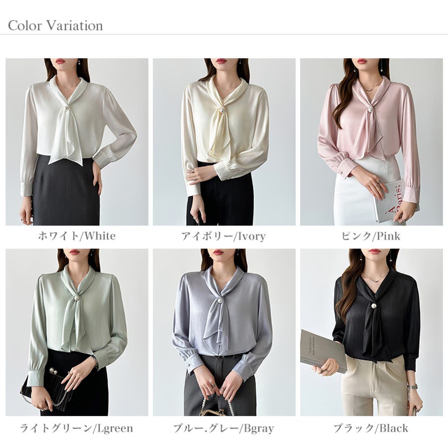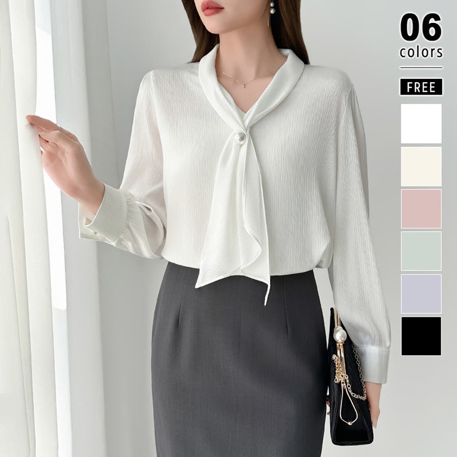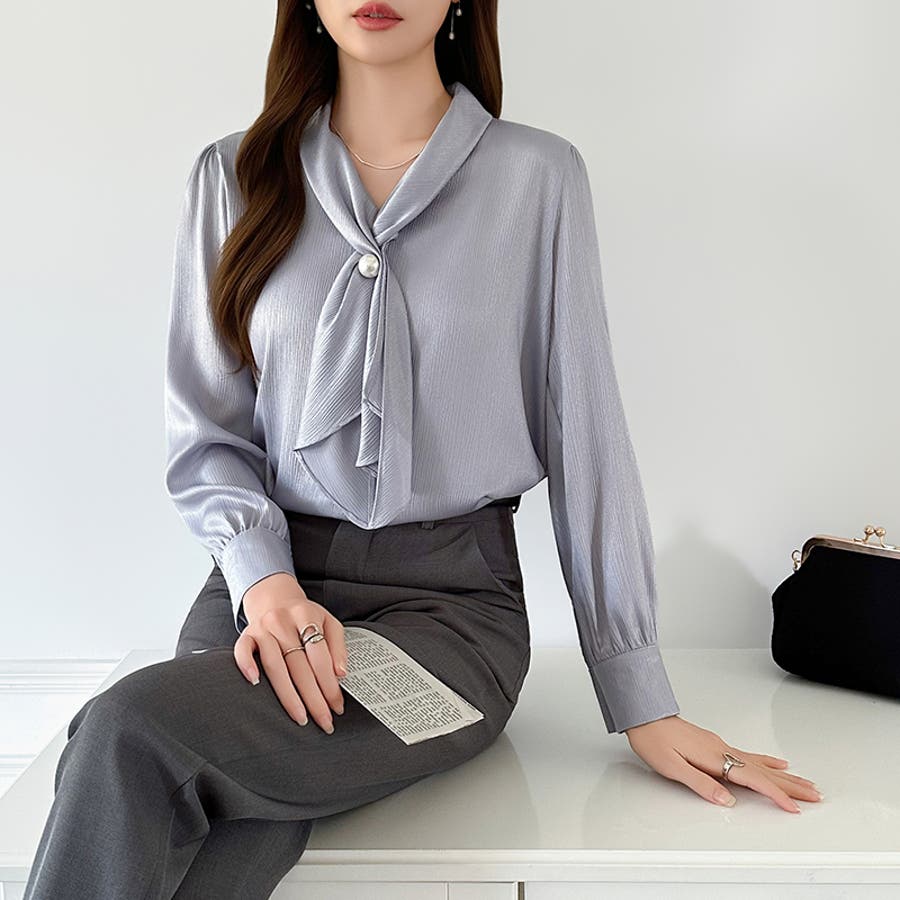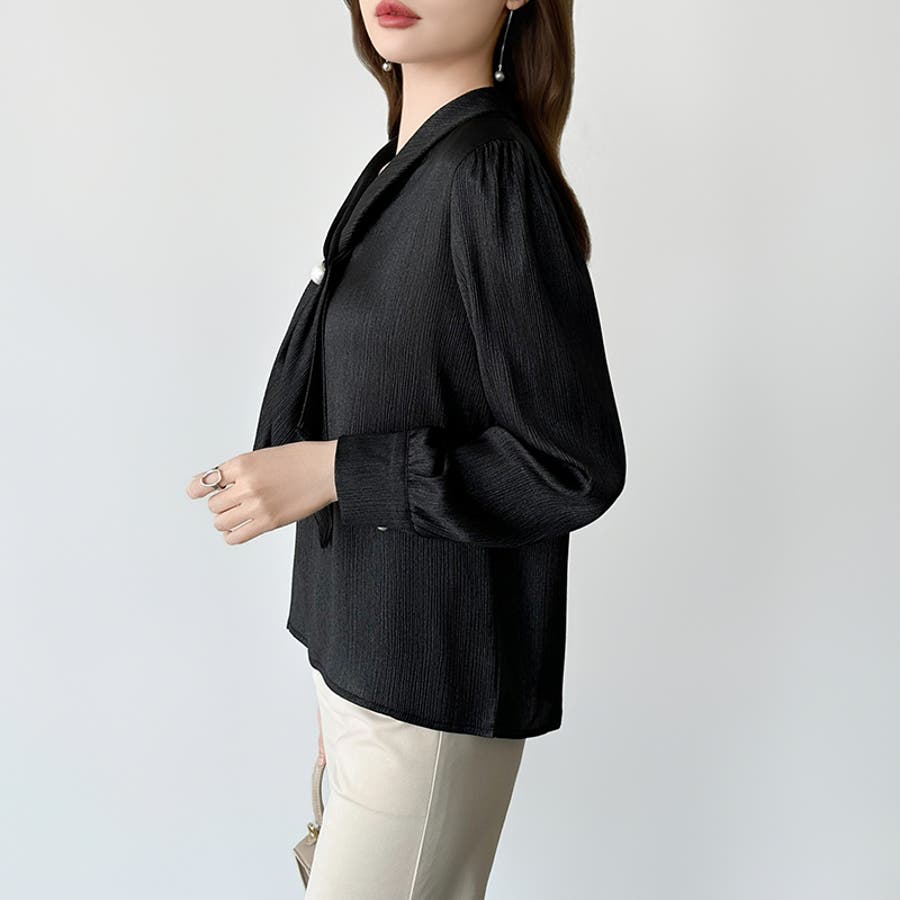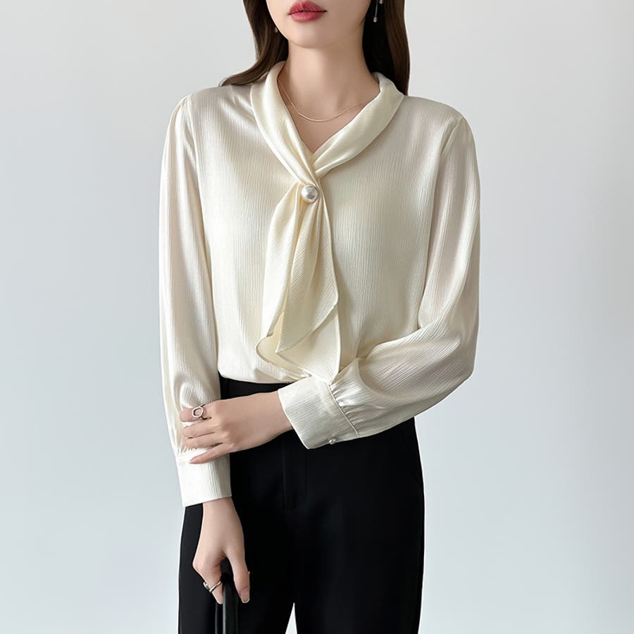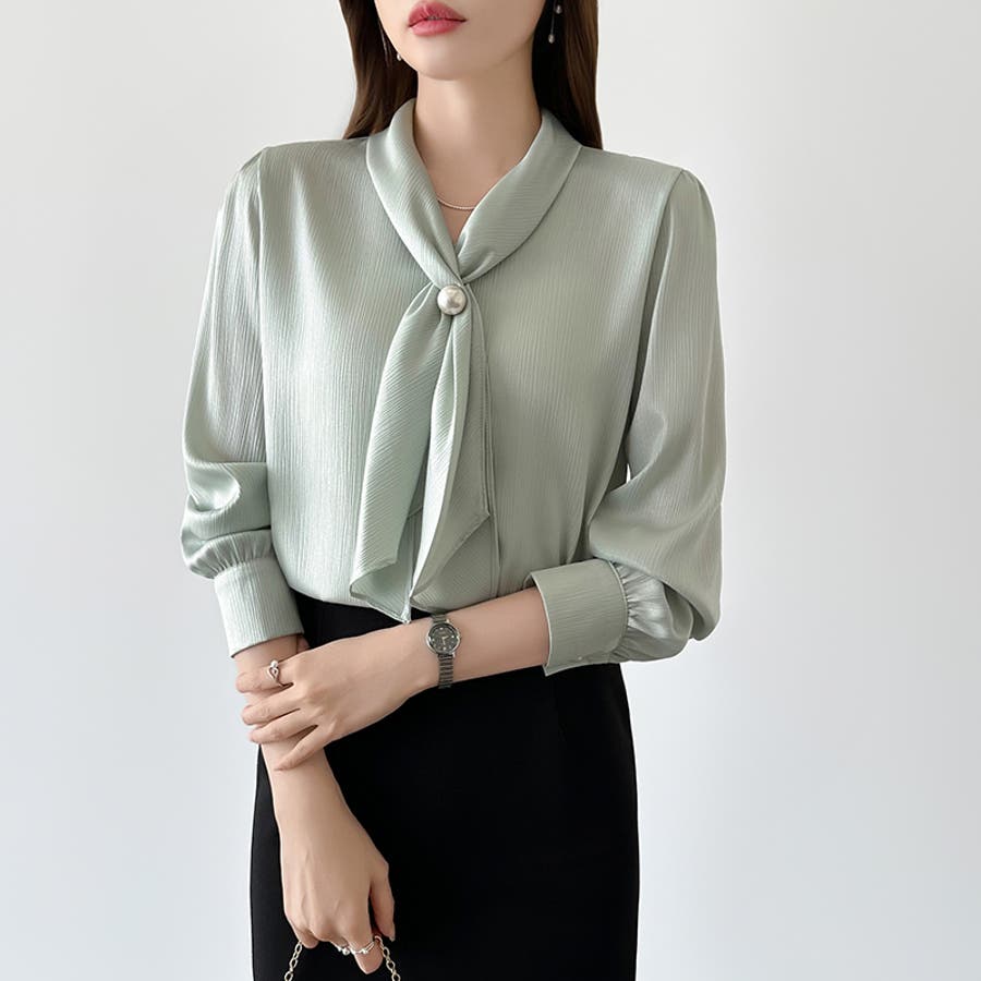 【アクセいらずで華やぐ】パール付きブラウス ボウタイブラウス ブラウス
