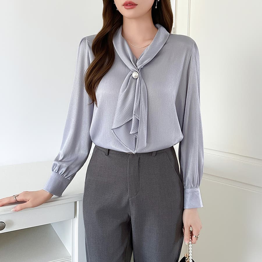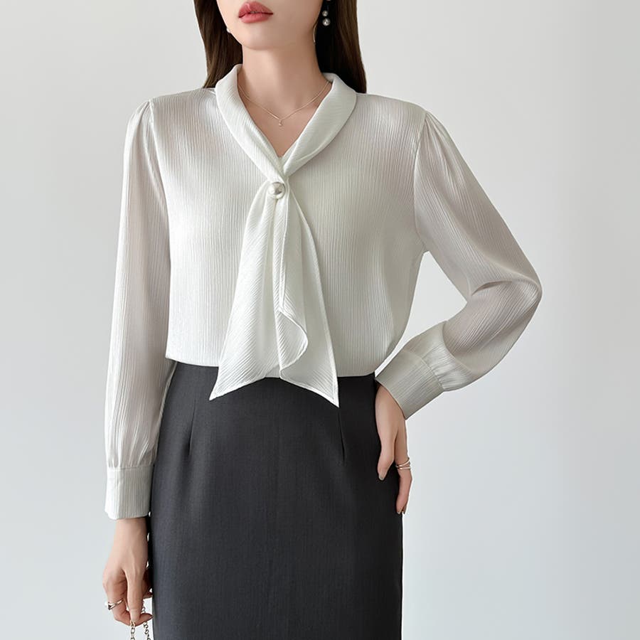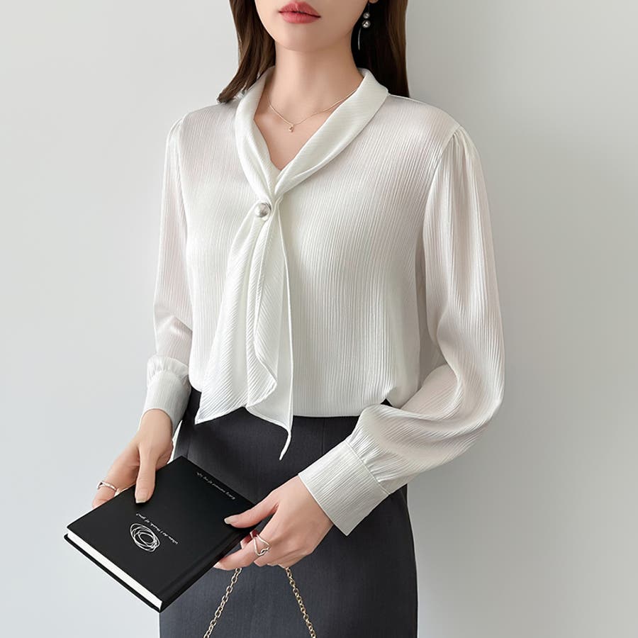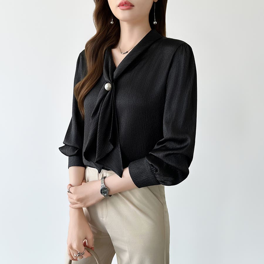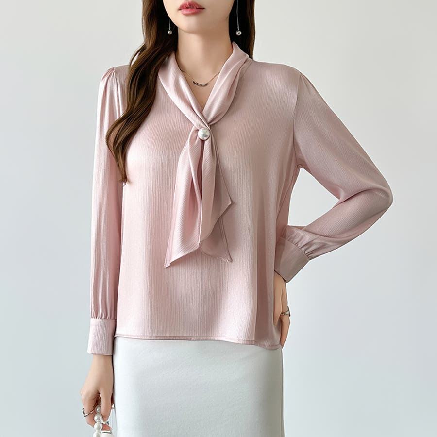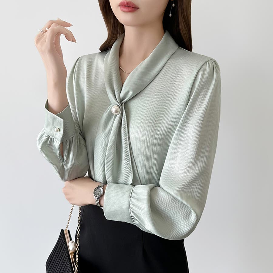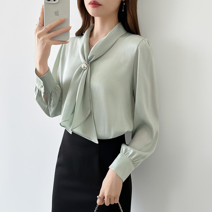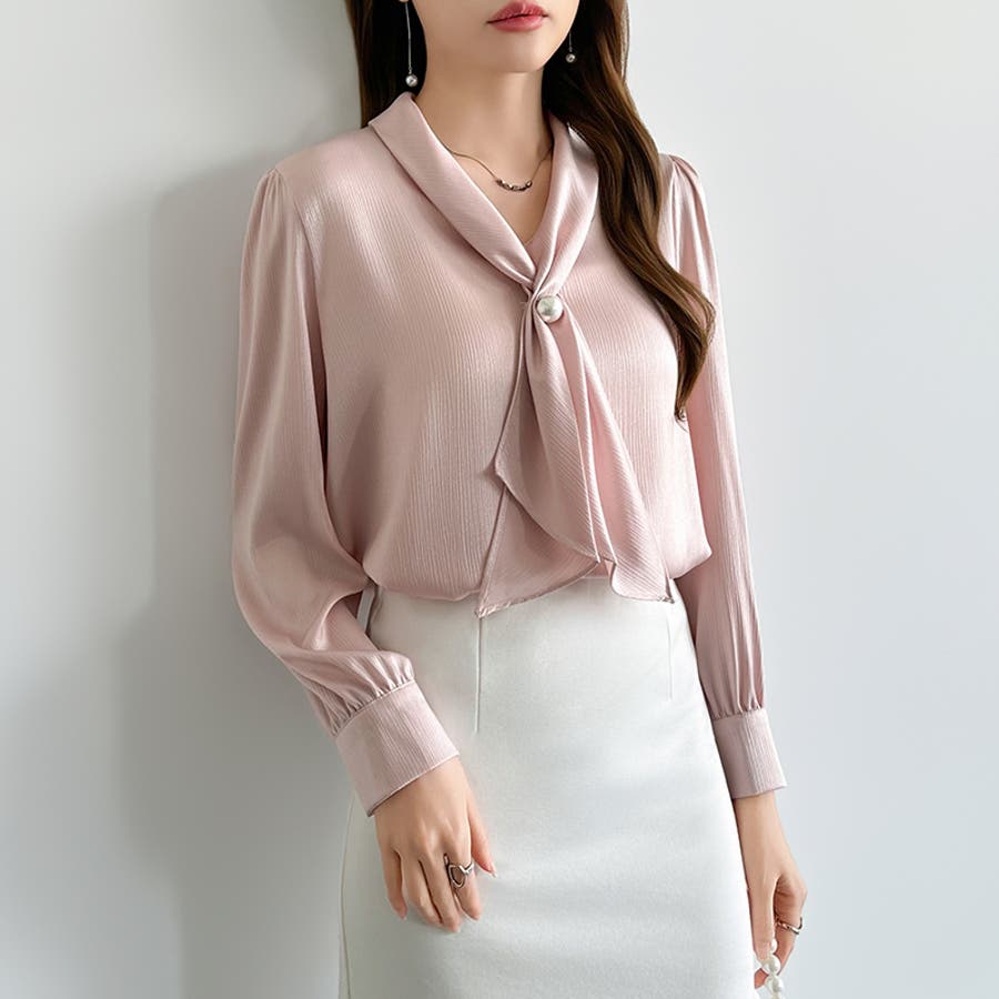 【アクセいらずで華やぐ】パール付きブラウス ボウタイブラウス ブラウス