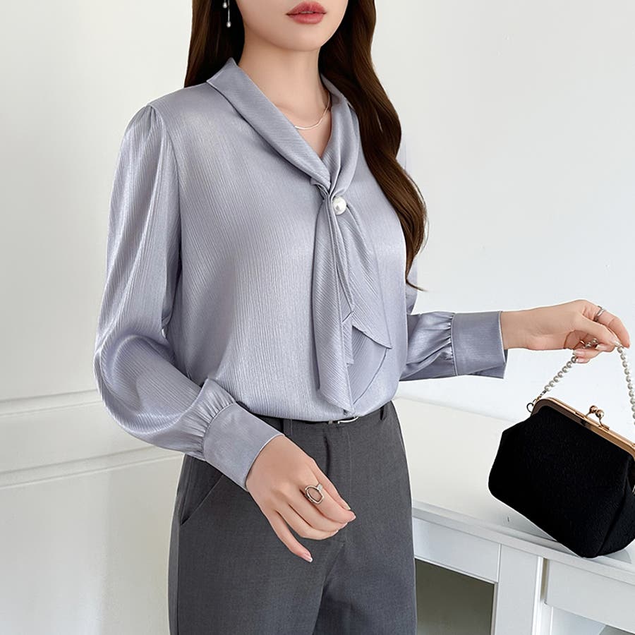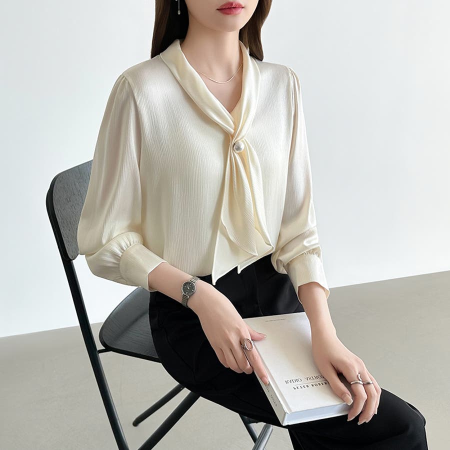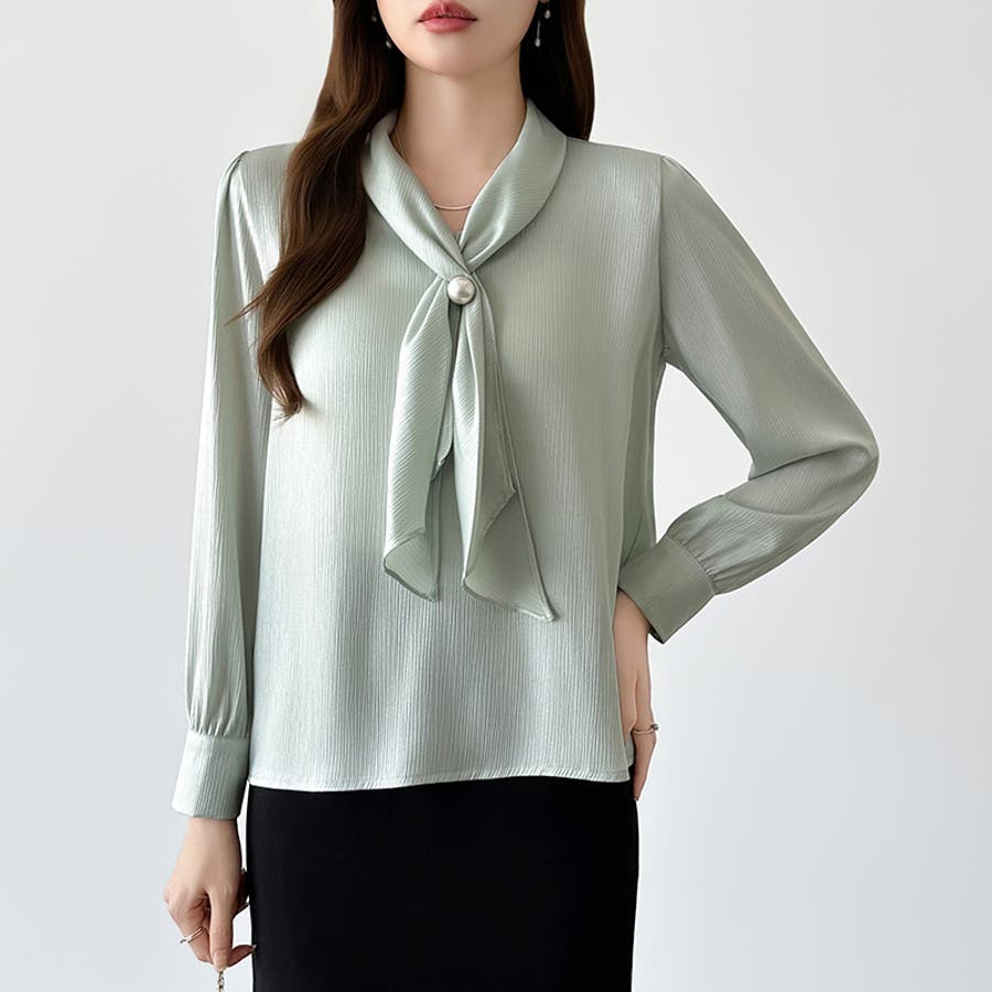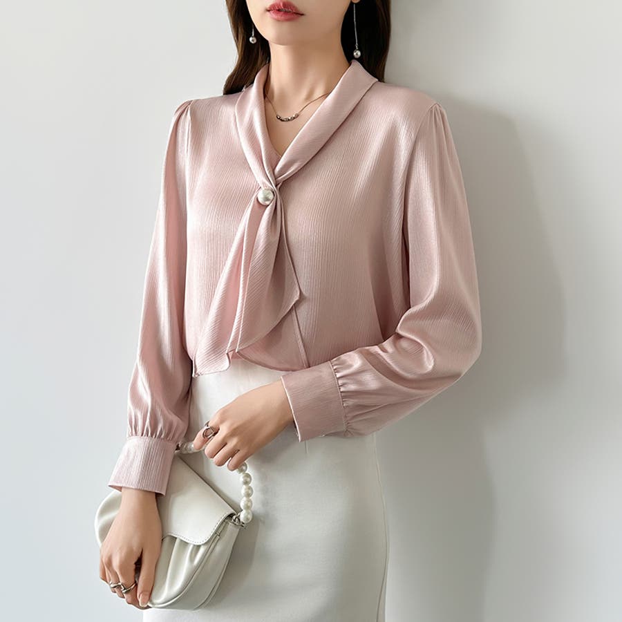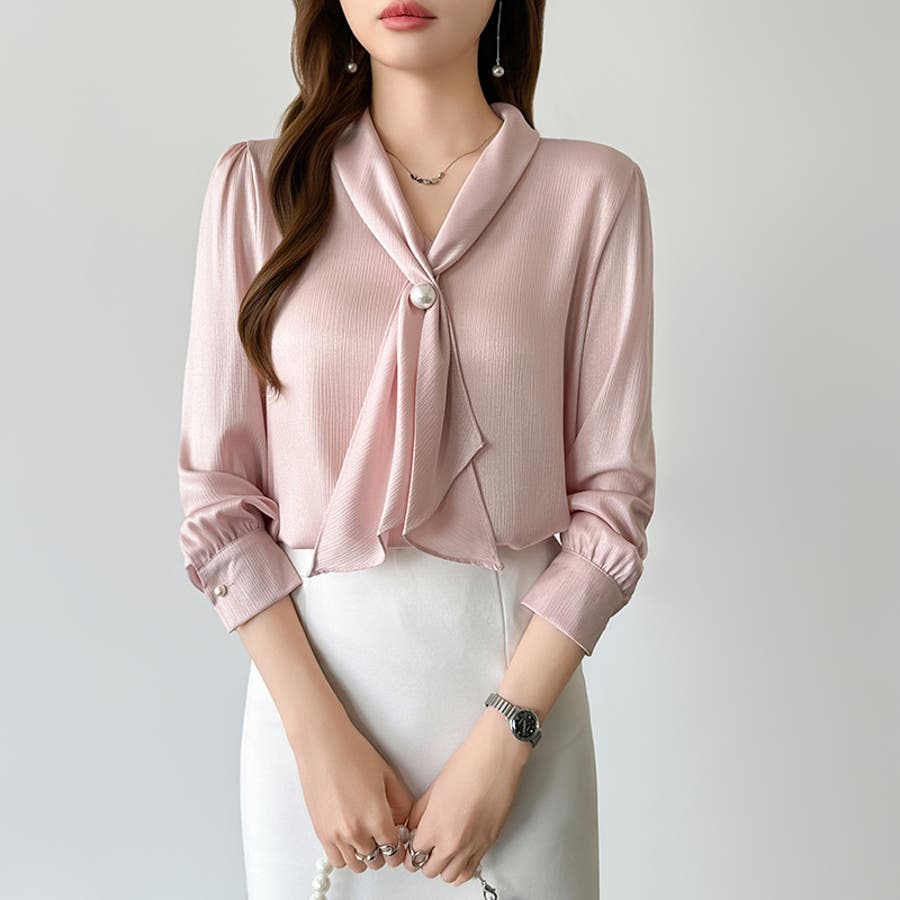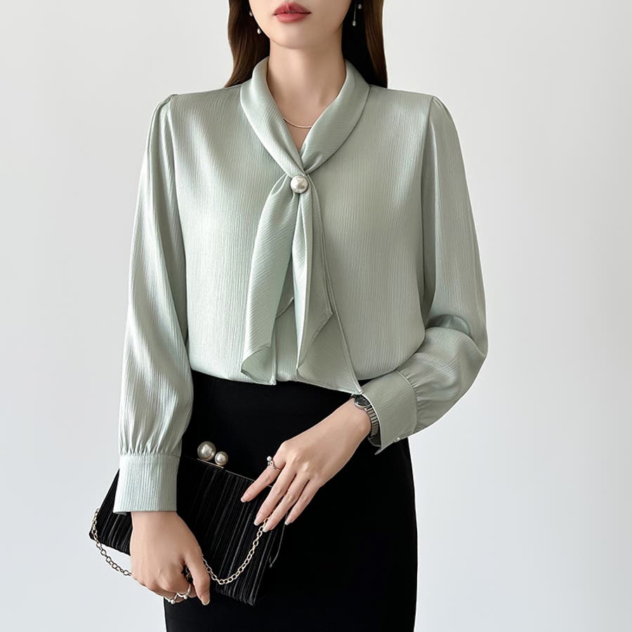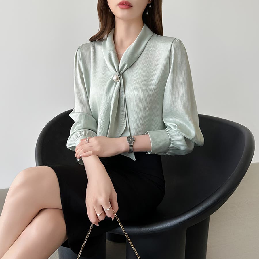 【アクセいらずで華やぐ】パール付きブラウス ボウタイブラウス ブラウス