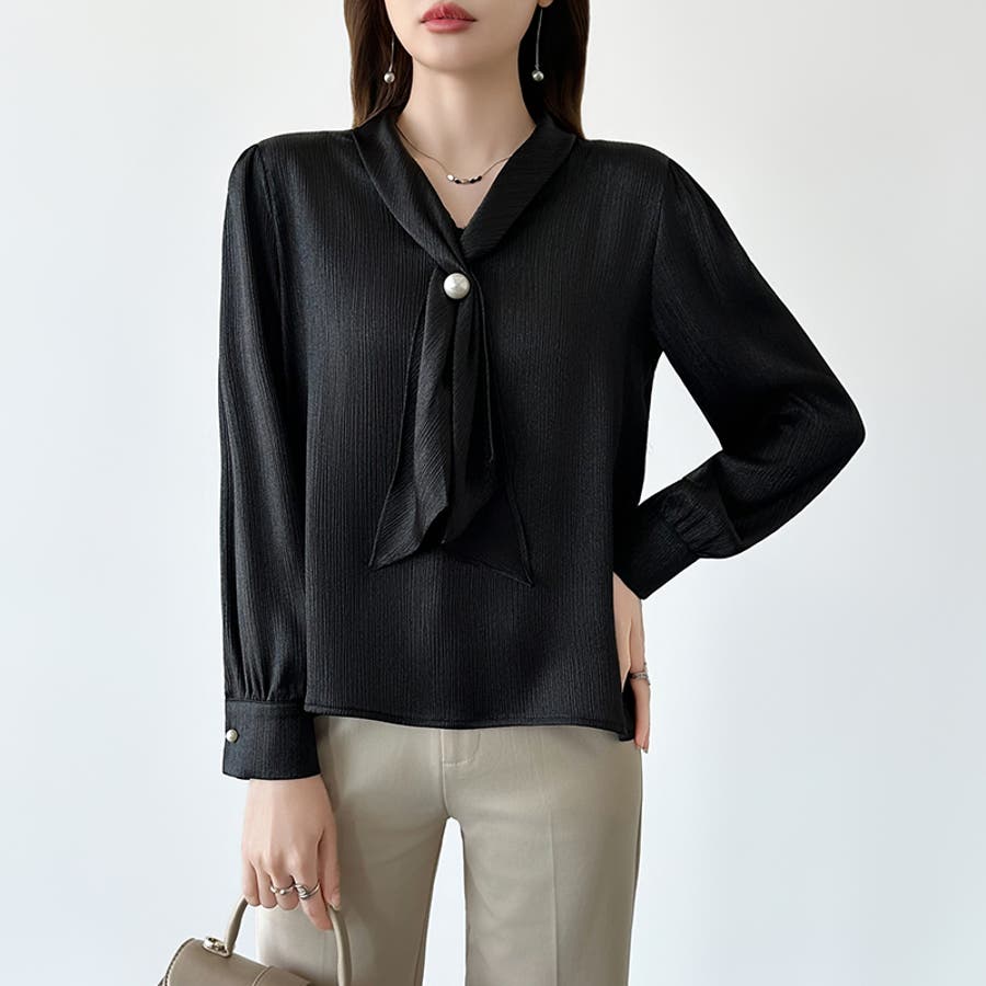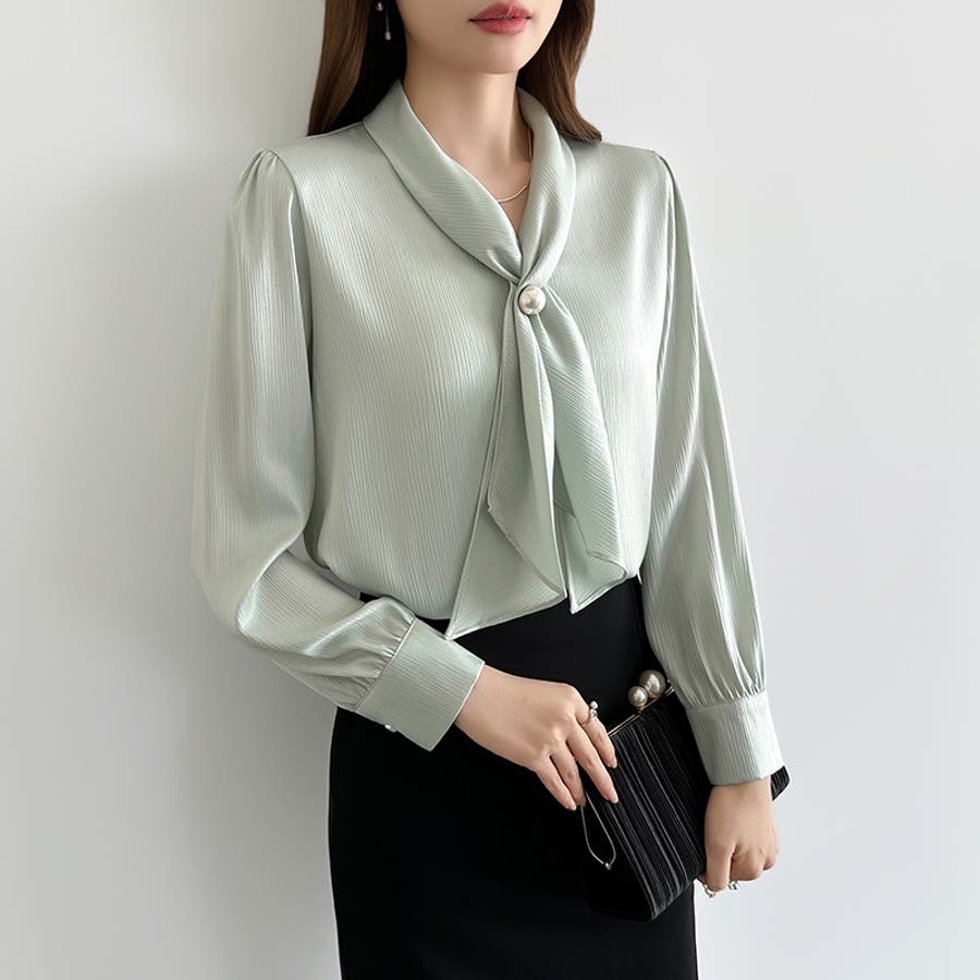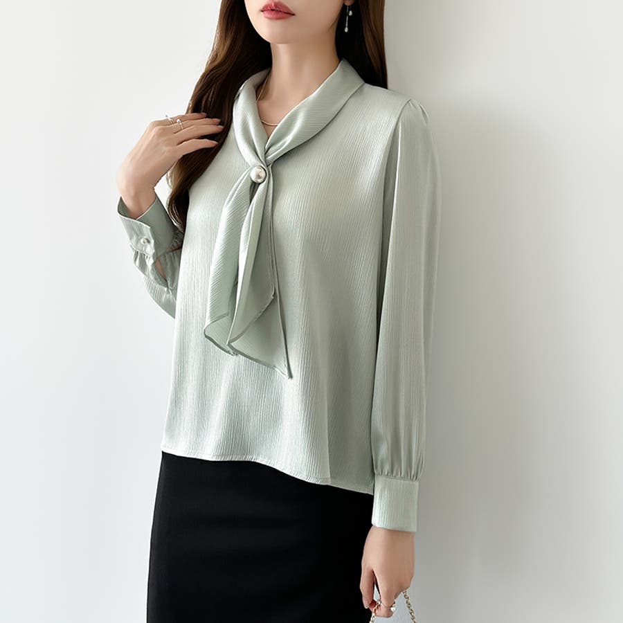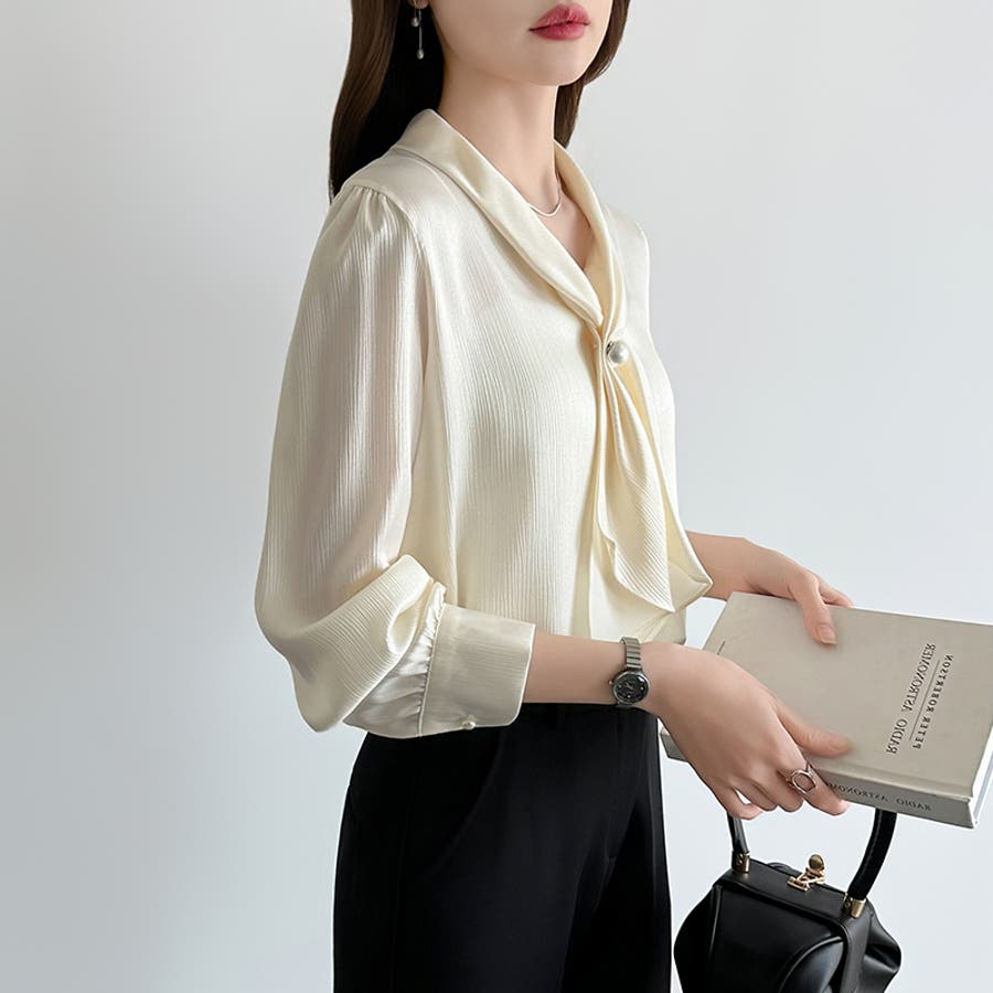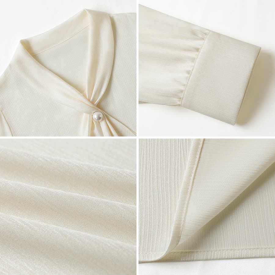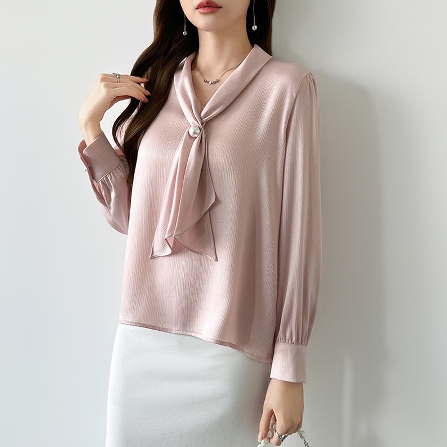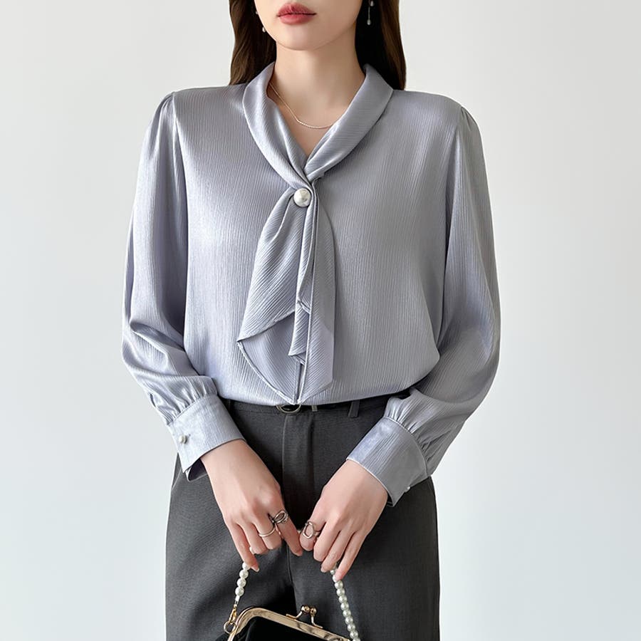 【アクセいらずで華やぐ】パール付きブラウス ボウタイブラウス ブラウス