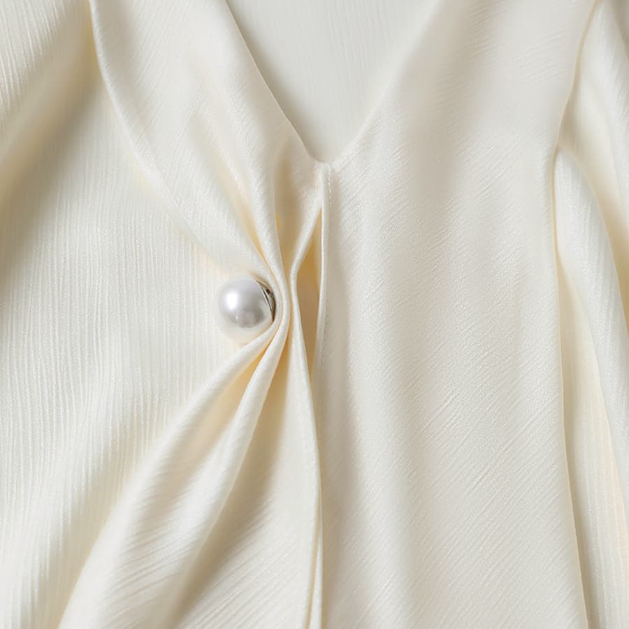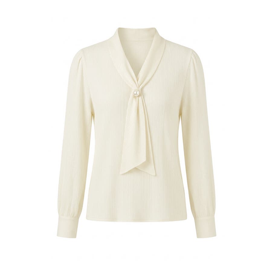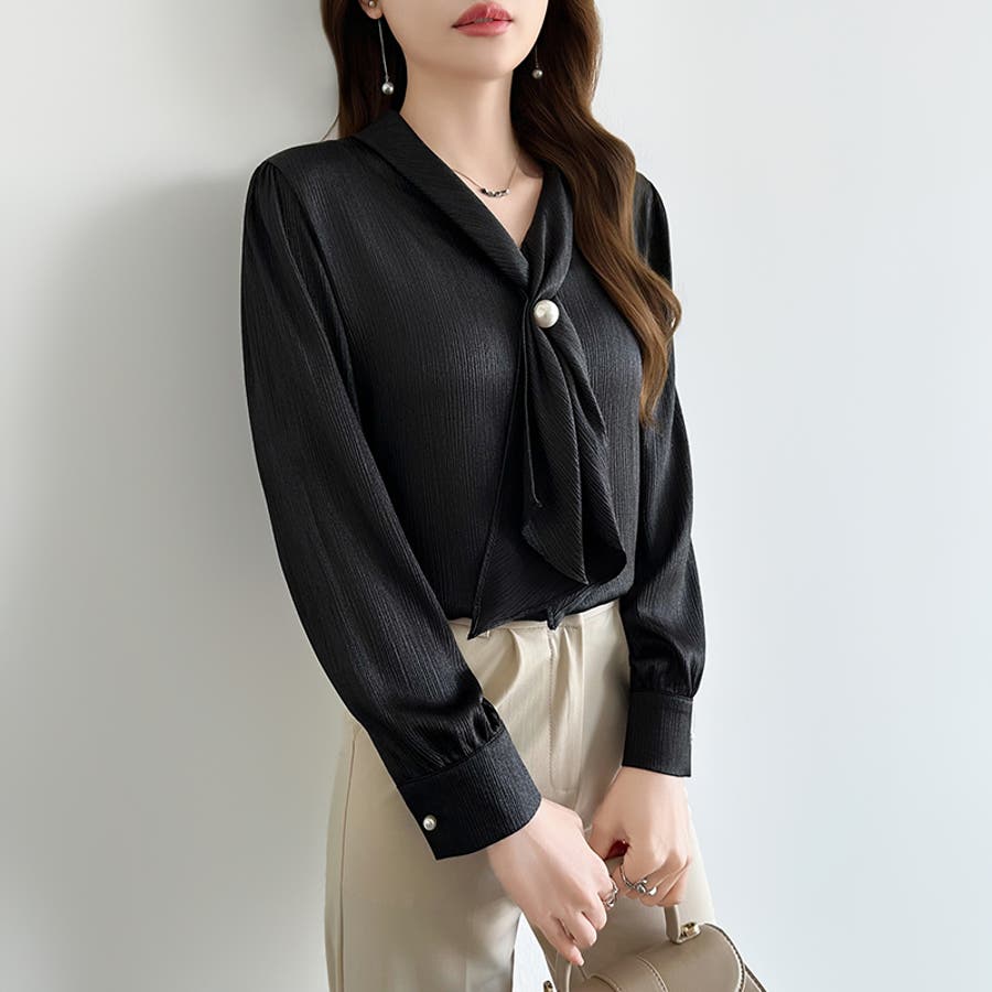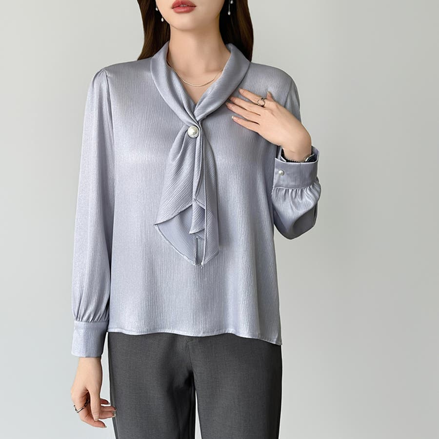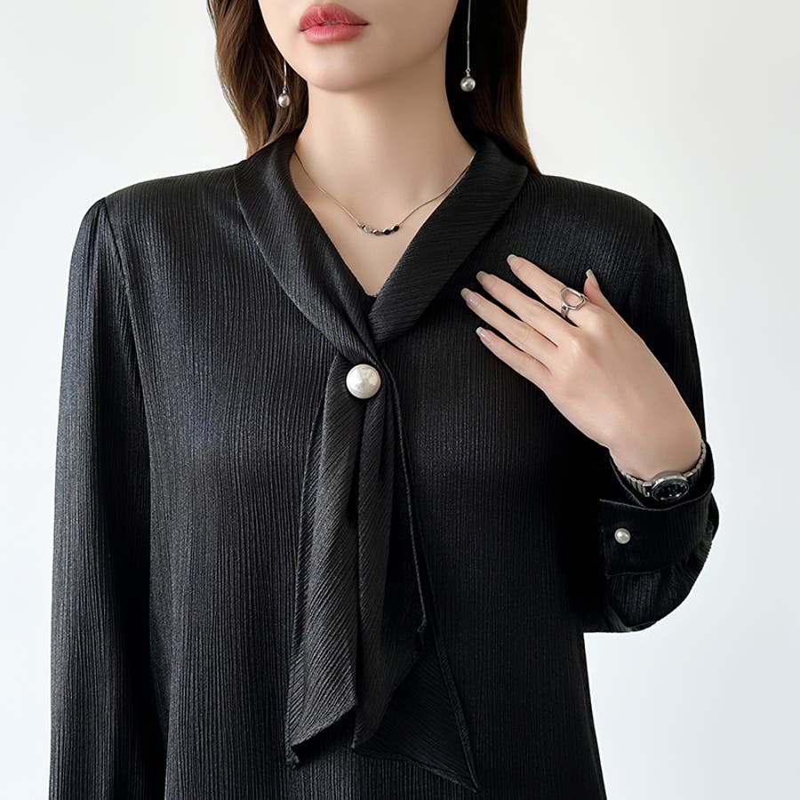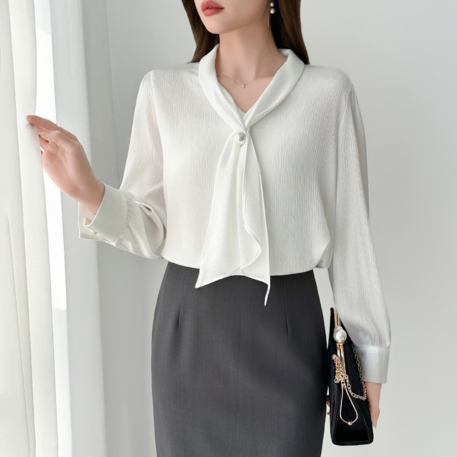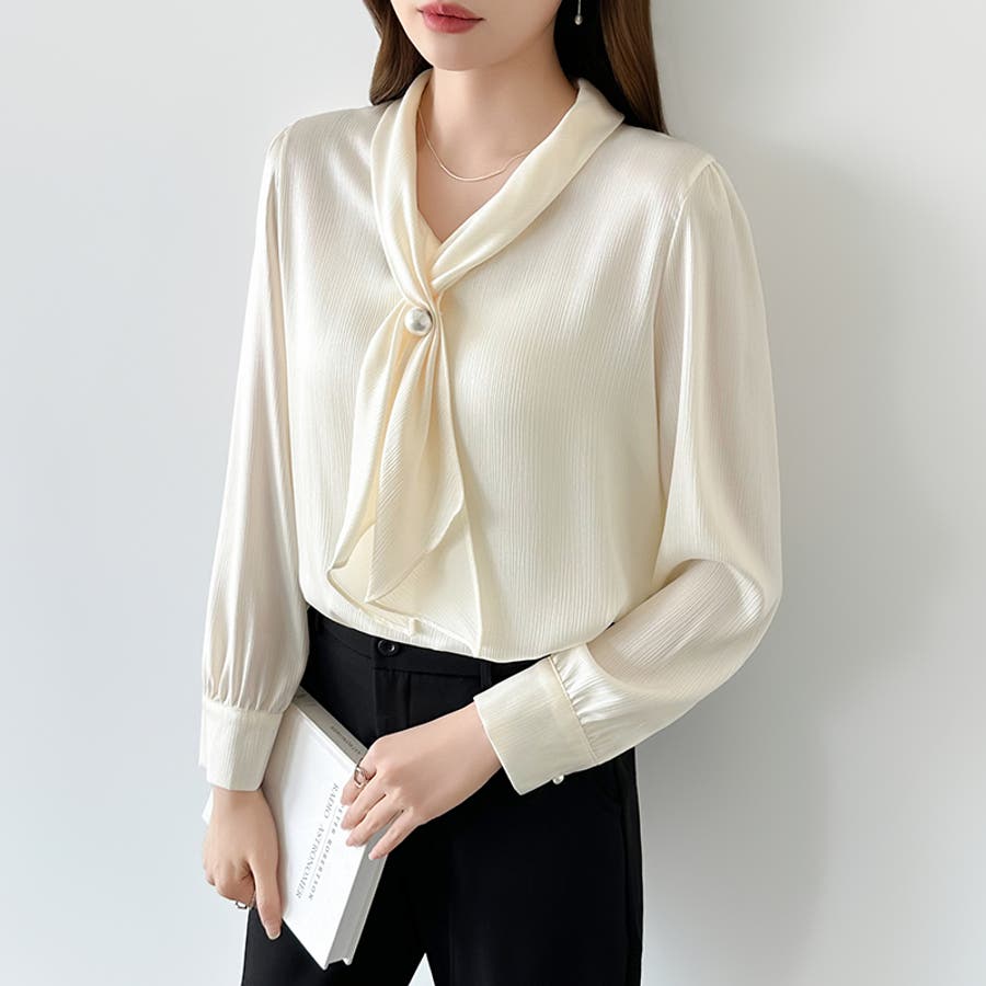 【アクセいらずで華やぐ】パール付きブラウス ボウタイブラウス ブラウス