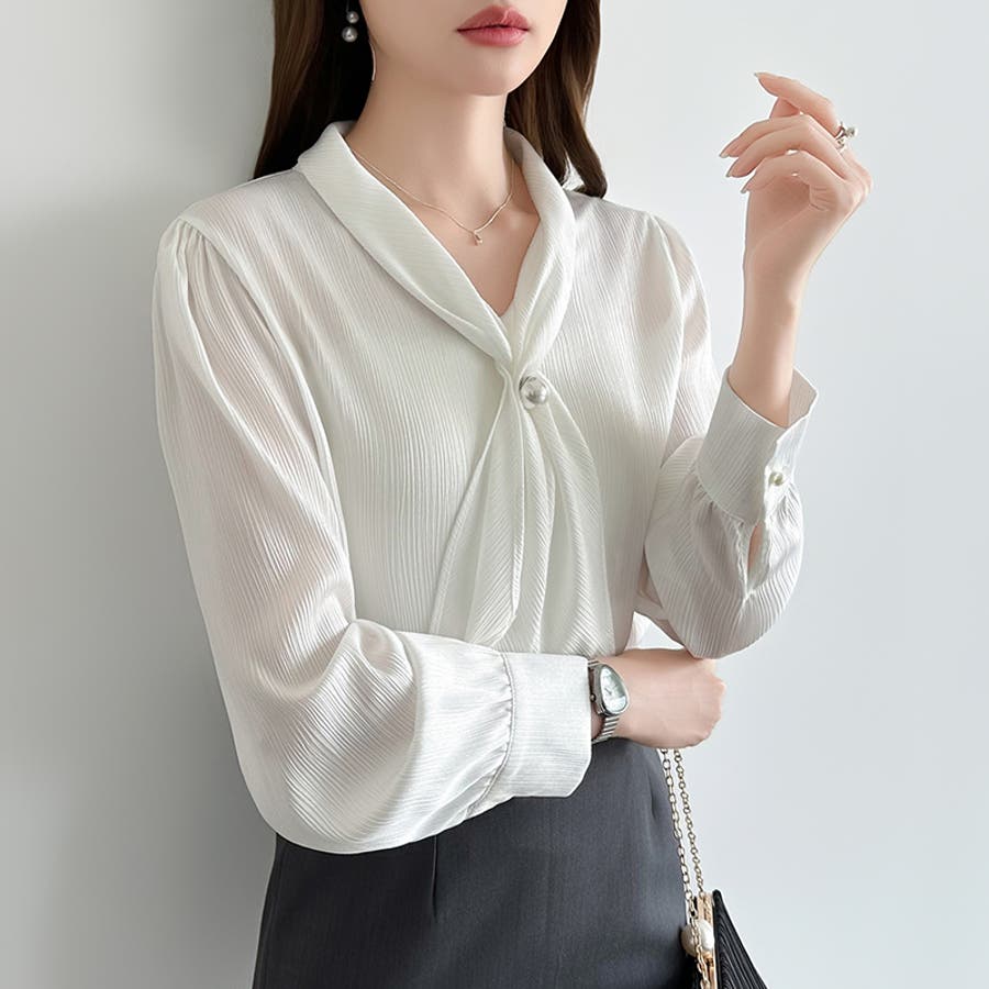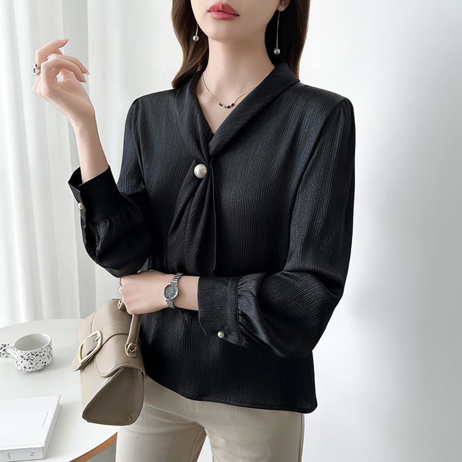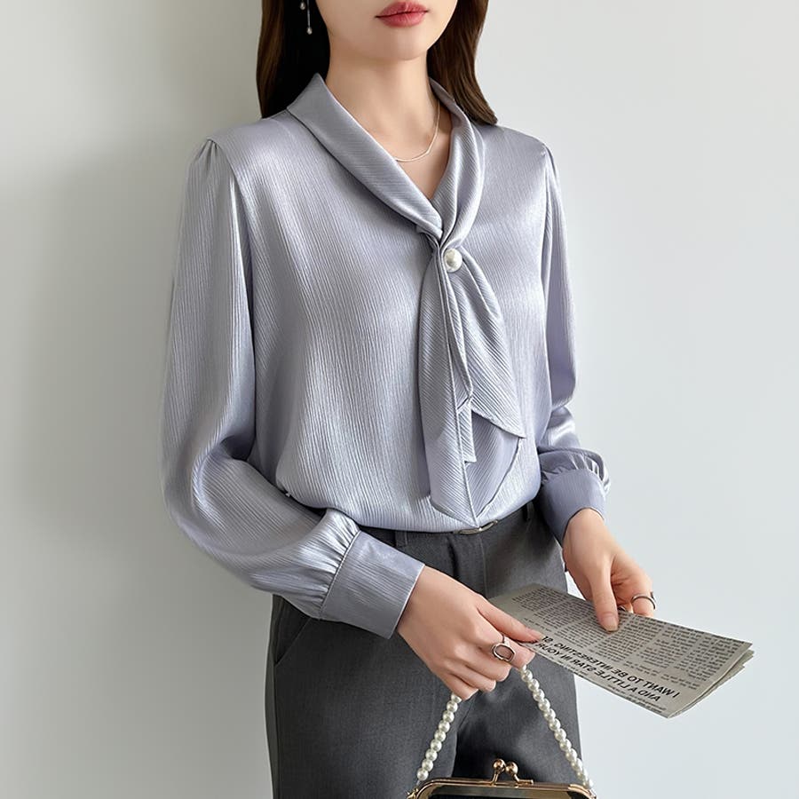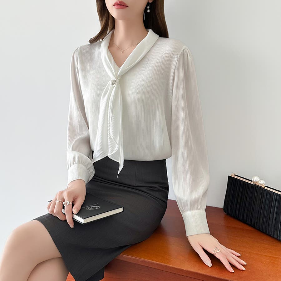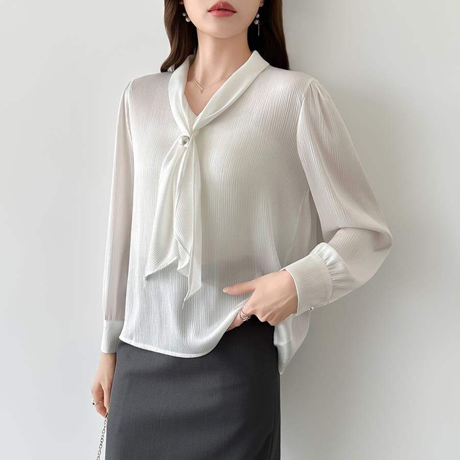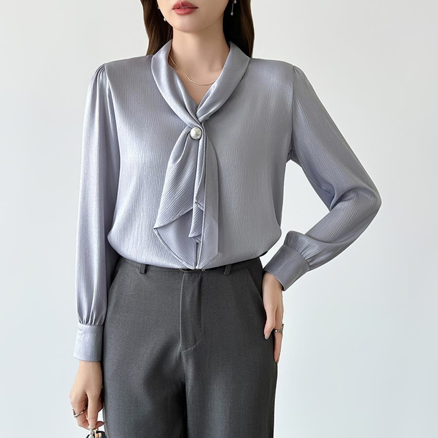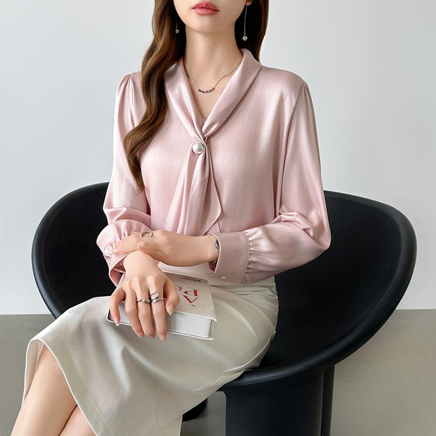 【アクセいらずで華やぐ】パール付きブラウス ボウタイブラウス ブラウス