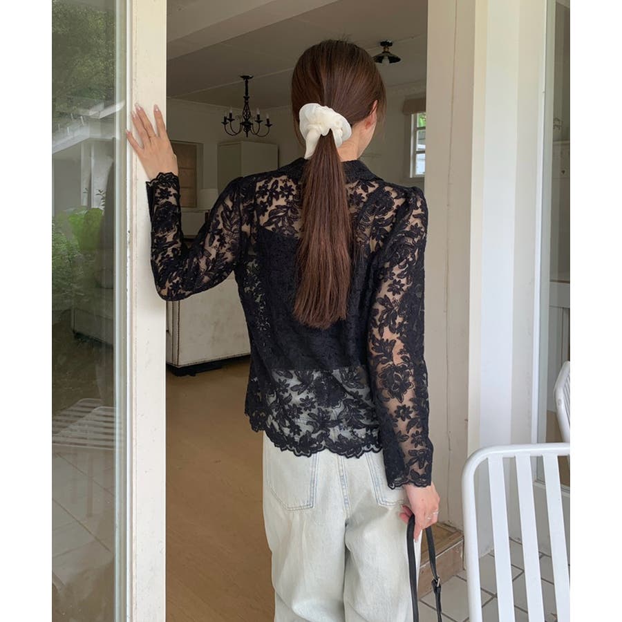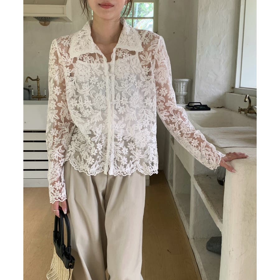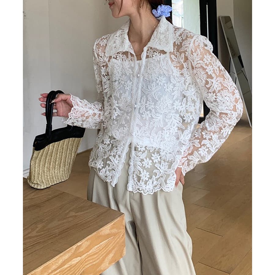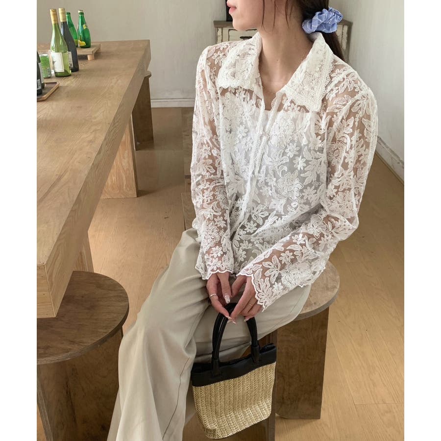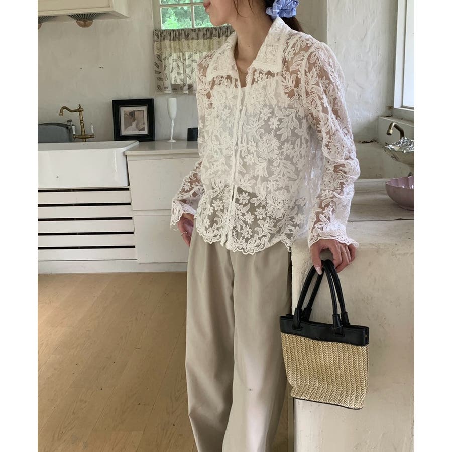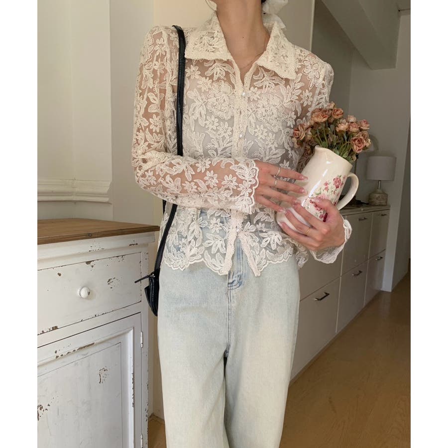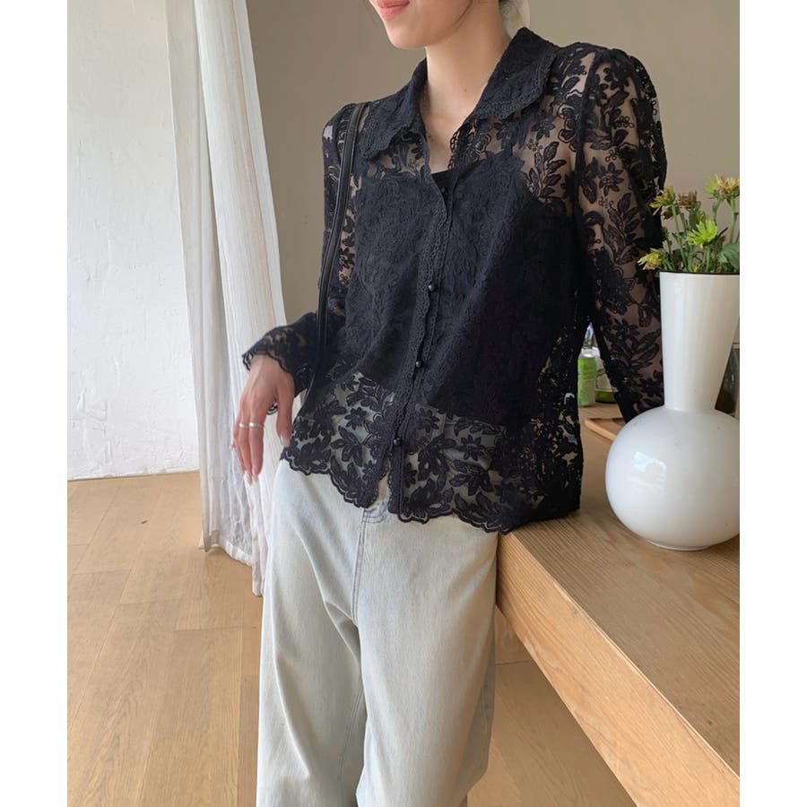 【刺繍レースで上品に透かす】レースブラウス キャミソールセット 総レース