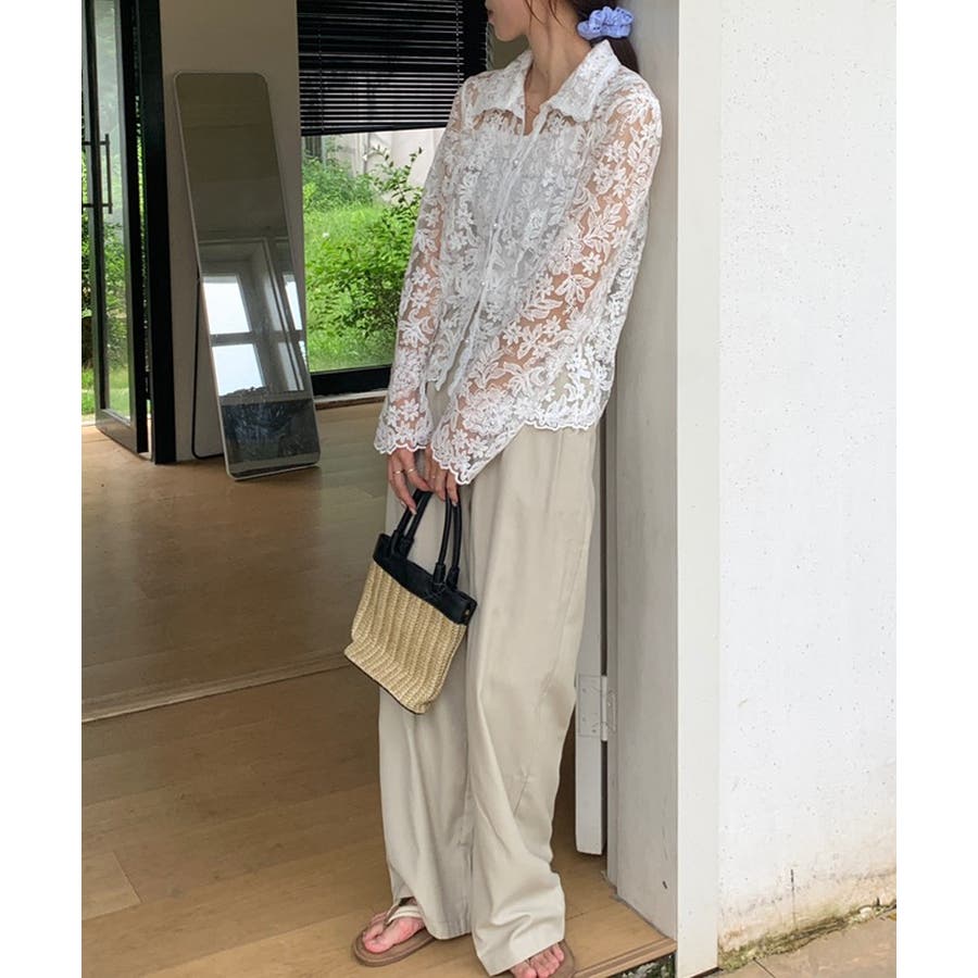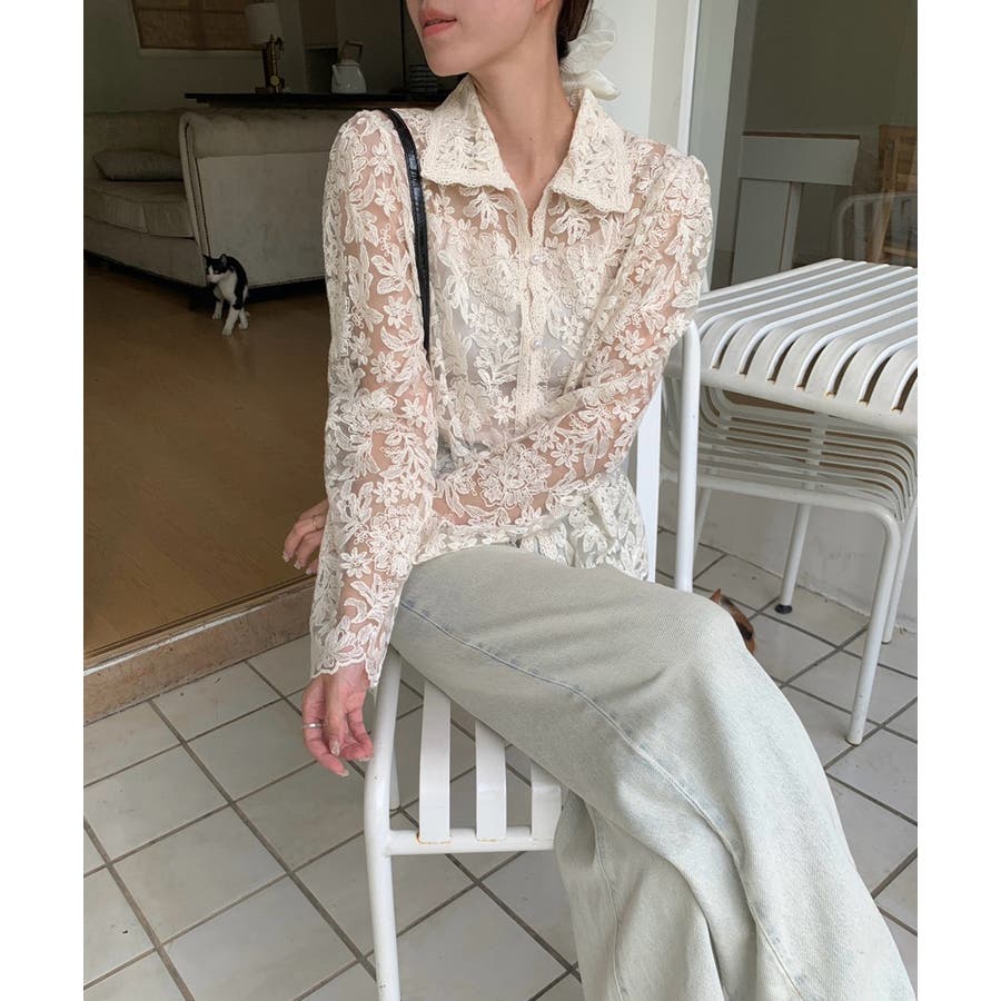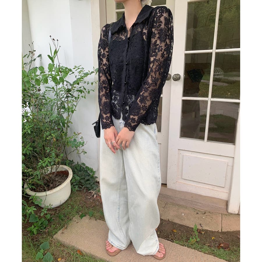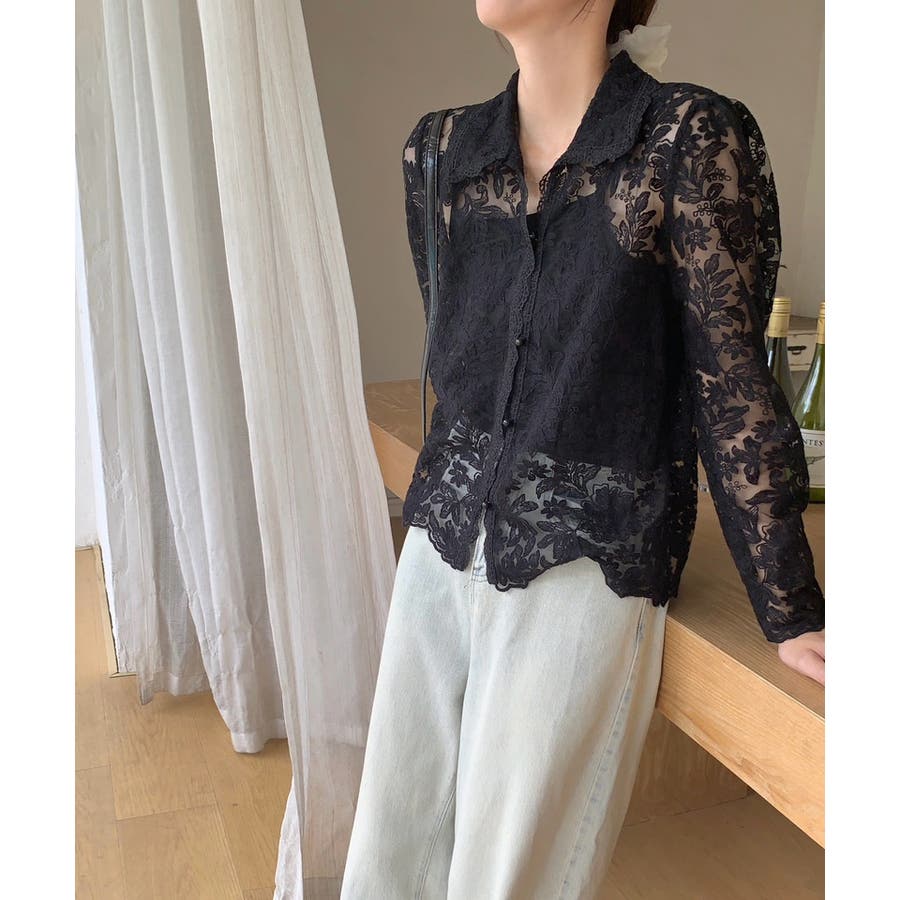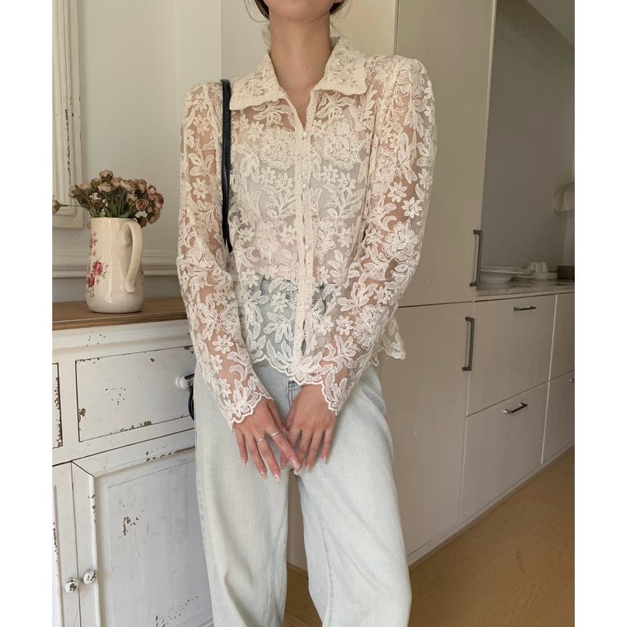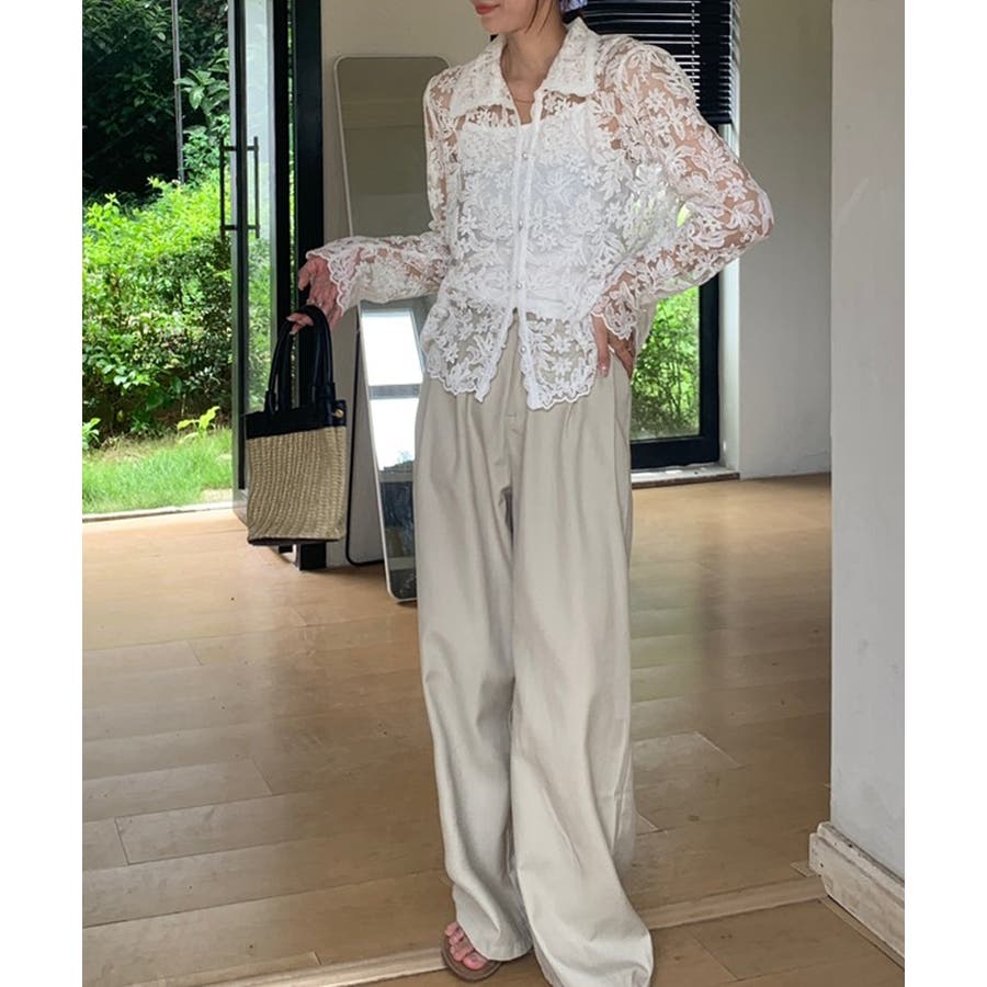 【刺繍レースで上品に透かす】レースブラウス キャミソールセット 総レース