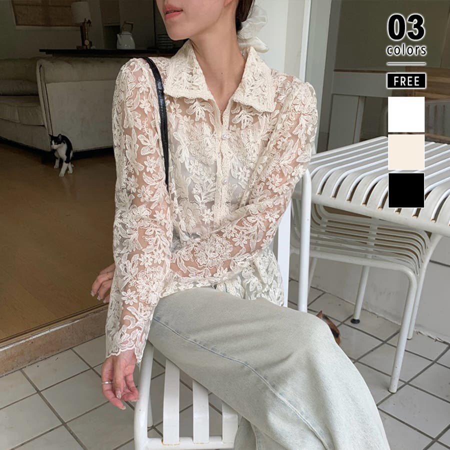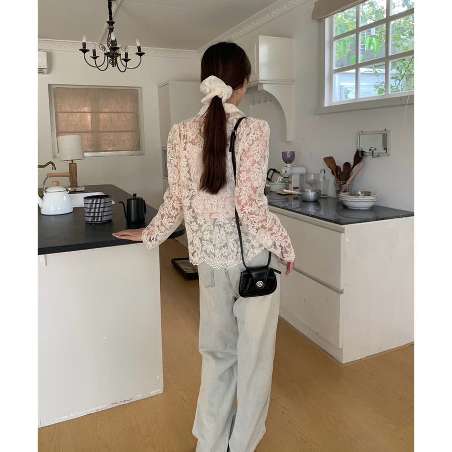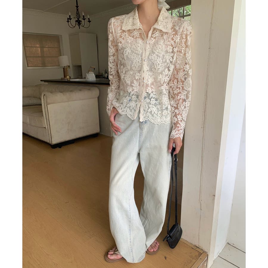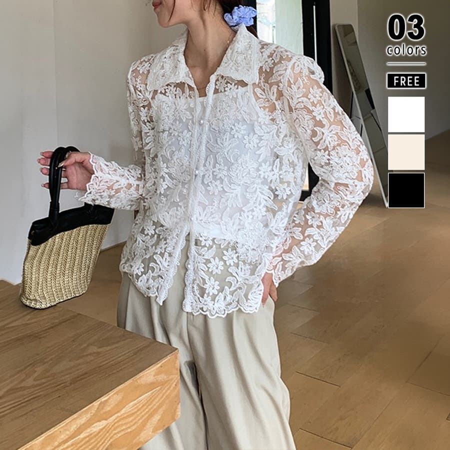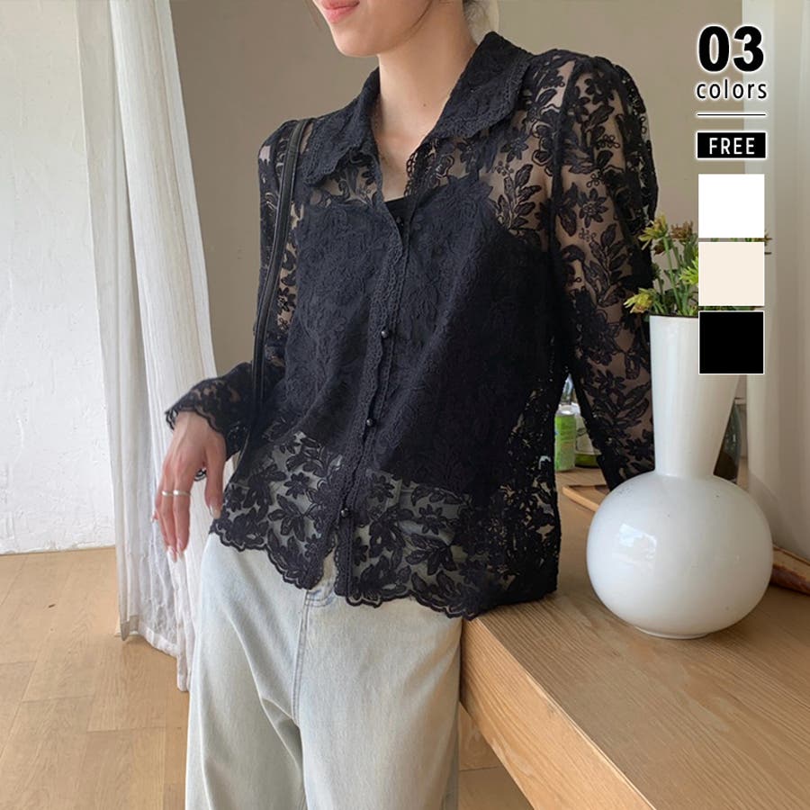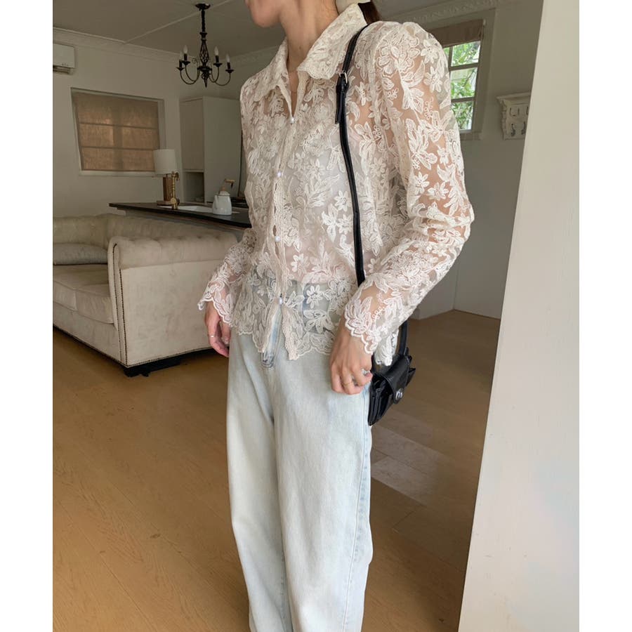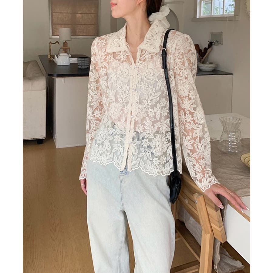 【刺繍レースで上品に透かす】レースブラウス キャミソールセット 総レース