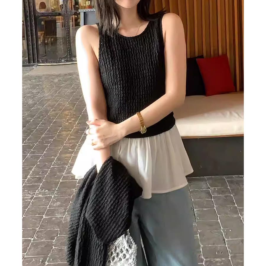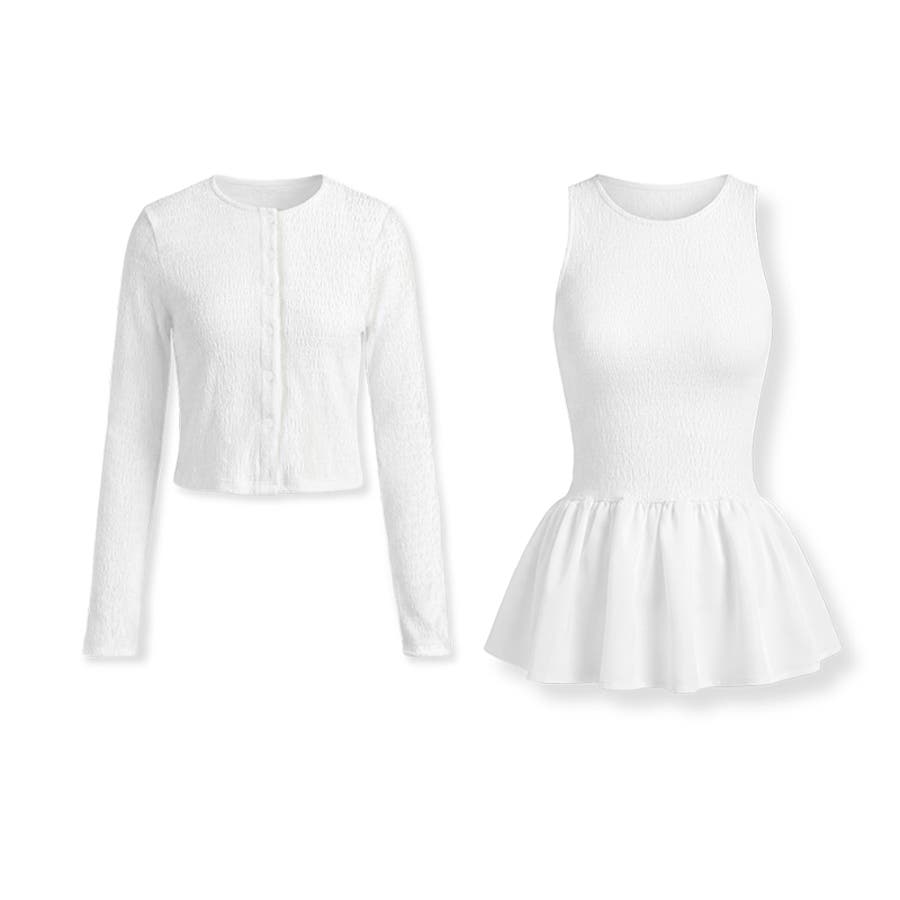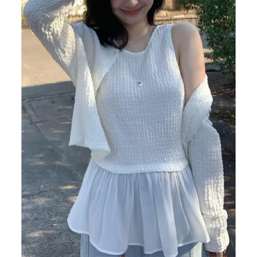 今っぽ可愛い欲張りアンサンブル ペプラムタンクトップ カーディガン