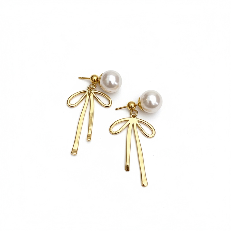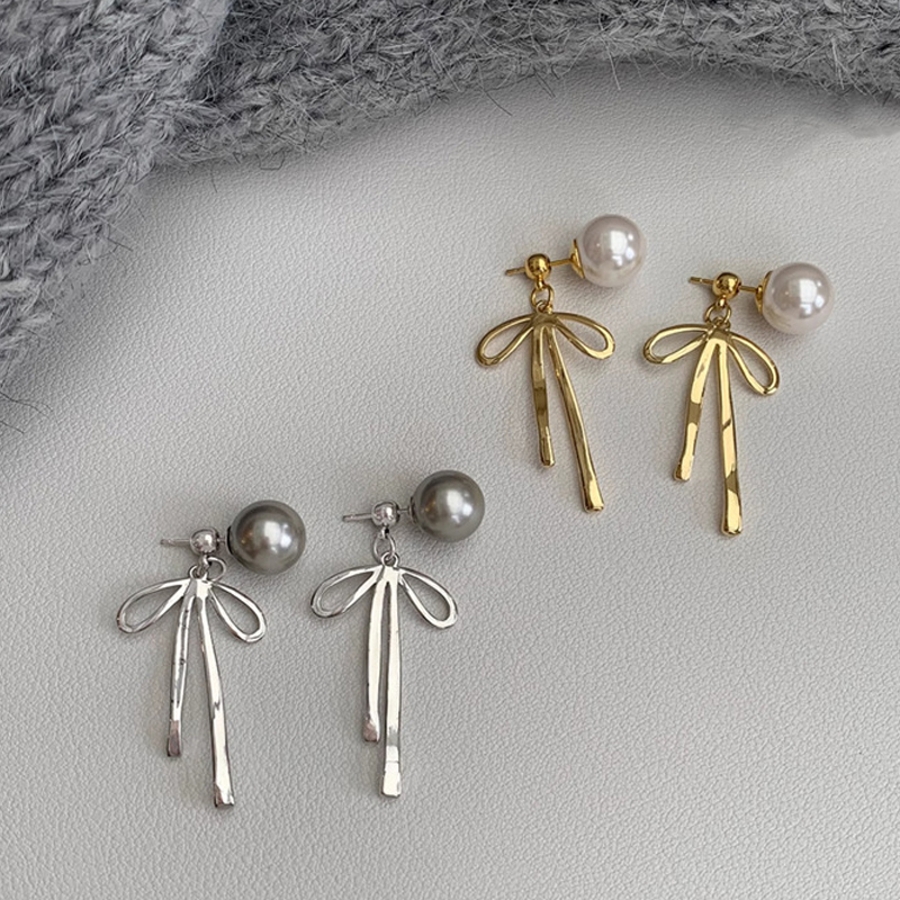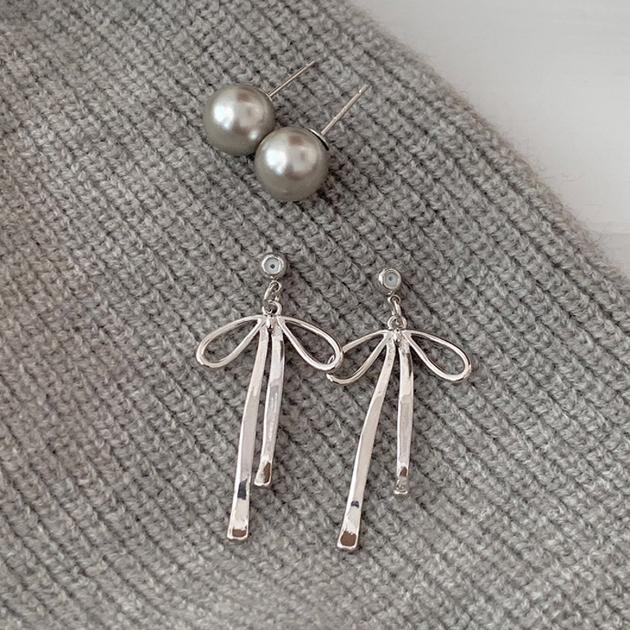 甘すぎないメタルリボンピアス パールリボンピアス ピアス