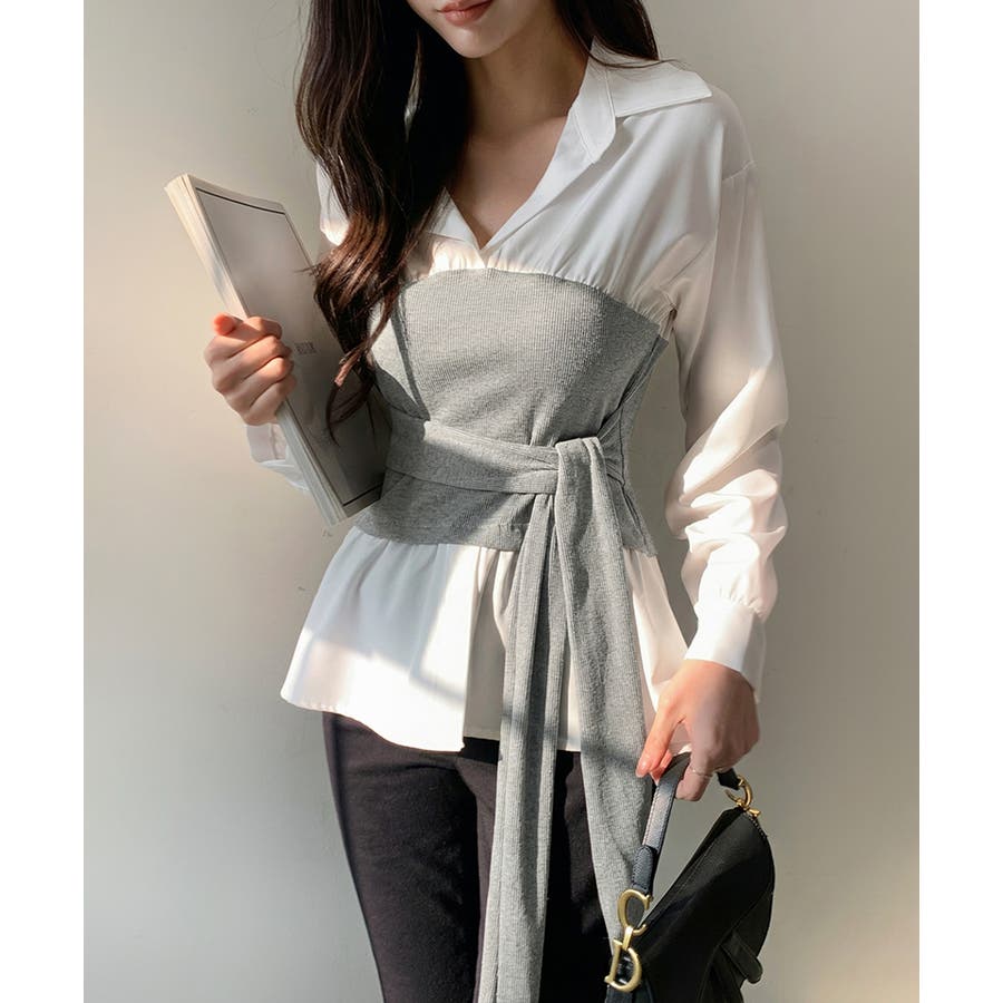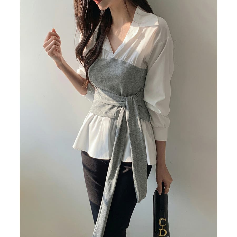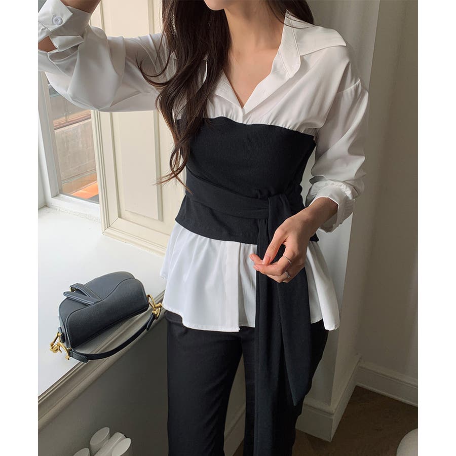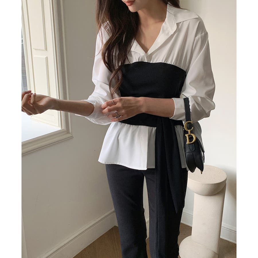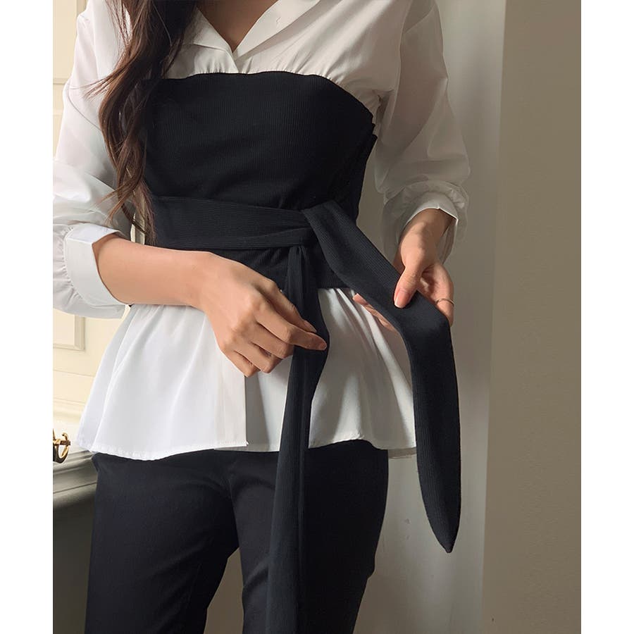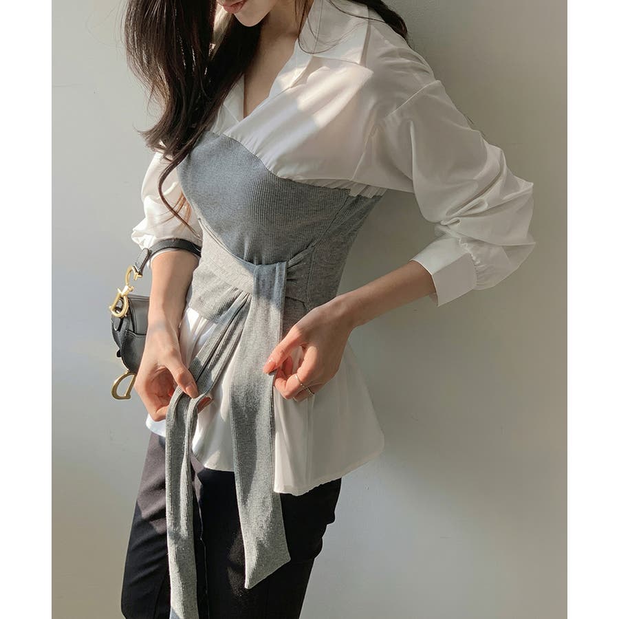 テクいらずでメリハリシルエット ビスチェドッキングシャツ コルセット風